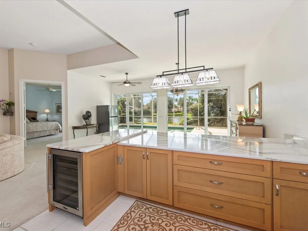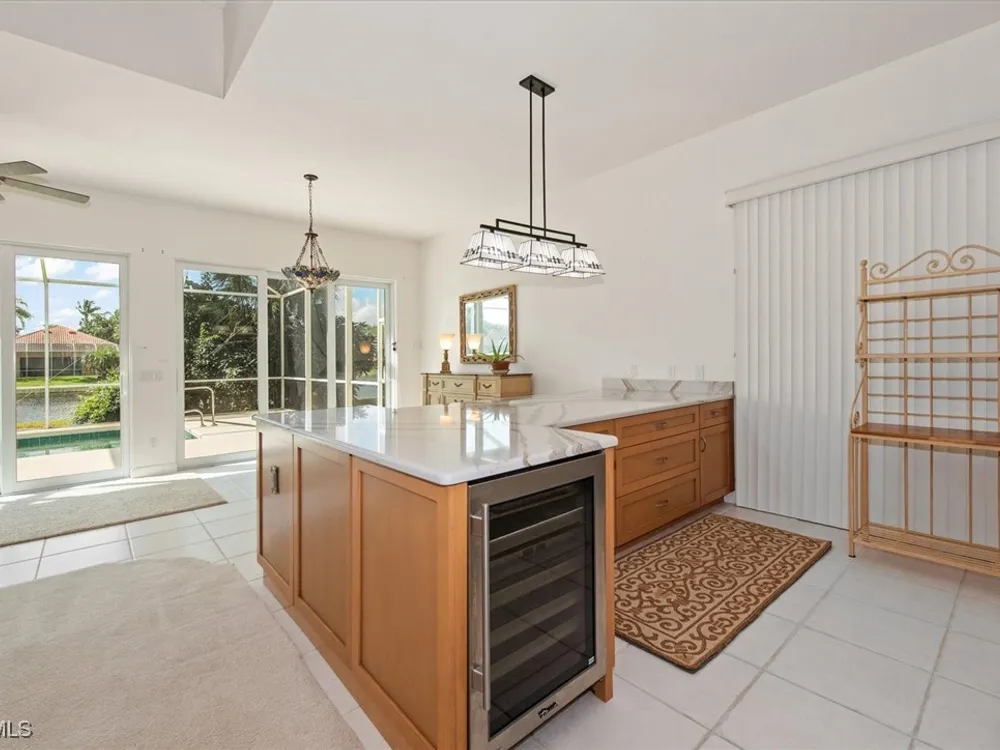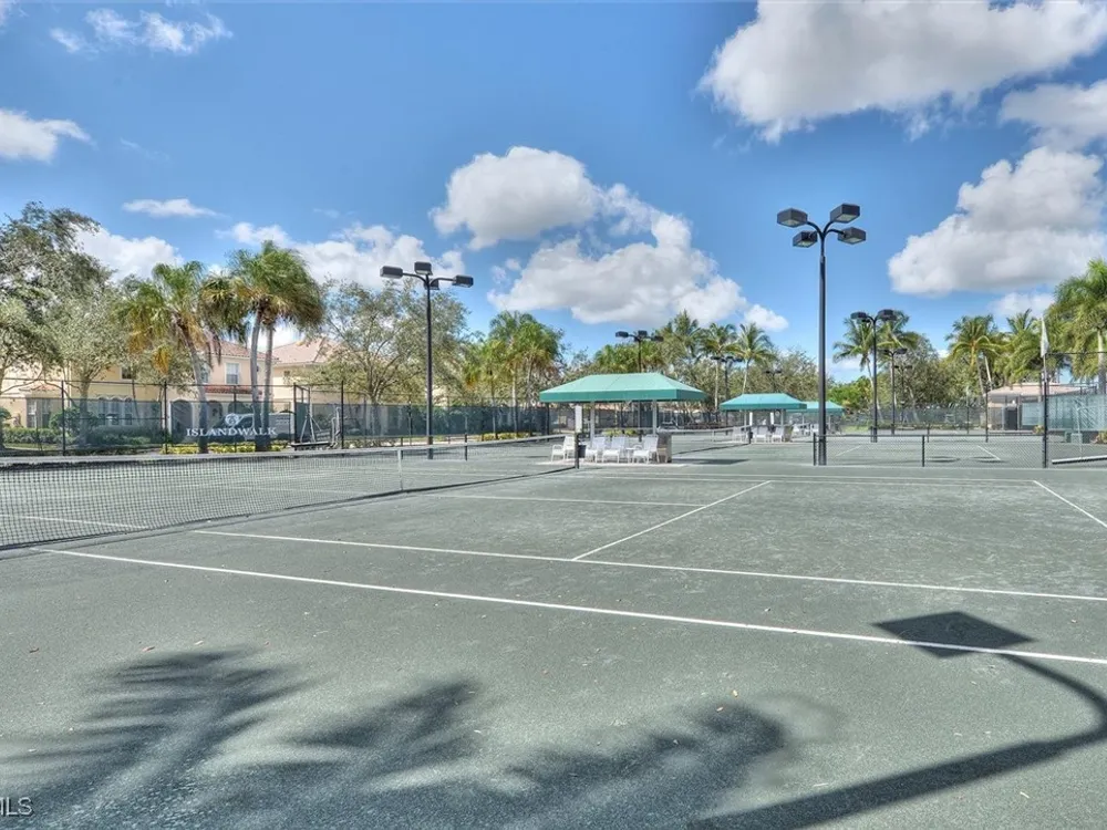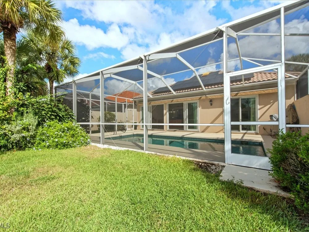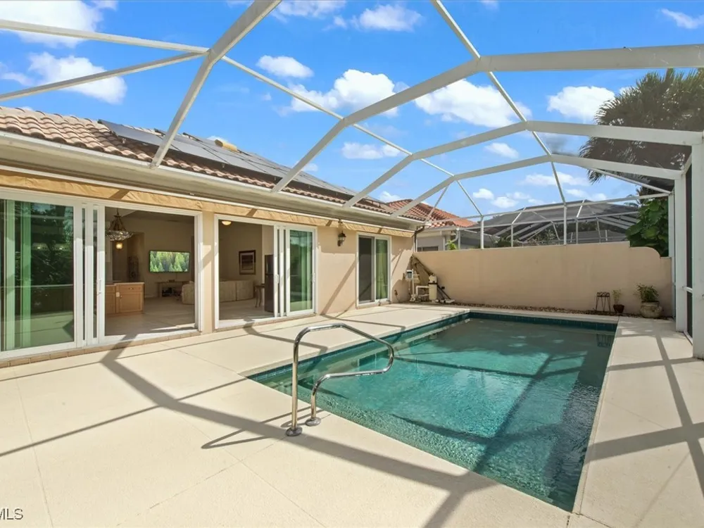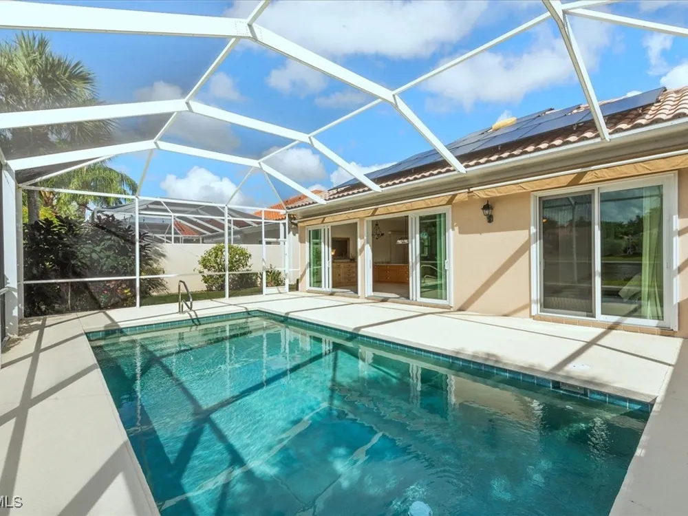 ISLAND WALK is one of the most highly sought after, full amenity communities Naples has to offer. This beautifully upgraded Oakmont model spreads over 2,181 square feet of living space with three bedrooms plus a den, three bathrooms, and an inviting saltwater pool overlooking the lake, and sits on the 2nd shortest cul-de-sac in the community. The home features OVER $100,000 in UPGRADES, including a PAID-OFF SOLAR SYSTEM that keeps the electric bill around $25 per month, with some months generating a credit from FPL. When you step inside, you’re greeted by the spacious living room, as your eyes are drawn to the serene lake view. High ceilings and natural light welcomes you home. The quality this home exudes is impressive. Inside, the kitchen is designed for those who love to cook, bake, and entertain, showcasing a custom designed oversized baker’s bar, wine cooler, double ovens, stainless steel appliances, slide-outs in the cabinetry, and ample counter space. There’s room for more than one chef in this kitchen. The primary suite features a unique bathroom layout with two separate bathrooms sharing a large walk-through shower, along with an upgraded Toto toilet, a large soaker tub, updated counters & fixtures and a separate vanity for her. The walk-in closet is spacious, but the hall is lined with closet space as well offering plenty of room for his clothes too. The den provides flexibility for an office or hobby room, while the laundry room includes built-in cabinets, a sink, and added storage. The guest quarters have their own wing of the house and include an updated bathroom as well. Additional upgrades include hurricane-rated windows and doors (with shutters for the kitchen door and one garage window), smart locks on all doors, epoxy flooring in the two-car garage with a built-in air compressor, a commercial-size water heater, and a full-house water filtration system. The home is located on the hospital electric grid—providing quick restoration of power during outages. Enjoy the screened saltwater pool with heater and pump replaced in 2020, perfect for relaxing with tranquil water views. 1-YEAR HOME WARRANTY INCLUDED for your peace of mind. Island Walk is a gated community known for its beautifully landscaped surroundings and resort-style amenities, including a Town Center with a restaurant, Casa Cotzelli, gas station, nail salon, hair salon, car wash, post office, fitness center, tennis and pickleball courts, bocce, lap pool, resort pool, and Venetian style scenic walking bridges throughout the neighborhood. Plus planned community activities to choose your level of socialization and activity. This ranks as one of the most desirable places to live in the country! Lawn maintenance, cable, and internet are all included in the HOA fees, allowing residents to fully enjoy the Naples lifestyle.