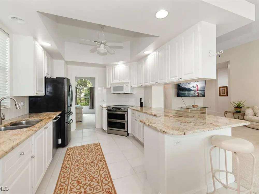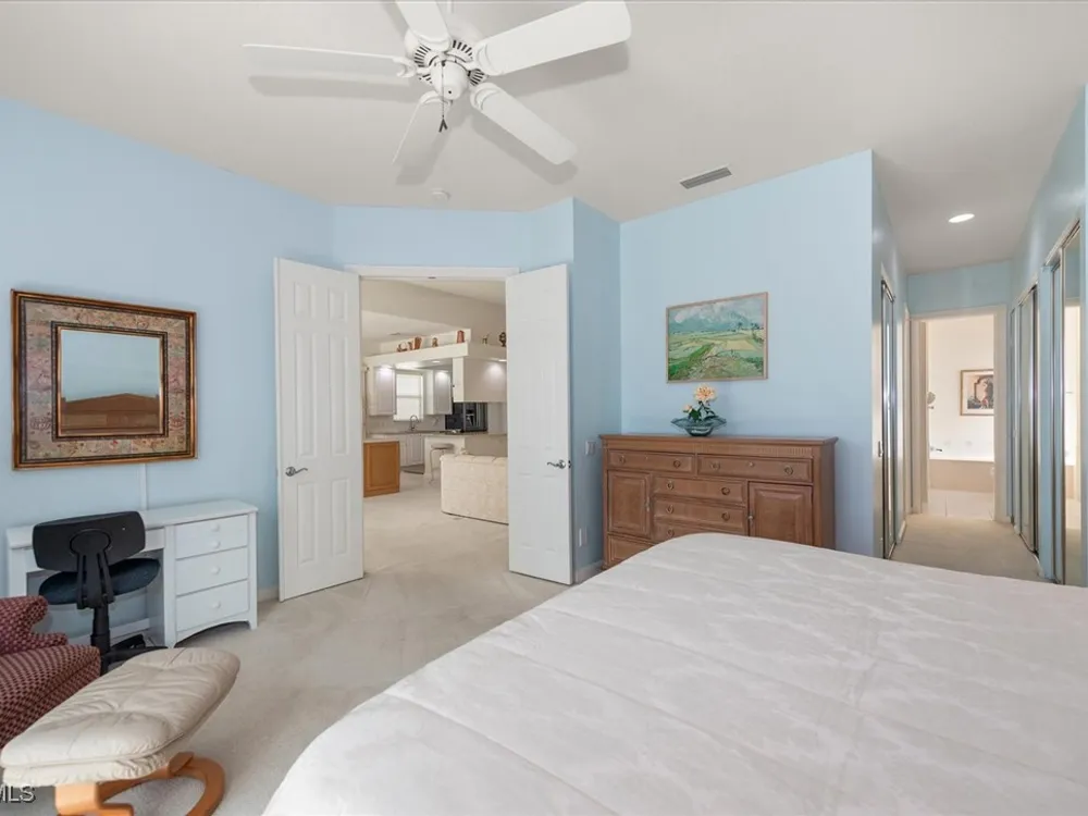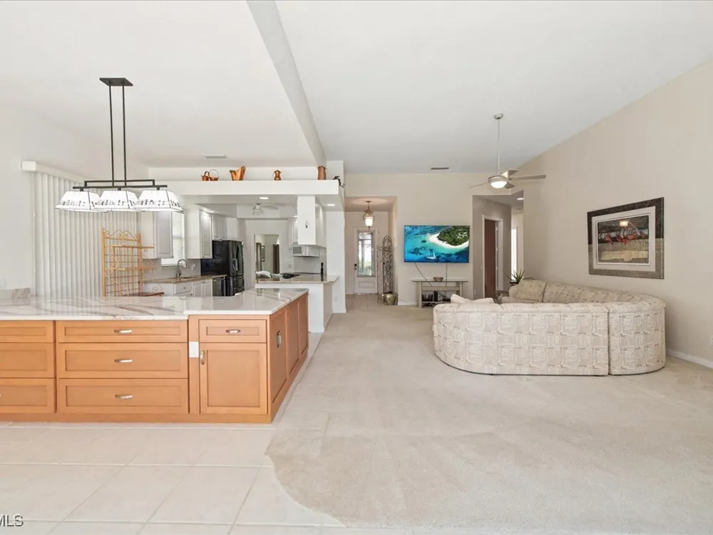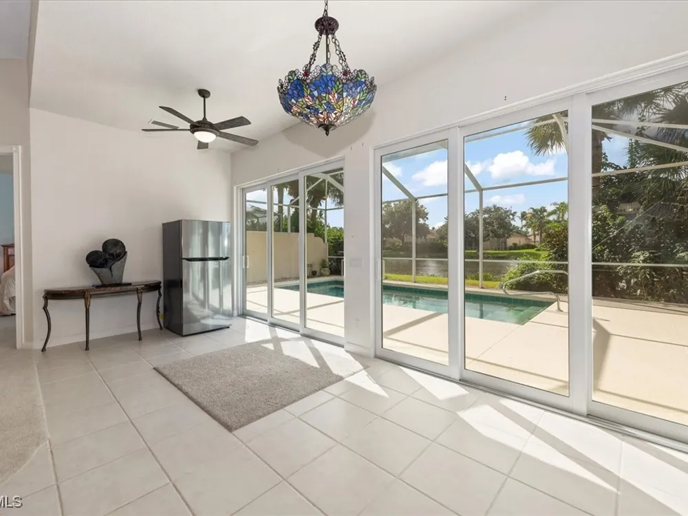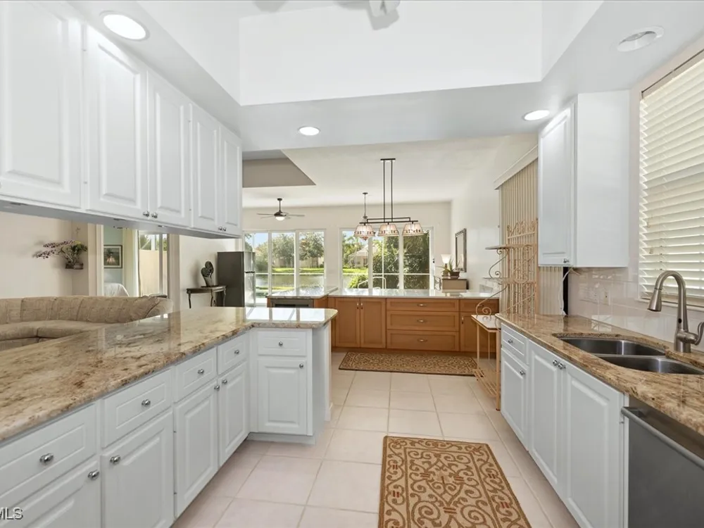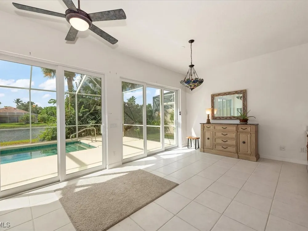 ISLAND WALK is one of the most highly sought after, full amenity communities Naples has to offer. This beautifully upgraded Oakmont model spreads over 2,181 square feet of living space with three bedrooms plus a den, three bathrooms, and an inviting saltwater pool overlooking the lake, and sits on the 2nd shortest cul-de-sac in the community. The home features OVER $100,000 in UPGRADES, including a PAID-OFF SOLAR SYSTEM that keeps the electric bill around $25 per month, with some months generating a credit from FPL. When you step inside, you’re greeted by the spacious living room, as your eyes are drawn to the serene lake view. High ceilings and natural light welcomes you home. The quality this home exudes is impressive. Inside, the kitchen is designed for those who love to cook, bake, and entertain, showcasing a custom designed oversized baker’s bar, wine cooler, double ovens, stainless steel appliances, slide-outs in the cabinetry, and ample counter space. There’s room for more than one chef in this kitchen. The primary suite features a unique bathroom layout with two separate bathrooms sharing a large walk-through shower, along with an upgraded Toto toilet, a large soaker tub, updated counters & fixtures and a separate vanity for her. The walk-in closet is spacious, but the hall is lined with closet space as well offering plenty of room for his clothes too. The den provides flexibility for an office or hobby room, while the laundry room includes built-in cabinets, a sink, and added storage. The guest quarters have their own wing of the house and include an updated bathroom as well. Additional upgrades include hurricane-rated windows and doors (with shutters for the kitchen door and one garage window), smart locks on all doors, epoxy flooring in the two-car garage with a built-in air compressor, a commercial-size water heater, and a full-house water filtration system. The home is located on the hospital electric grid—providing quick restoration of power during outages. Enjoy the screened saltwater pool with heater and pump replaced in 2020, perfect for relaxing with tranquil water views. 1-YEAR HOME WARRANTY INCLUDED for your peace of mind. Island Walk is a gated community known for its beautifully landscaped surroundings and resort-style amenities, including a Town Center with a restaurant, Casa Cotzelli, gas station, nail salon, hair salon, car wash, post office, fitness center, tennis and pickleball courts, bocce, lap pool, resort pool, and Venetian style scenic walking bridges throughout the neighborhood. Plus planned community activities to choose your level of socialization and activity. This ranks as one of the most desirable places to live in the country! Lawn maintenance, cable, and internet are all included in the HOA fees, allowing residents to fully enjoy the Naples lifestyle.