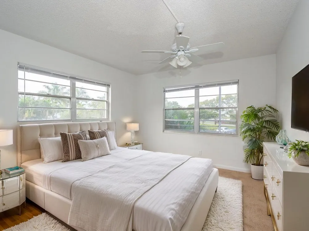 Walking distance to house of worship and pool, ready to rent right away, this fully renovated 2-bedroom, 1.5-bath condo is a rental-friendly gem with brand-new flooring and fresh paint throughout. Priced to sell quickly, it boasts a meticulously maintained interior, a spacious screened-in patio facing north, and a host of desirable amenities. Enjoy 24-hour security, access to local shows, and a complimentary bus service for easy commuting. The condo is LLC-friendly with A/C installed in 2019.