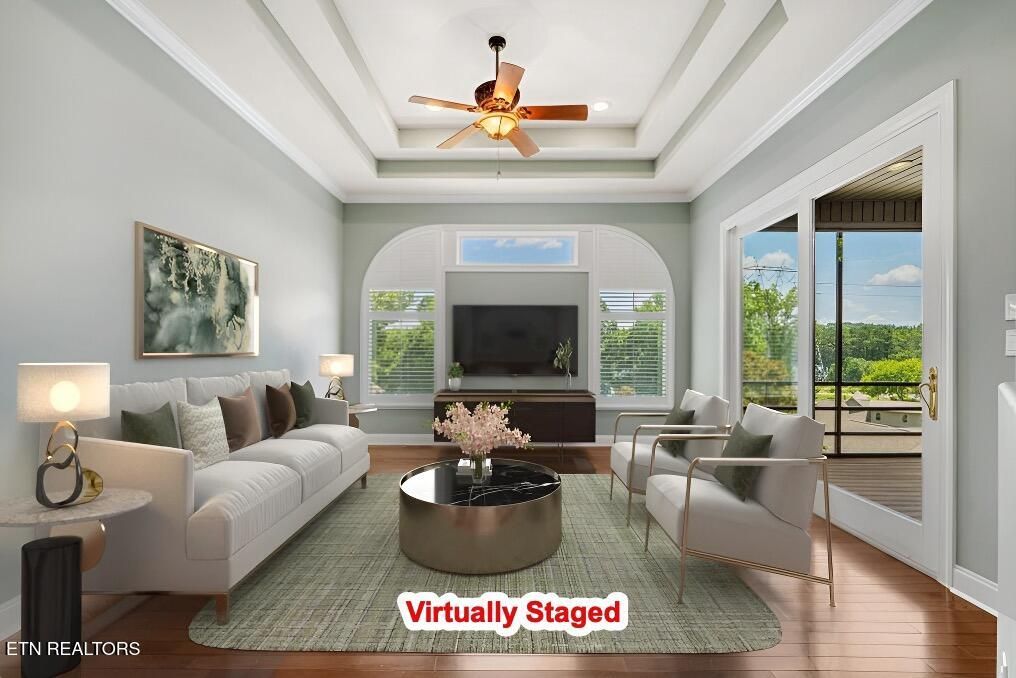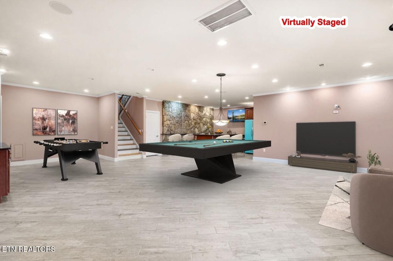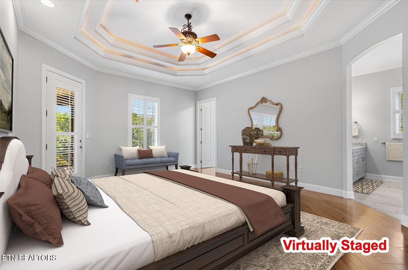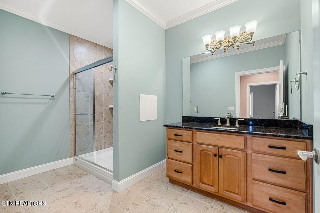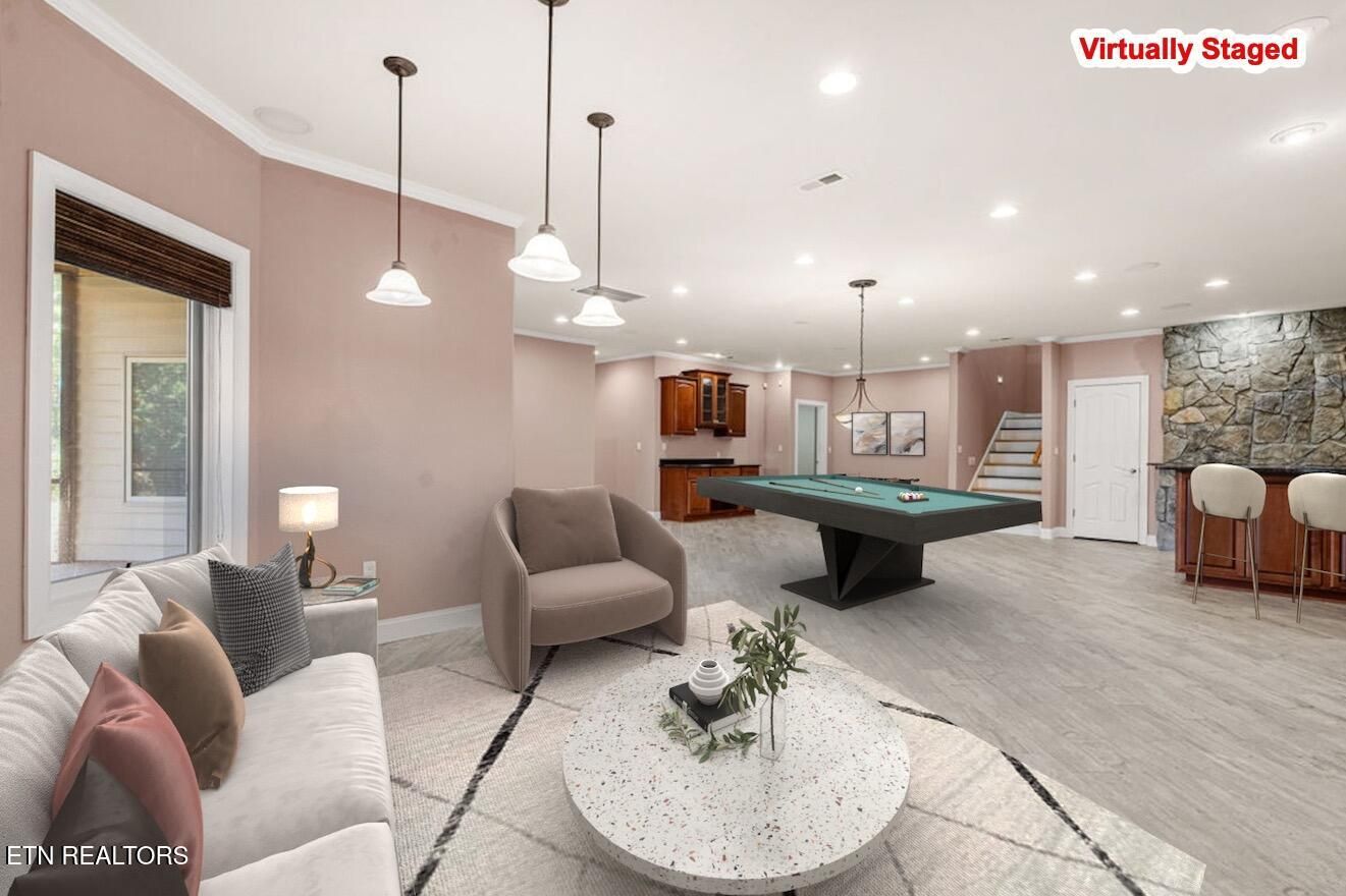 BRAND NEW ROOF 11-2025! Welcome to 402 Catoosa Lane, a captivating lake view residence nestled in the prestigious Tellico Village Lake & Golfing Community. This home offers comfort and an inviting and functional main level that sets the tone for exquisite living. Upon entry, you're greeted by the grandeur of hardwood floors extending throughout the main level, accentuating the tall ceilings and crown molding to create a sense of openness and elegance. The formal dining room, just off the foyer, invites you to host elegant dinners, while the adjacent office or sitting area, adorned with a trayed and coffered ceiling, and large sliding glass doors, leads to a screened lake view porch for a tranquil escape. Guest Bedroom #1 is filled with natural light from large windows with transoms, while the guest half bath features elegant tile flooring, faux-painted walls, and custom cabinetry, adding texture and warmth. The lakeview primary bedroom offers a serene atmosphere with a double tray ceiling and plantation shutters for privacy. It opens to a screened porch with stunning lake views. The remodeled en suite bathroom is a spa-like sanctuary, featuring wood-look tile flooring, custom cabinetry with a double vanity, granite countertops, a floor-to-ceiling shower with stainless fixtures, a soaking tub, and a water closet. The kitchen is equipped with custom wood cabinetry, granite countertops, under-cabinet lighting, and a tiled backsplash. High-end appliances, including a stainless GE refrigerator, Thermador induction cooktop, convection microwave, oven, and KitchenAid dishwasher, make meal preparation a joy. The custom island with granite countertop, stainless sink, seating room, and pantry with a decorative door offers additional storage and a breakfast area. The great room features large sliding glass doors opening to the screened porch, seamlessly blending indoor and outdoor living. Additional main level features include a versatile hallway off the kitchen with a large closet, Guest Full Bathroom #1 with custom cabinetry, and a spacious three-car side entry garage with epoxy-coated flooring. Lower Walkout Basement Level blends functionality with style, featuring crown molding throughout for a sophisticated touch. The expansive open floor plan family room is highlighted by wood-look tile flooring and sliding glass doors leading to a spacious lower lake view screened porch. The kitchen area is complete w/custom cabinetry, a granite countertop, and a sink, along with a Frigidaire dishwasher and retro-look Whirlpool refrigerator/freezer. Custom cabinet pull-out pantry shelving and a stone floor-to-ceiling wall with a granite top enhance both functionality and aesthetics. The guest suite area is designed for comfort and privacy, featuring Guest Bedrooms #3 and #4, Guest Bathroom #3 boasting tiled flooring, a large tiled jetted tub, custom cabinetry with a sink, a granite countertop, a large mirror, and fixtures and Guest Bathroom #4 offering large floor-to-ceiling tiled shower with sliding glass doors, custom cabinetry, and granite countertop. Additional features include a versatile flex room with wall cabinetry, a utility closet, a Milele washer and dryer, and a utility sink, as well as an art/sewing/craft room equipped for creative pursuits. The exterior of the home is beautifully adorned with brick and vinyl siding, and an oversized concrete driveway with double lamp pole lighting leads to a large covered front porch, perfect for welcoming guests. The professionally landscaped grounds, complete with irrigation, remain lush and vibrant year-round. A paver sidewalk and walkway with aluminum powder-coated fencing lead from the garage side to the side and back of the home, highlighting the thoughtful exterior design. The lush backyard is framed by an expansive stone retaining wall, offering partial lake views in the spring and summer and full views in the cooler months. For more detailed information see The Features Sheet