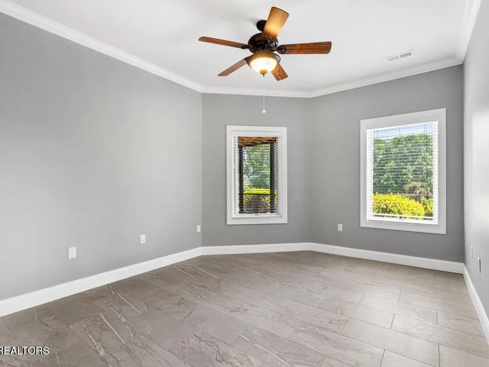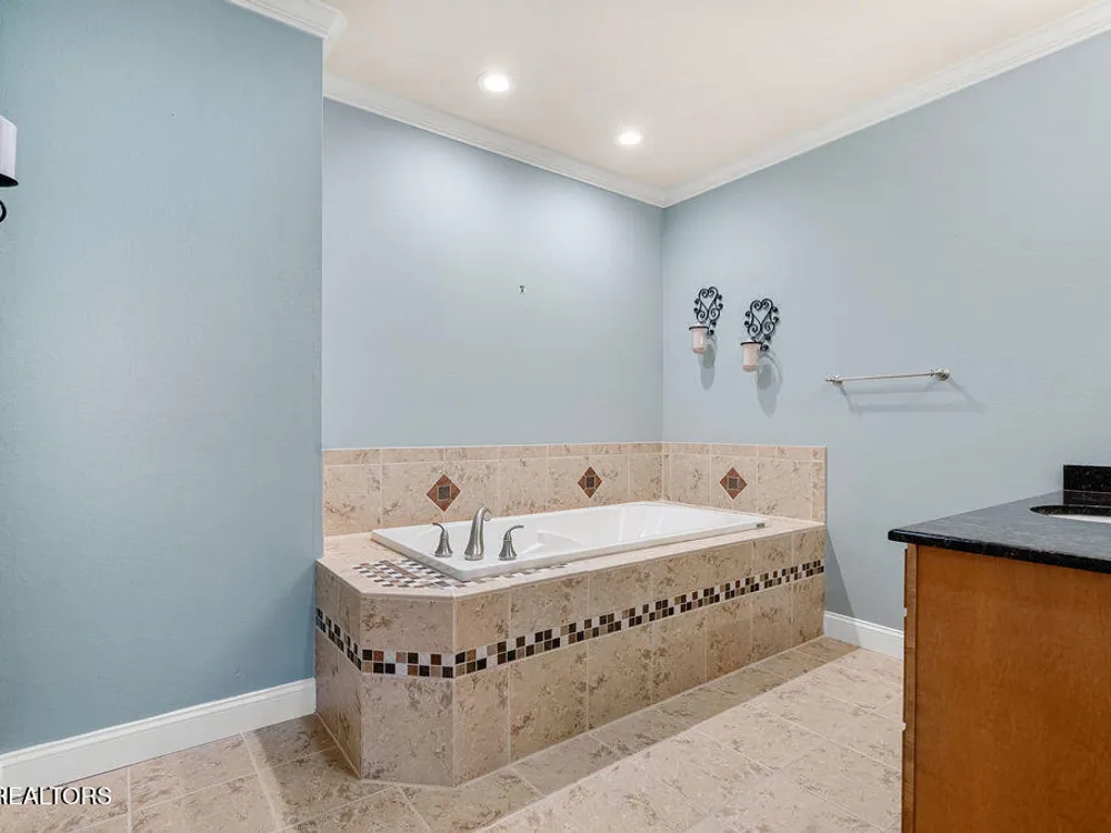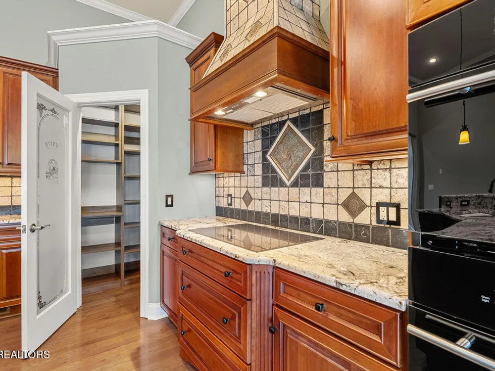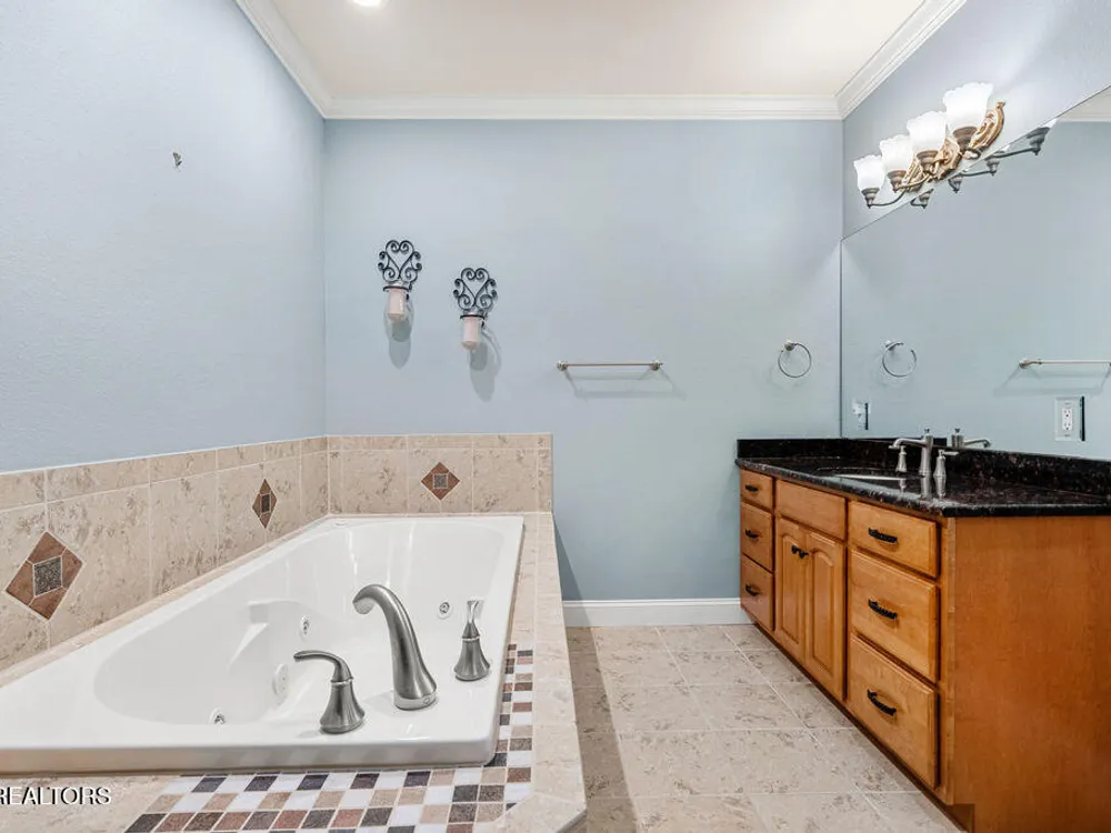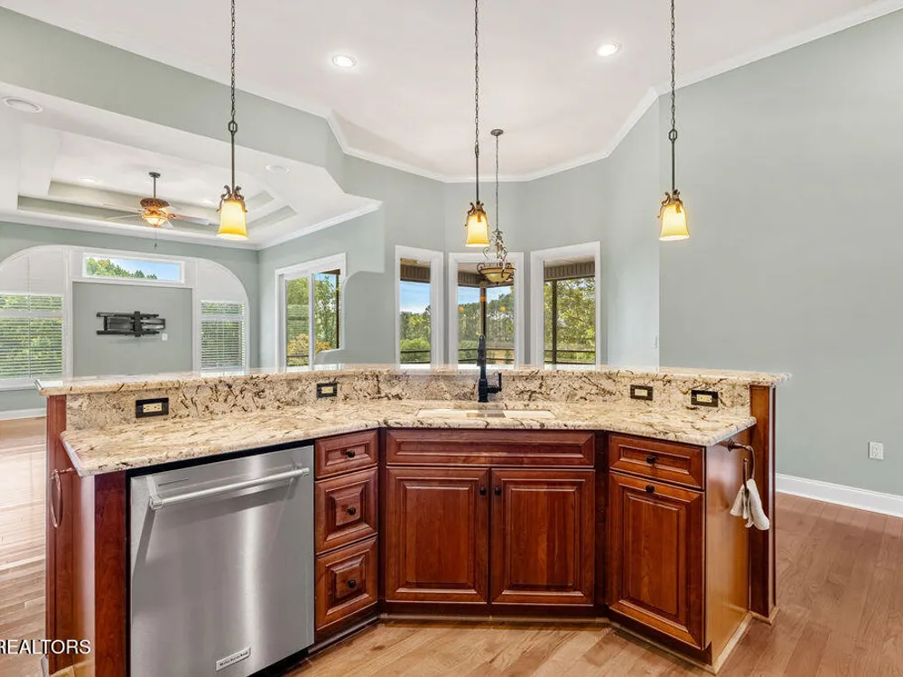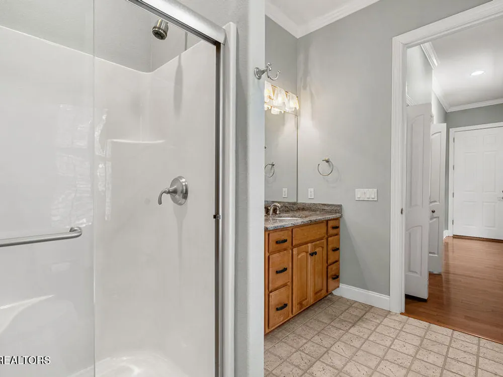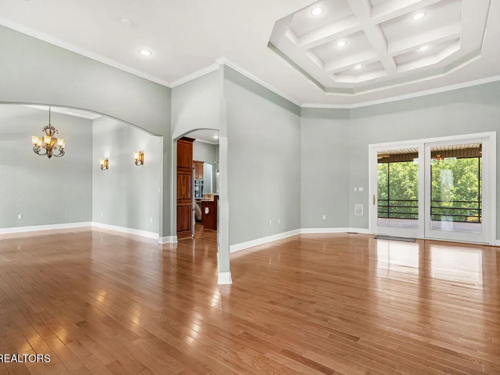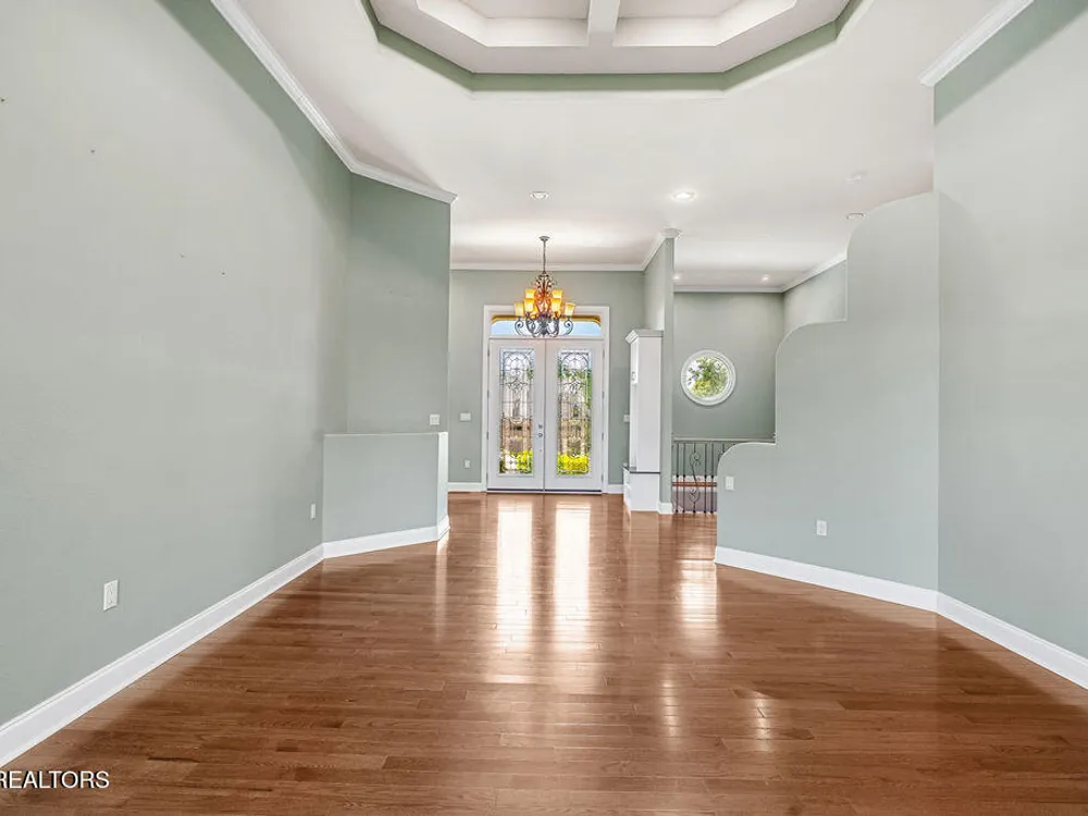 Welcome to 402 Catoosa Lane, a captivating lake view residence nestled in the prestigious Tellico Village Lake & Golfing Community. This home perfectly encapsulates luxury and comfort, offering an inviting and functional main level that sets the tone for exquisite living. Upon entry, you're greeted by the grandeur of hardwood floors extending throughout the main level, accentuating the tall ceilings and crown molding to create a sense of openness and elegance. The formal dining room, just off the foyer, invites you to host elegant dinners, while the adjacent office or sitting area, adorned with a trayed and coffered ceiling, and large sliding glass doors, leads to a screened lake view porch for a tranquil escape. Guest Bedroom #1 is filled with natural light from large windows with transoms, while the guest half bath features elegant tile flooring, faux-painted walls, and custom cabinetry, adding texture and warmth. The lakeview primary bedroom offers a serene atmosphere with a double tray ceiling and plantation shutters for privacy. It opens to a screened porch with stunning lake views. The remodeled en suite bathroom is a spa-like sanctuary, featuring wood-look tile flooring, custom cabinetry with a double vanity, granite countertops, a floor-to-ceiling shower with stainless fixtures, a soaking tub, and a water closet. The kitchen is equipped with custom wood cabinetry, granite countertops, under-cabinet lighting, and a tiled backsplash. High-end appliances, including a stainless GE refrigerator, Thermador induction cooktop, convection microwave, oven, and KitchenAid dishwasher, make meal preparation a joy. The custom island with granite countertop, stainless sink, seating room, and pantry with a decorative door offers additional storage and a breakfast area. The great room features large sliding glass doors opening to the screened porch, seamlessly blending indoor and outdoor living. Additional main level features include a versatile hallway off the kitchen with a large closet, Guest Full Bathroom #1 with custom cabinetry, and a spacious three-car side entry garage with epoxy-coated flooring. Lower Walkout Basement Level blends functionality with style, featuring crown molding throughout for a sophisticated touch. The expansive open floor plan family room is highlighted by wood-look tile flooring and sliding glass doors leading to a spacious lower lake view screened porch. The kitchen area is complete w/custom cabinetry, a granite countertop, and a sink, along with a Frigidaire dishwasher and retro-look Whirlpool refrigerator/freezer. Custom cabinet pull-out pantry shelving and a stone floor-to-ceiling wall with a granite top enhance both functionality and aesthetics. The guest suite area is designed for comfort and privacy, featuring Guest Bedrooms #3 and #4, Guest Bathroom #3 boasting tiled flooring, a large tiled jetted tub, custom cabinetry with a sink, a granite countertop, a large mirror, and fixtures and Guest Bathroom #4 offering large floor-to-ceiling tiled shower with sliding glass doors, custom cabinetry, and granite countertop. Additional features include a versatile flex room with wall cabinetry, a utility closet, a Milele washer and dryer, and a utility sink, as well as an art/sewing/craft room equipped for creative pursuits. The exterior of the home is beautifully adorned with brick and vinyl siding, and an oversized concrete driveway with double lamp pole lighting leads to a large covered front porch, perfect for welcoming guests. The professionally landscaped grounds, complete with irrigation, remain lush and vibrant year-round. A paver sidewalk and walkway with aluminum powder-coated fencing lead from the garage side to the side and back of the home, highlighting the thoughtful exterior design. The lush backyard is framed by an expansive stone retaining wall, offering partial lake views in the spring and summer and full views in the cooler months. For more detailed information see The Features Sheet.