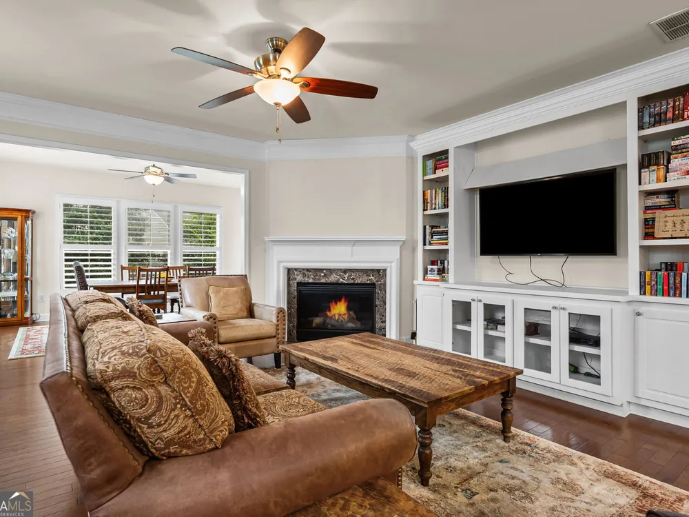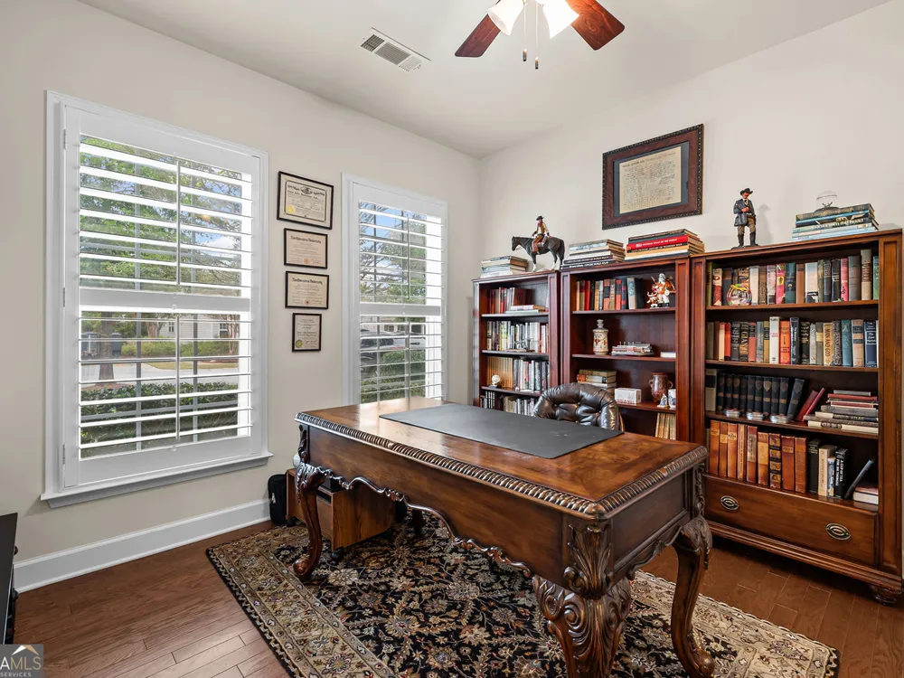 - Bookcases, Double Vanity, Main Level Primary, Separate Shower, Split Bedrooms, Tile Bath, Walk-In Closet(s), Dual Pane Window(s), Family Room, Entrance Foyer, Laundry Facility, Library, Home Office, Sunroom