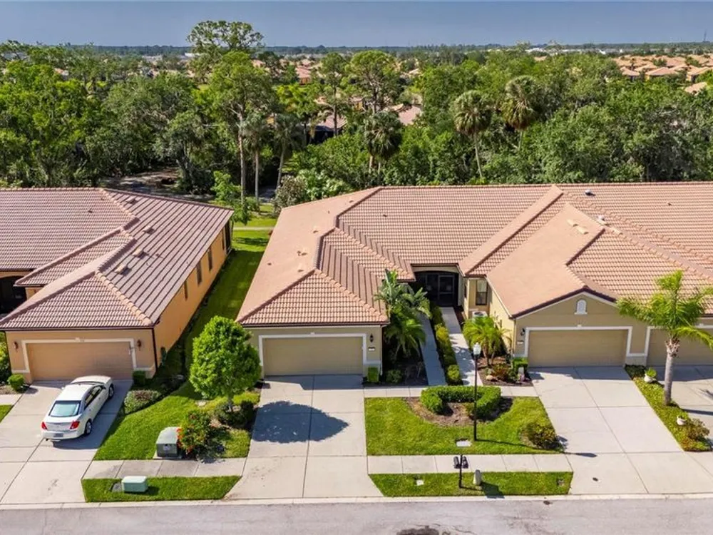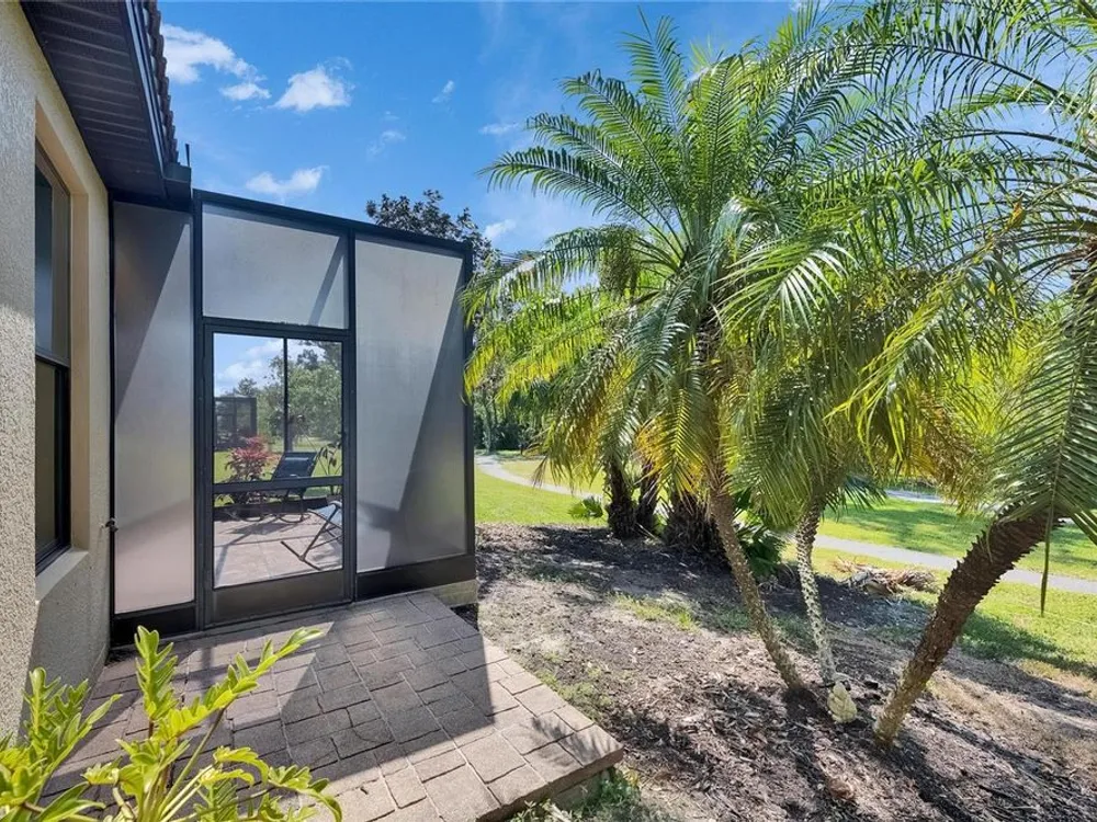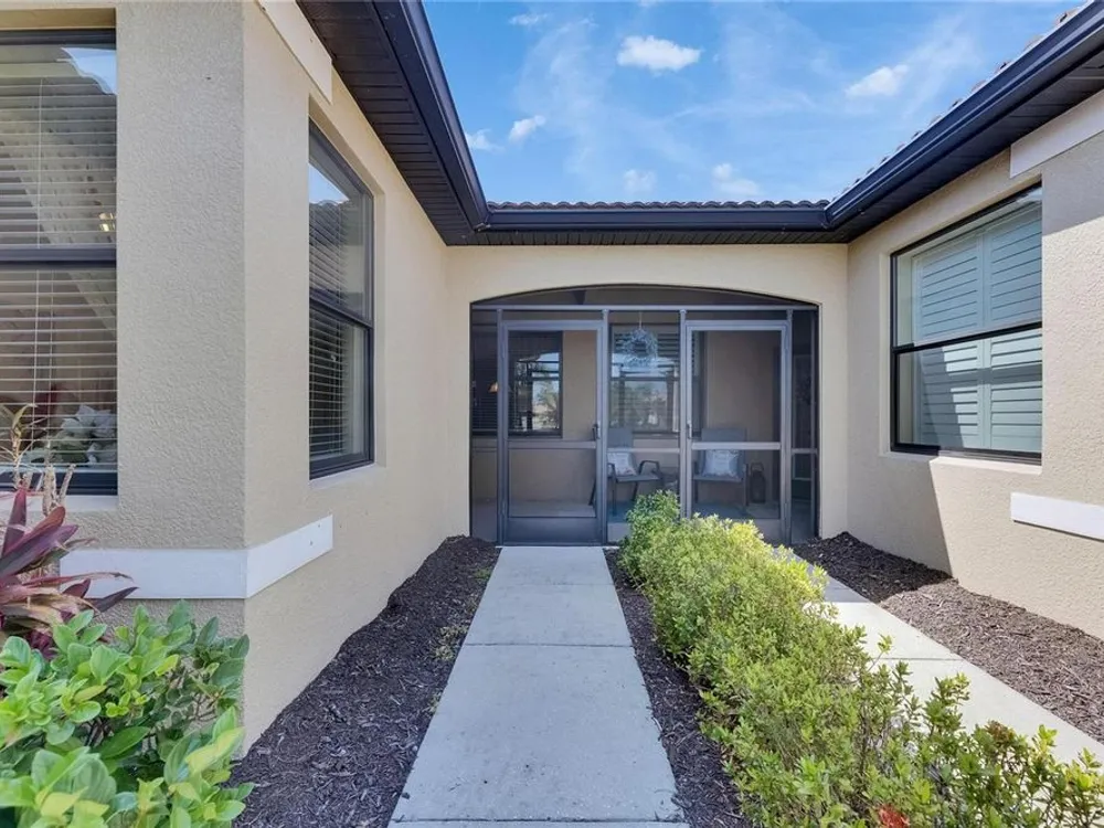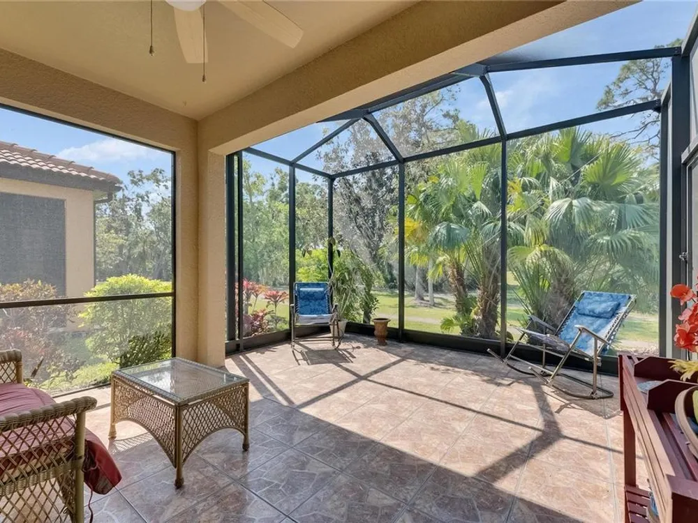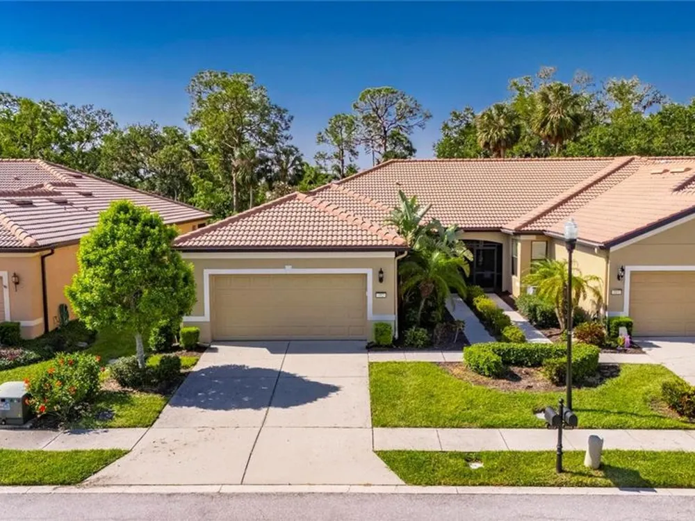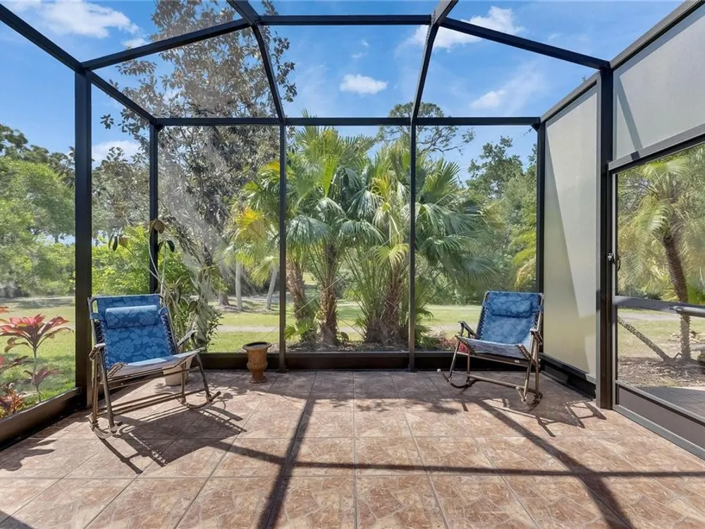Look no further... METICULOUSLY MAINTAINED 2 bedrooms, with an office/den, 2 bath 2 car garage villa located on a beautiful walking trail in the maintenance free living of Southshore Falls..... This beautiful villa is move in ready. Screened entrance, gorgeous glass front door with magnetic screened door. Wonderful cross breeze throughout the home during the cooler months. This pristine condition home boasts an open kitchen with breakfast bar and room for bistro seating. Many upgrades in the home including upgraded pane windows, new A/C shower with glass enclosure, shutters, stainless steel appliances, granite countertop, custom backsplash, custom window treatments, and an extended tiled lanai. Split floorplan works great for when you have guests. As you step outside into the very private extended tile lanai enjoy the peace and quiet of no backyard neighbors. Perhaps enjoy a cup of coffee or an adult beverage with a good book or watch the ever-changing views of nature on the beautiful walking trail. Landscaping maintained by HOA. Easy walking distance to the Eagles Nest pool, pickleball and tennis courts. COME CHECK THE STATE OF THE ART RESORT STYLE AMENITIES... YOU WILL BE WANTING TO PROLONG YOUR VISIT WITH A DIP IN THE BEAUTIFUL POOL OR RELAX AT THE CLUBHOUSE. You will never be bored in this gated community that offers lots of social activities and clubs. 3 pools, including LAGOON POOL, RESISTANCE POOL, AND EAGLES NEST POOL are all heated, hot tub, clubhouse, with state-of-the-art fitness center! Casual coffee cafe, hobby/craft room, Ballroom, library/card room, billiards, putting green, shuffleboard and bocce ball courts!! Walking trails, fitness, and a community that allows pets. NO CDD, don’t miss your opportunity and make this your home today!! Easy to view. Chat with the neighbors and learn firsthand what this community has to offer... plan on relaxing at the pool or enjoying some exercise at the pickleball courts or gym, or perhaps playing cards, or Bingo or crafts, dancing, so much to do.. so stop by and hear all about the fun your new friends and neighbors are experiencing living in this beautiful community. Make an appointment to view. Easy to view. YOU WILL NOT BE DISAPOINTED! Some Furnishings available for purchase under separate contract.