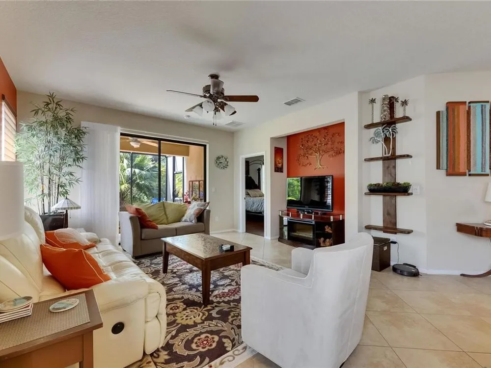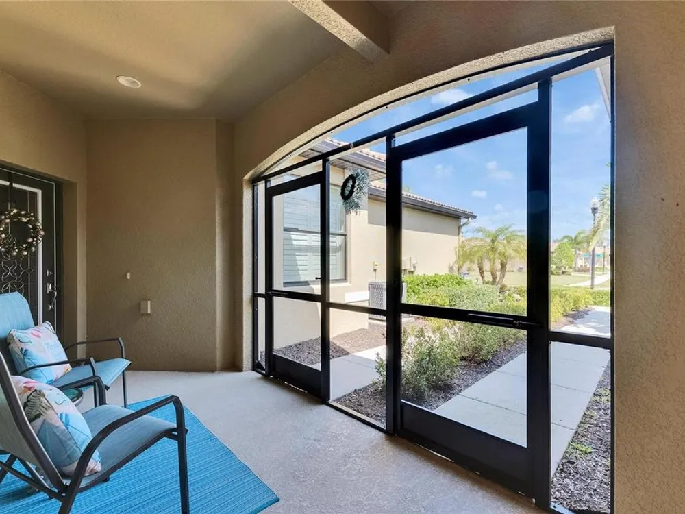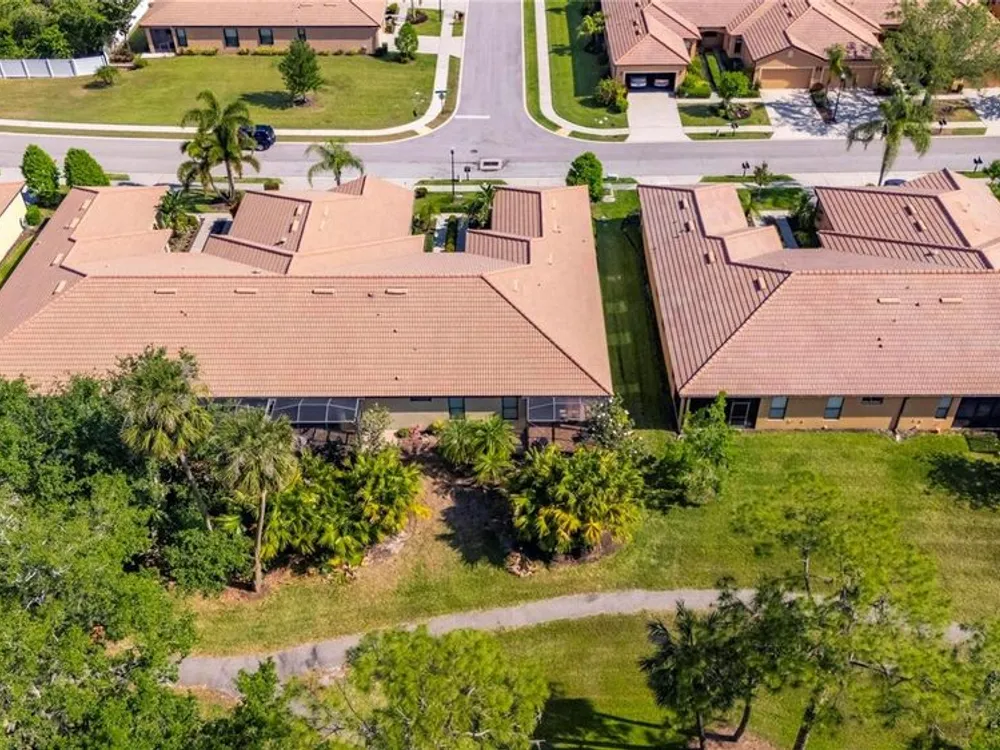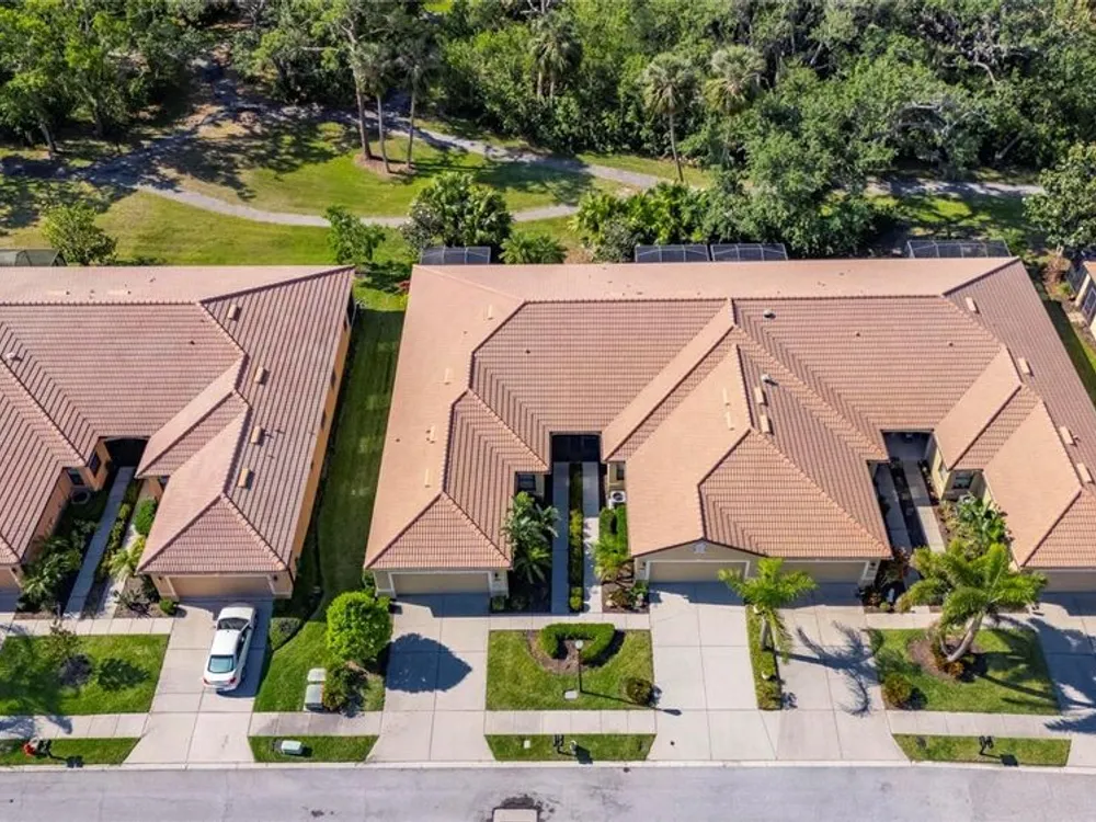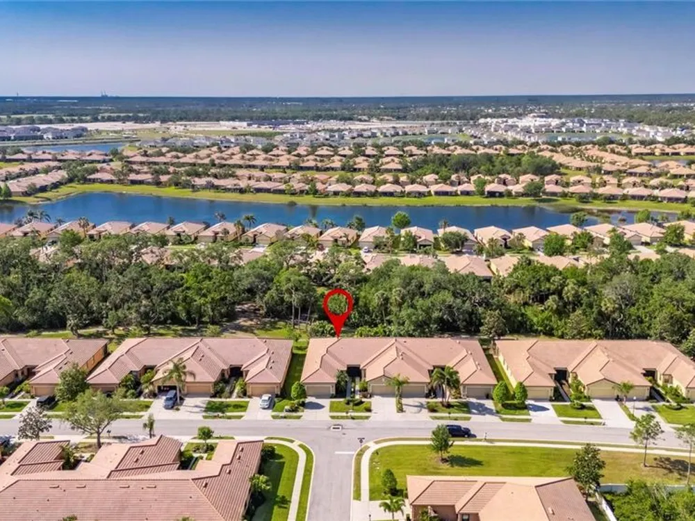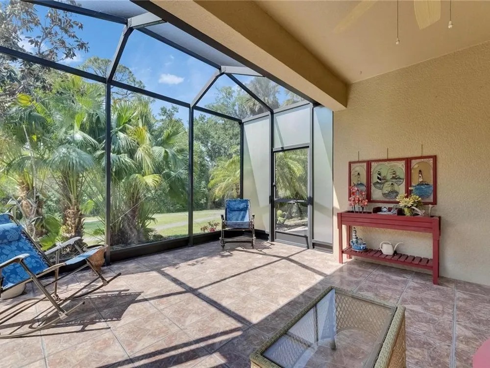 Look no further... METICULOUSLY MAINTAINED 2 bedrooms, with an office/den, 2 bath 2 car garage villa located on a beautiful walking trail in the maintenance free living of Southshore Falls..... This beautiful villa is move in ready. Screened entrance, gorgeous glass front door with magnetic screened door. Wonderful cross breeze throughout the home during the cooler months. This pristine condition home boasts an open kitchen with breakfast bar and room for bistro seating. Many upgrades in the home including upgraded pane windows, new A/C shower with glass enclosure, shutters, stainless steel appliances, granite countertop, custom backsplash, custom window treatments, and an extended tiled lanai. Split floorplan works great for when you have guests. As you step outside into the very private extended tile lanai enjoy the peace and quiet of no backyard neighbors. Perhaps enjoy a cup of coffee or an adult beverage with a good book or watch the ever-changing views of nature on the beautiful walking trail. Landscaping maintained by HOA. Easy walking distance to the Eagles Nest pool, pickleball and tennis courts. COME CHECK THE STATE OF THE ART RESORT STYLE AMENITIES... YOU WILL BE WANTING TO PROLONG YOUR VISIT WITH A DIP IN THE BEAUTIFUL POOL OR RELAX AT THE CLUBHOUSE. You will never be bored in this gated community that offers lots of social activities and clubs. 3 pools, including LAGOON POOL, RESISTANCE POOL, AND EAGLES NEST POOL are all heated, hot tub, clubhouse, with state-of-the-art fitness center! Casual coffee cafe, hobby/craft room, Ballroom, library/card room, billiards, putting green, shuffleboard and bocce ball courts!! Walking trails, fitness, and a community that allows pets. NO CDD, don’t miss your opportunity and make this your home today!! Easy to view. Chat with the neighbors and learn firsthand what this community has to offer... plan on relaxing at the pool or enjoying some exercise at the pickleball courts or gym, or perhaps playing cards, or Bingo or crafts, dancing, so much to do.. so stop by and hear all about the fun your new friends and neighbors are experiencing living in this beautiful community. Make an appointment to view. Easy to view. YOU WILL NOT BE DISAPOINTED! Some Furnishings available for purchase under separate contract.