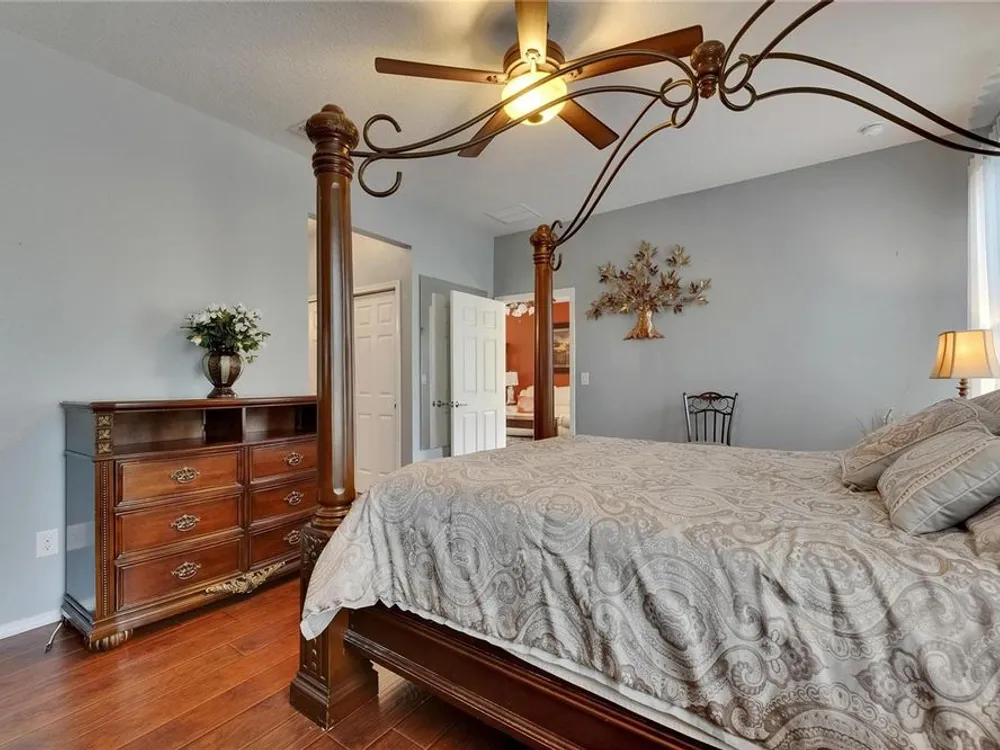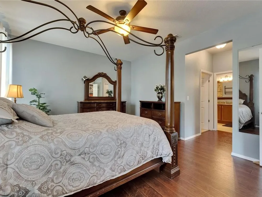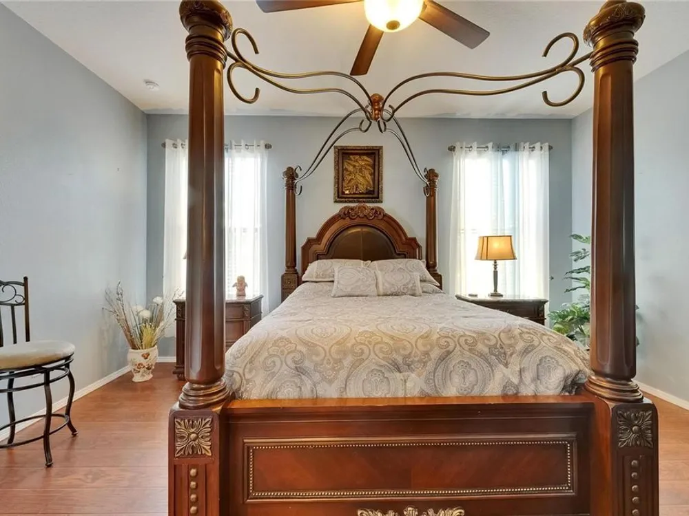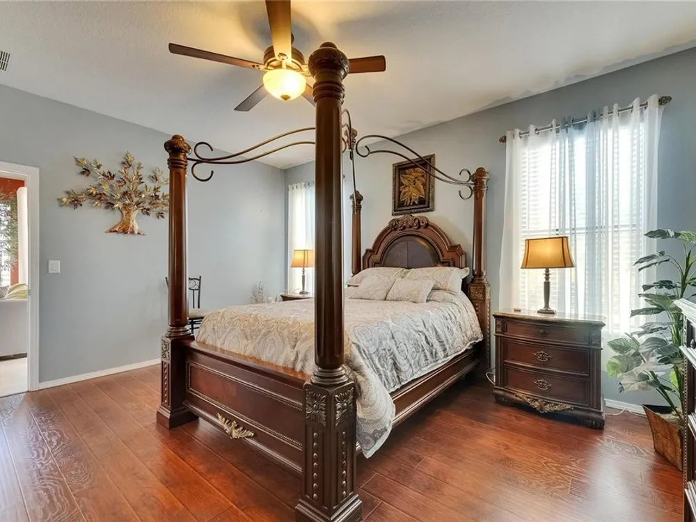 - Ceiling Fan(s), Eat-in Kitchen, Living/Dining Room, Open Floorplan, Main Level Primary, Solid Surface Counters, Solid-Wood Cabinets, Split Bedrooms, Thermostat, Walk-In Closet(s), Window Treatments