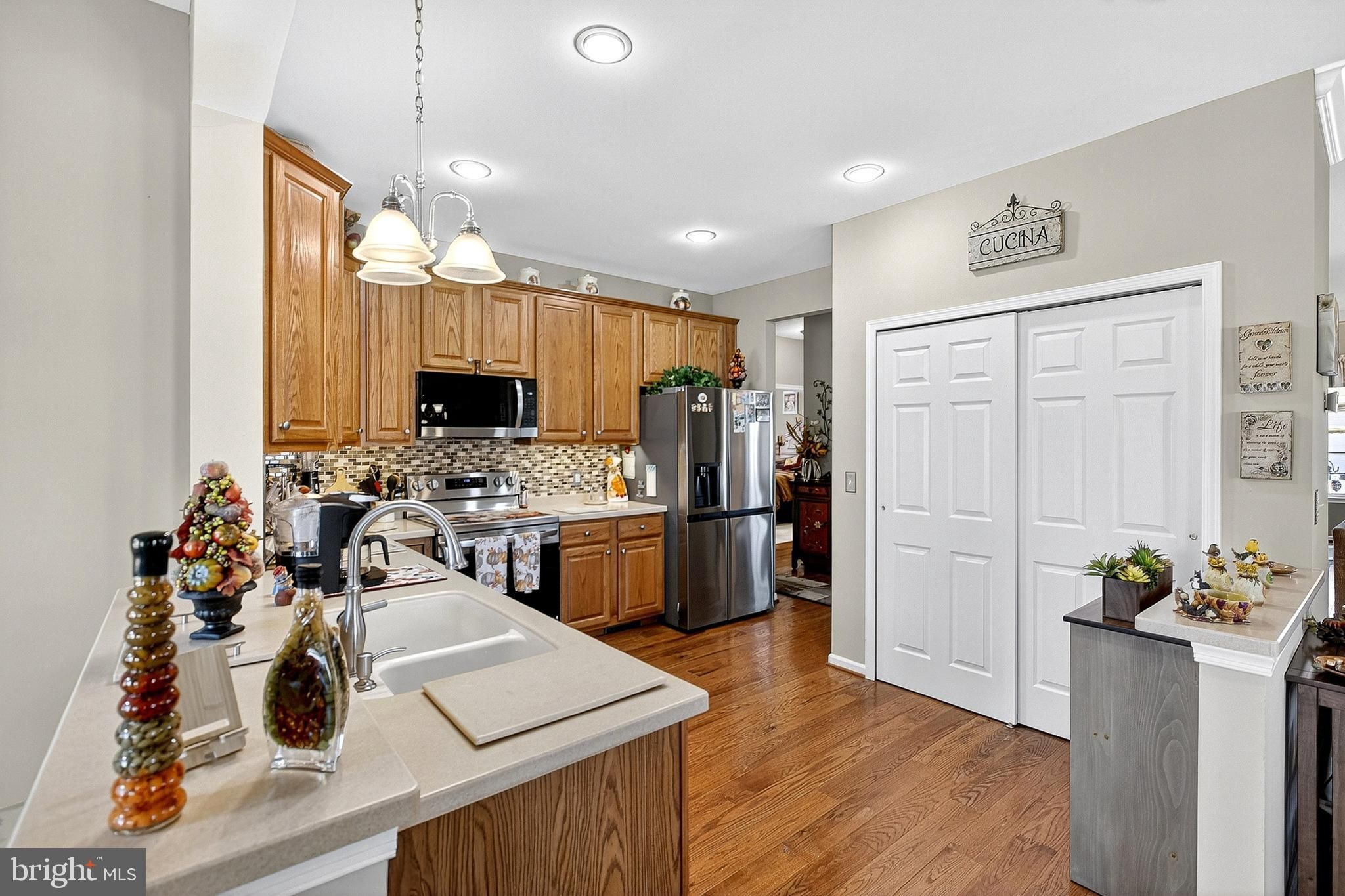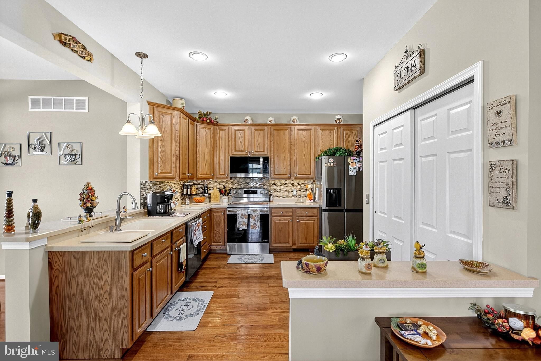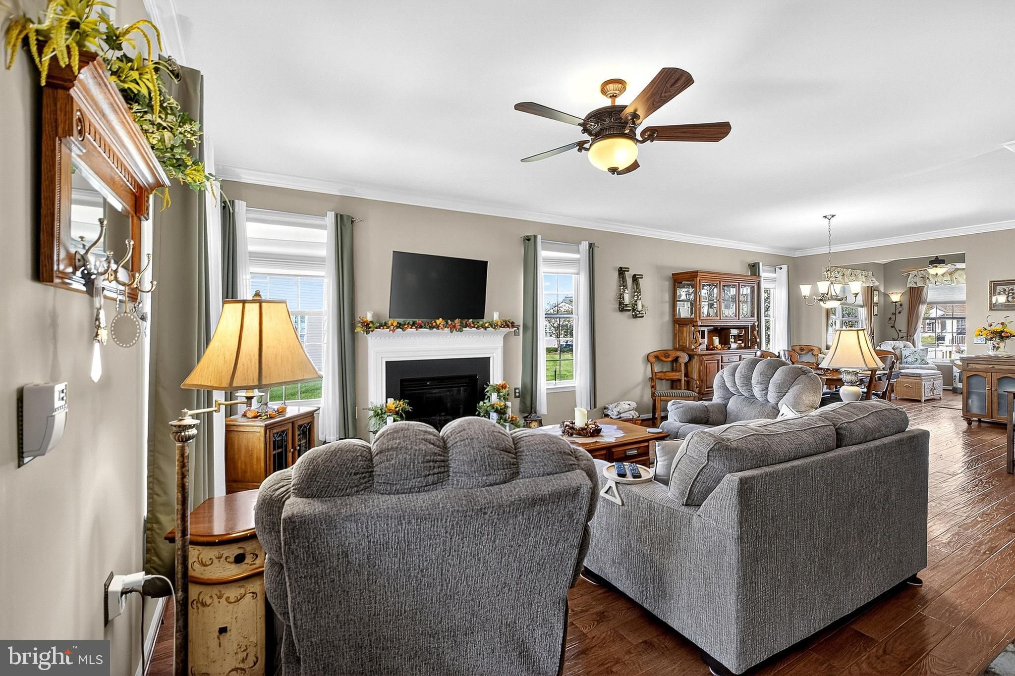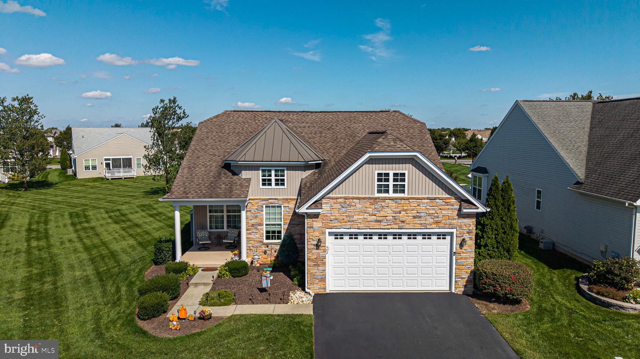 This property is just beautiful from the outside in. Sitting on a premium lot, you will notice the attention to detail that the sellers give to every aspect of their home. Being original owners, they have tried to incorporate everything to operate at its maximum function. The stone exterior adds class and prestige to this gorgeous home. Upon entry, you will find a 2-story foyer and a large coat closet for you and your guests! Walking into the open floor plan, you will be welcomed right in. You will have a 180-degree view of your living space, including the great room with a fireplace, the versatile dining area, the gourmet kitchen, the sun room, and the breakfast room. The gourmet kitchen offers an abundance of counter space, an oversized pantry, and brand-new stainless steel appliances. It is adjacent to the breakfast room that has sliding glass doors that lead to the oversized maintenance-free deck. Enjoy this extra-large deck any time of day, especially in the evening when the top lights are lit, and enjoy a beverage or cocktail of your choice privately or with your guests. In addition to your breakfast room, you will see the added sunroom with vaulted ceilings, sconce lighting, and a ceiling fan that could easily be your reading nook, your coffee spot, or general relaxation room. What a bonus! The primary bedroom suite in this home is quietly tucked away in the back of the home. With an entire row of beautiful windows to allow the light to shine in, there is plenty of space for a king-sized bed, nightstands, a dresser, and a bureau. The walk-in closet has a variety of built-in shelving for all of your necessities. The second bedroom on this level is equally generous in size. with a large closet. The separate laundry room on the main floor has added shelving and a nice washer and dryer that are included. Let's talk about this oversized 2-car garage. There is an abundance of built-in garage storage cabinets as well as overhead storage surrounding the garage. Heading up the stairs, you will be delighted with the completely oversized 3rd bedroom that can be a guest room, a work-from-home office, a second family room, a craft room, or just about anything you want. Or a combination of any of these needs. It is currently being used as an in-home office/guest room. You won't believe it, but there's more. The seller has created an added storage room right off of this bedroom that will hold all of your seasonal decor, extra household goods, dry storage, supplies, etc. There is also a built-in cedar closet for all of your fine clothing or items that need additional storage protection. There is so much more I want to tell you about this lovely home...it would be better for you to come and see for yourself! Schedule your private tour today!