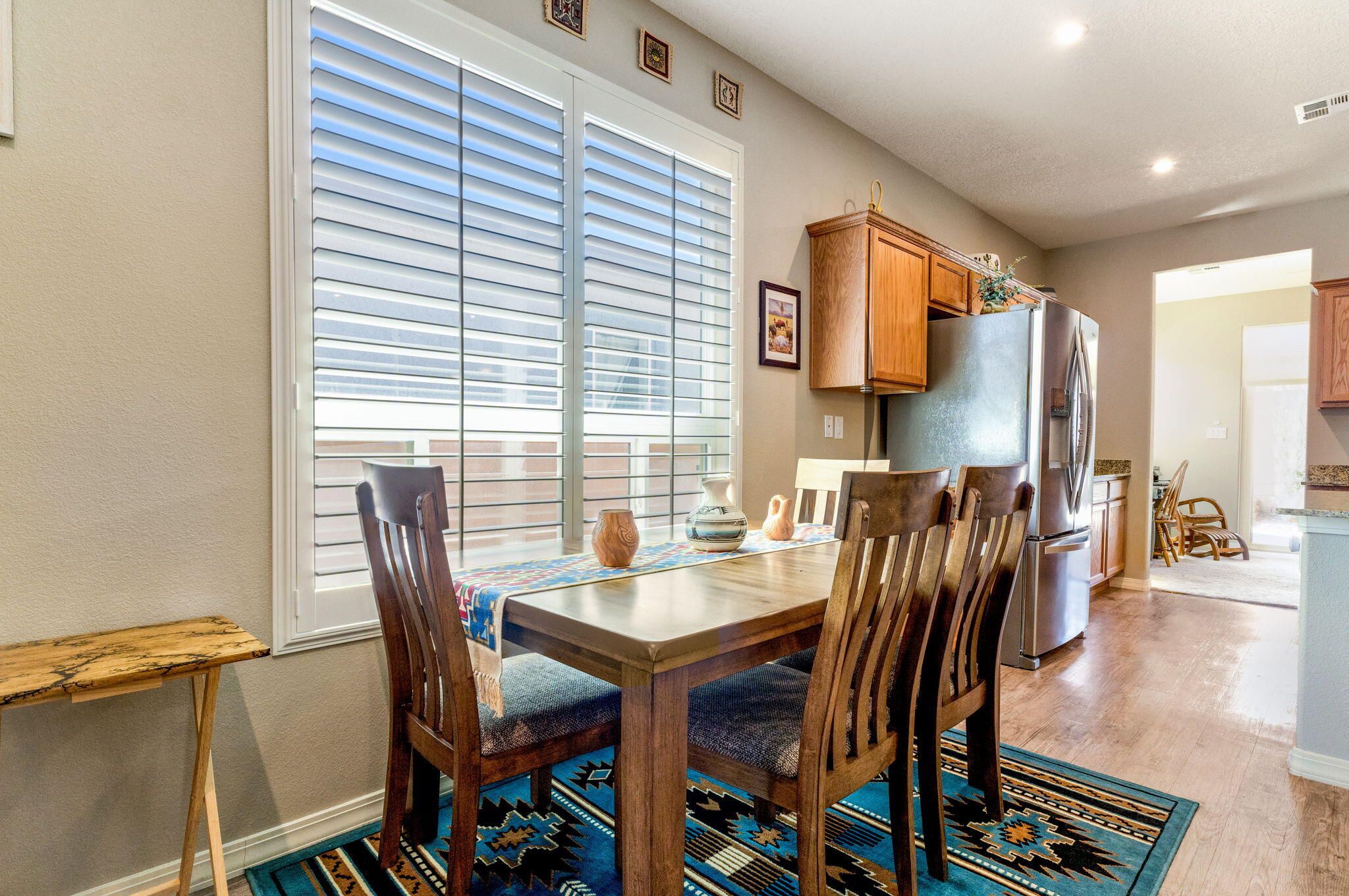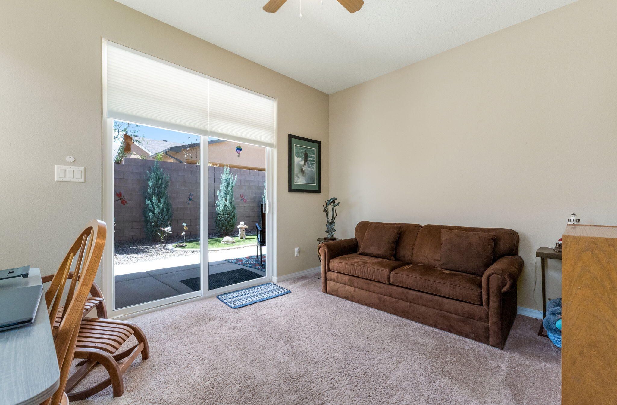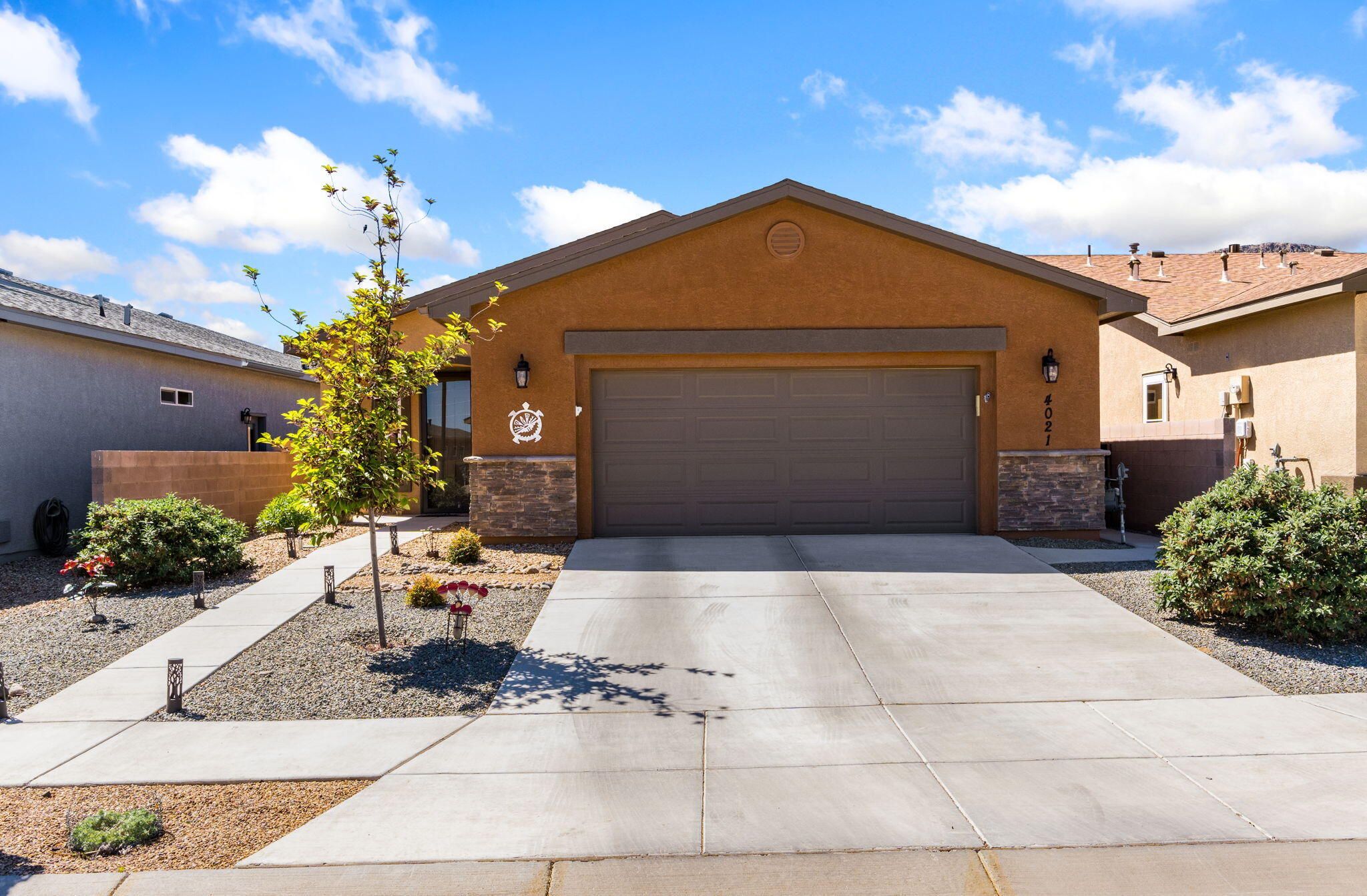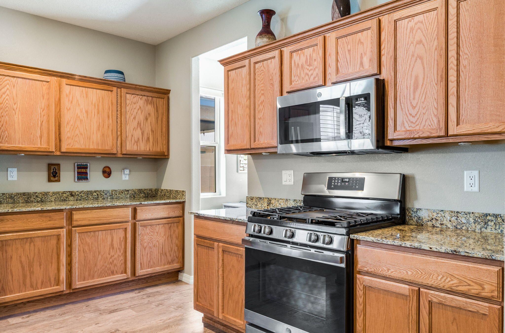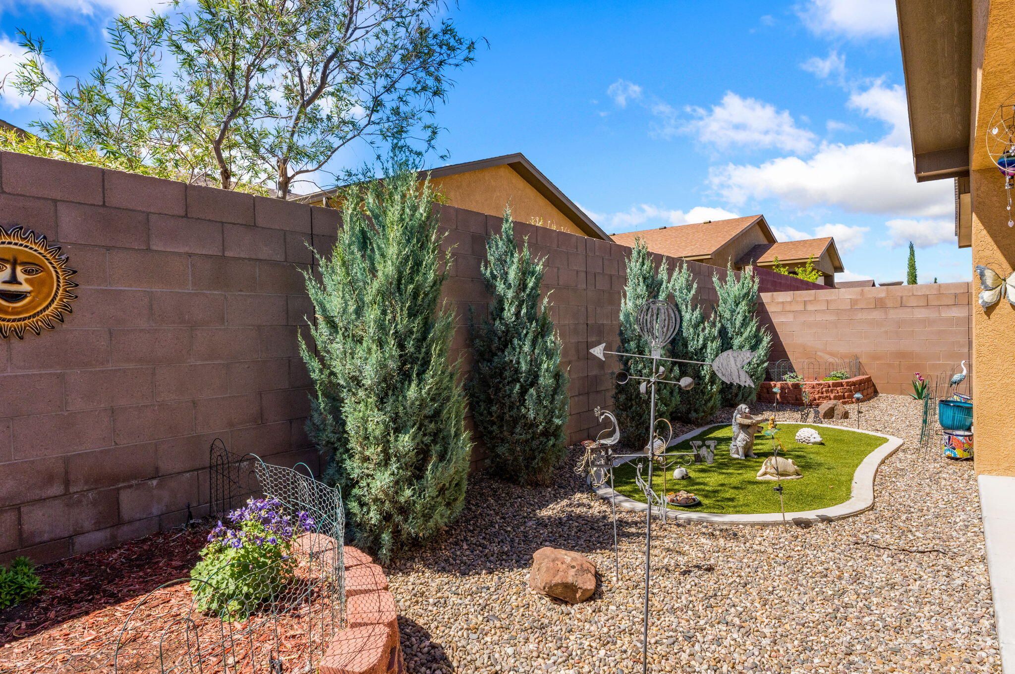 Situated in the desirable Jubilee gated community in Los Lunas, this well-maintained home features inviting curb appeal with beautifully landscaped front and back yards that offer a warm and welcoming outdoor space, paired with a layout designed for comfortable, modern living. The open floorplan creates an easy flow between the living, dining, and kitchen spaces, complemented by recessed lighting, ceiling fans, refrigerated air, and a cozy fireplace. The kitchen features a large island, ample cabinetry, a pantry, and included appliances. The primary suite provides a relaxing retreat with an ensuite bath featuring a double sink vanity, separate shower, and a soaking tub. An oversized garage includes a thoughtfully placed laundry area for added convenience. A perfect place to call home!
