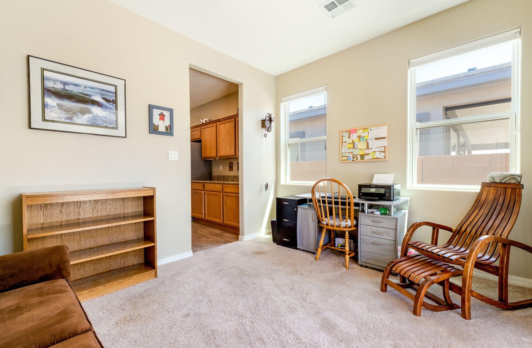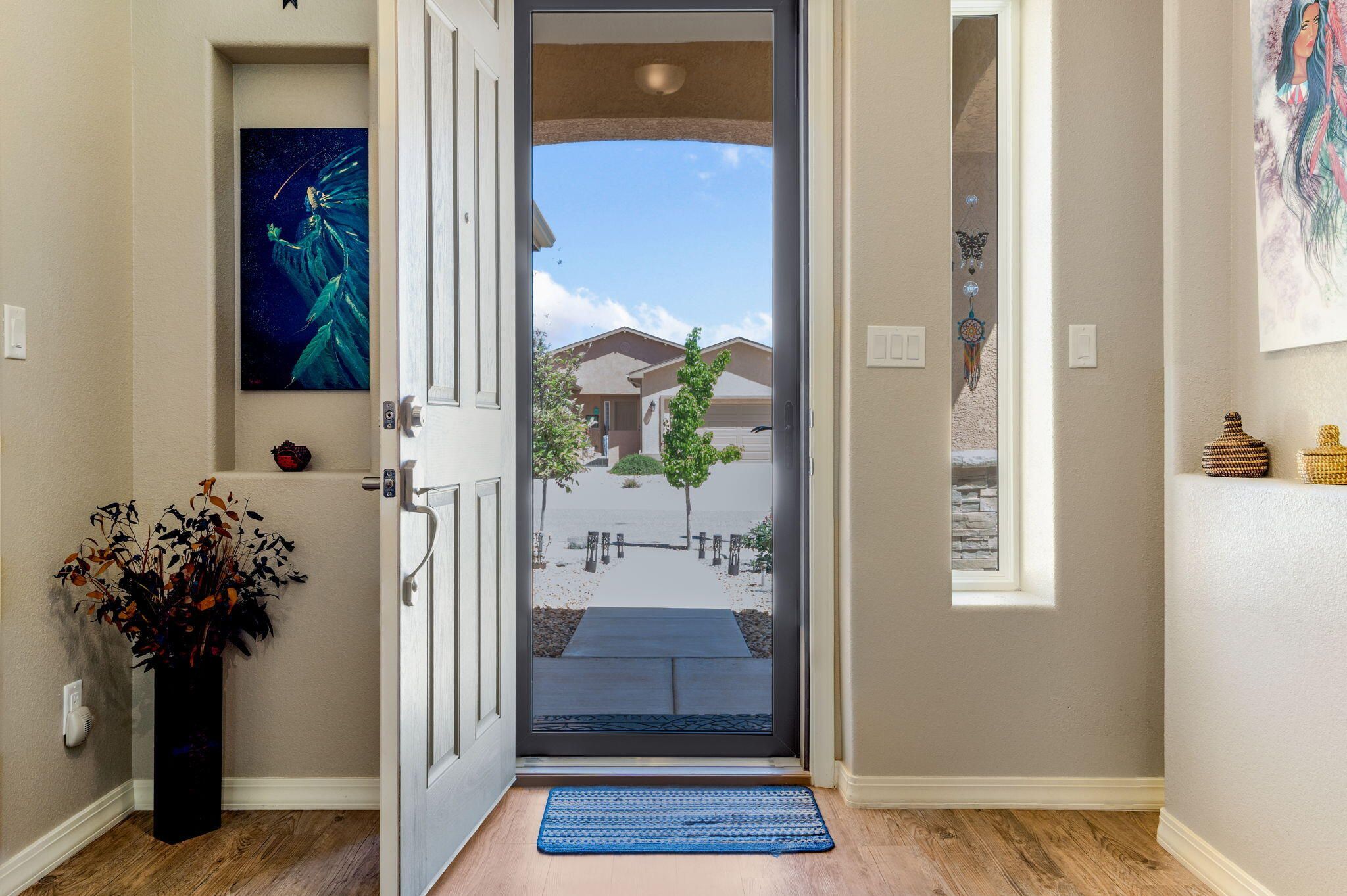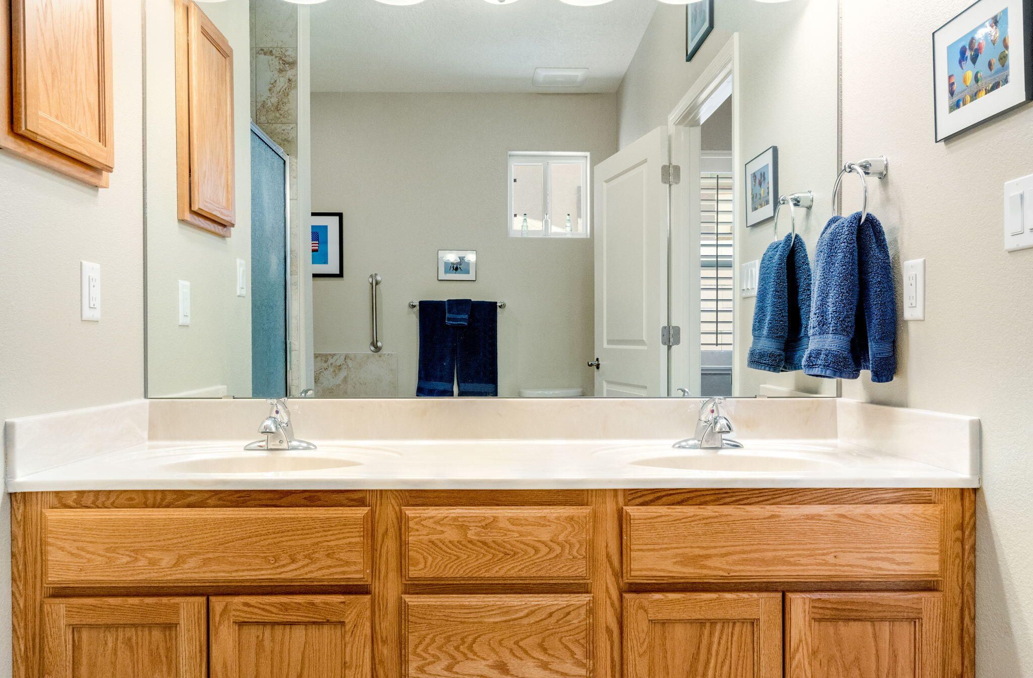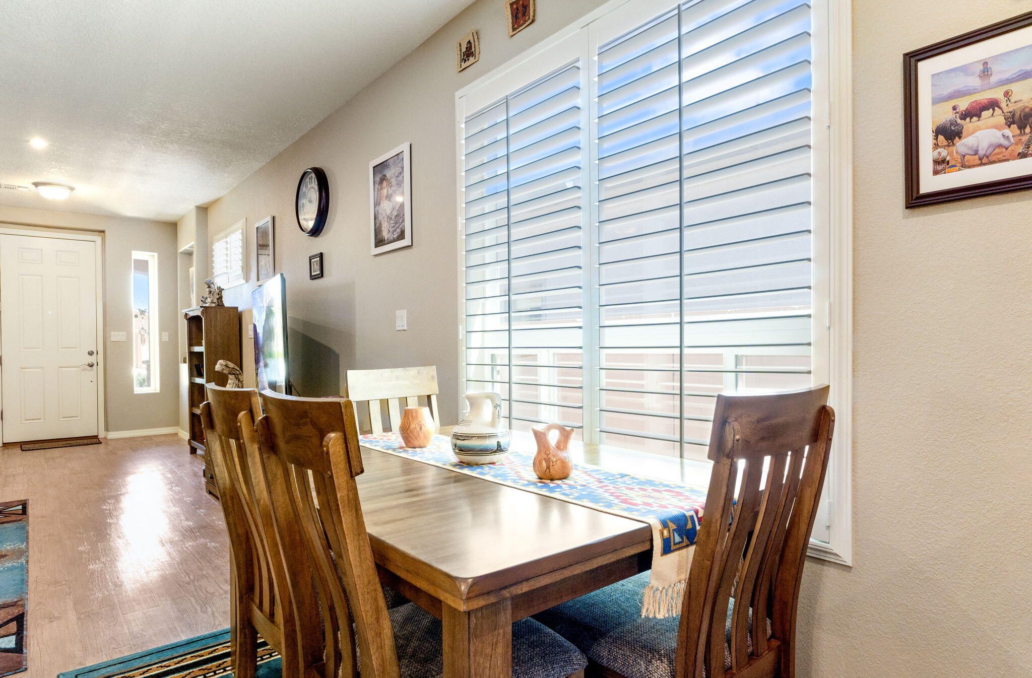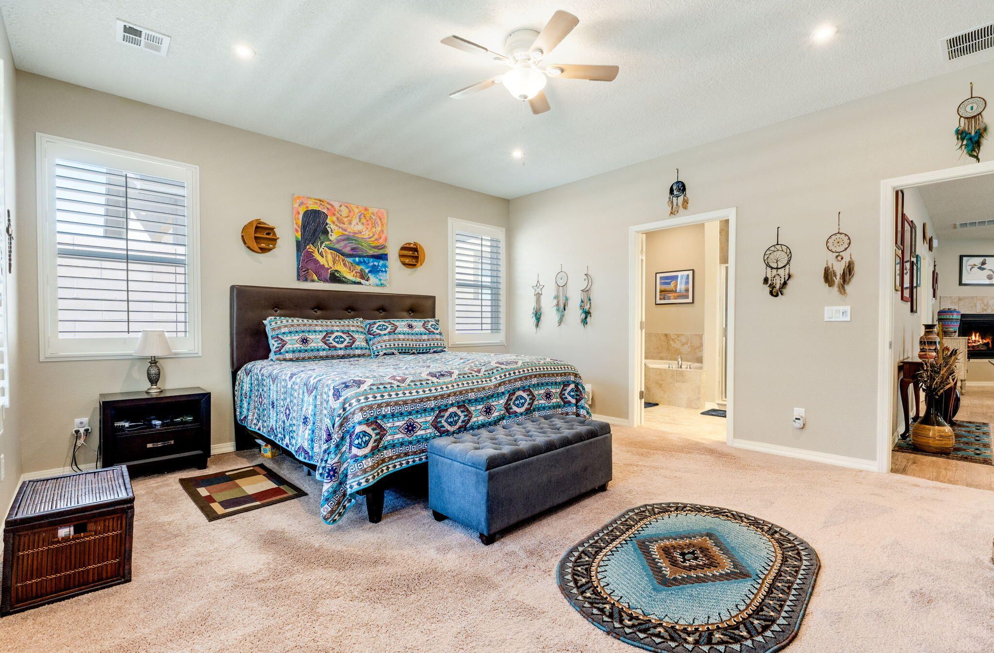 Situated in the desirable Jubilee gated community in Los Lunas, this well-maintained home features inviting curb appeal with beautifully landscaped front and back yards that offer a warm and welcoming outdoor space, paired with a layout designed for comfortable, modern living. The open floorplan creates an easy flow between the living, dining, and kitchen spaces, complemented by recessed lighting, ceiling fans, refrigerated air, and a cozy fireplace. The kitchen features a large island, ample cabinetry, a pantry, and included appliances. The primary suite provides a relaxing retreat with an ensuite bath featuring a double sink vanity, separate shower, and a soaking tub. An oversized garage includes a thoughtfully placed laundry area for added convenience. A perfect place to call home!
