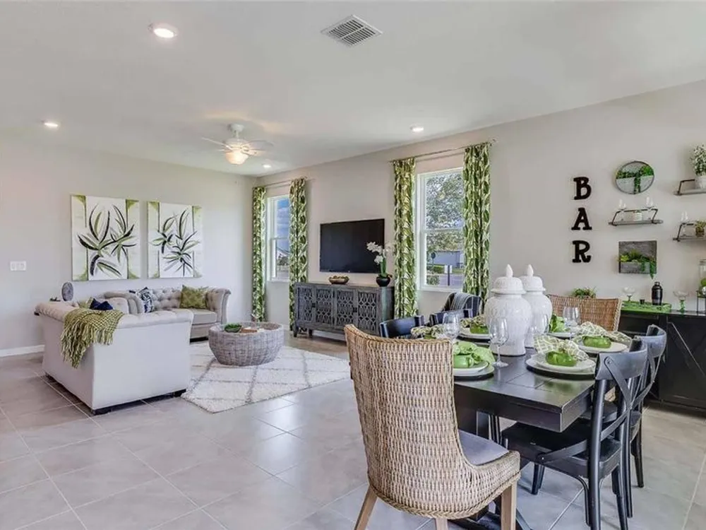 One or more photo(s) has been virtually staged. Under Construction. Discover the epitome of luxury living in this open concept home. Unleashing a sense of spaciousness, the seamless flow between living, dining and kitchen areas creates an inviting ambiance. The kitchen, a focal point of this design, boasts an island and stainless-steel electric range, microwave and built-in dishwasher, perfect for both everyday living and entertaining on the lanai. The primary bedroom features an ensuite bathroom and walk-in closet. This home is made of all concrete block construction and features our smart home package, “Home is Connected”. Pictures, photographs, colors, features, and sizes are for illustration purposes only and will vary from the homes as built. Home and community information including pricing, included features, terms, availability and amenities are subject to change and prior sale at any time without notice or obligation. CRC057592.