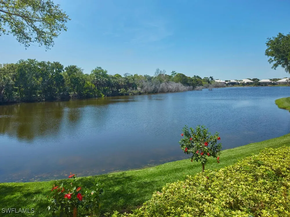 Welcome to this oh-so-charming lakeside home in the coveted community of Whiskey Pointe in Bonita Bay! There is everything to love about this home starting with its location within the community. Whiskey Pointe is very close to the South entrance of Bonita Bay, making the Promenade Shops and restaurants extremely accessible! You will fall in love with this home as everything about it is perfect! Enjoy true waterside living as this home enjoys one of the best lake views in all of Bonita Bay! Relax on one of two large lanai spaces or in the dining area, all with stunning lake views. From morning until night, you will feel like you are placed in the middle of the most beautiful nature preserve in Southwest Florida! This home boasts a large/living dining room, a generous sized kitchen, TWO large bedroom suites, two full bathrooms and TWO beautiful enclosed lanai spaces that literally, sit right on the water's edge. Just steps from your front door sits the community pool, where you will enjoy breathtaking sunset views from the pool deck. The well-maintained grounds offer lush landscaping and plenty of green spaces to enjoy the beautiful year-round weather. The carport and storage area are conveniently located just across from the entryway. Bonita Bay amenities include a private beach club, kayaks, canoes, pickle ball, tennis, several community parks/public spaces, 12+ miles of walking/biking paths and a full service marina/restaurant! There are FIVE golf courses, several restaurants, a state of the art fitness center, tennis and so much more available with club membership (additional fees)! Bonita Bay is close to ALL that SWFL has to offer - world class dining/shopping, beaches, nature preserves, the burgeoning downtown Bonita Springs, downtown Naples and so much more! A very SHORT ten minute drive to RSW International Airport! Whether you are searching for your winter retreat or a permanent residence, this home could very well be THE ONE!