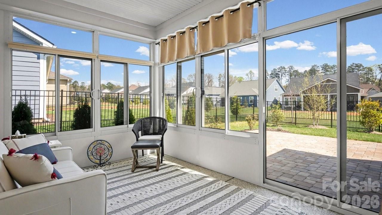 This truly custom bungalow has been thoughtfully designed with a meticulous attention to detail. Barely lived in, this home features an exceptional culinary haven with top end Jenn air appliances and anchors the main living area. SS 6 burner gas cooktop, wall oven and convection microwave, warming drawer, refrigerator, Quartz countertops, pendant lighting, light craftsman style cabinetry w/soft close drawers, tile back splash, under cabinet lighting & island serving bar. Open concept Glory offers a split 2BR, 2B plan, flex space, crown molding throughout plus an added bonus, peaceful 3 season sunroom that flows onto the paver patio and rear fenced yard with unobstructed views adding additional entertaining options. Serene master suite includes an ensuite bath with dual sink vanity, tile floor & a generous custom walk-in custom closet & tiled shower. Low maintenance wood & tile flooring throughout (no carpet). Guest bedroom features a murphy bed for convenance and adjoining bath. Large laundry room includes washer & dryer along w/additional cabinetry. Attached 2 Car garage for added storage options. Trilogy Membership includes Freedom Boat Club on Lake Norman plus award winning amenities