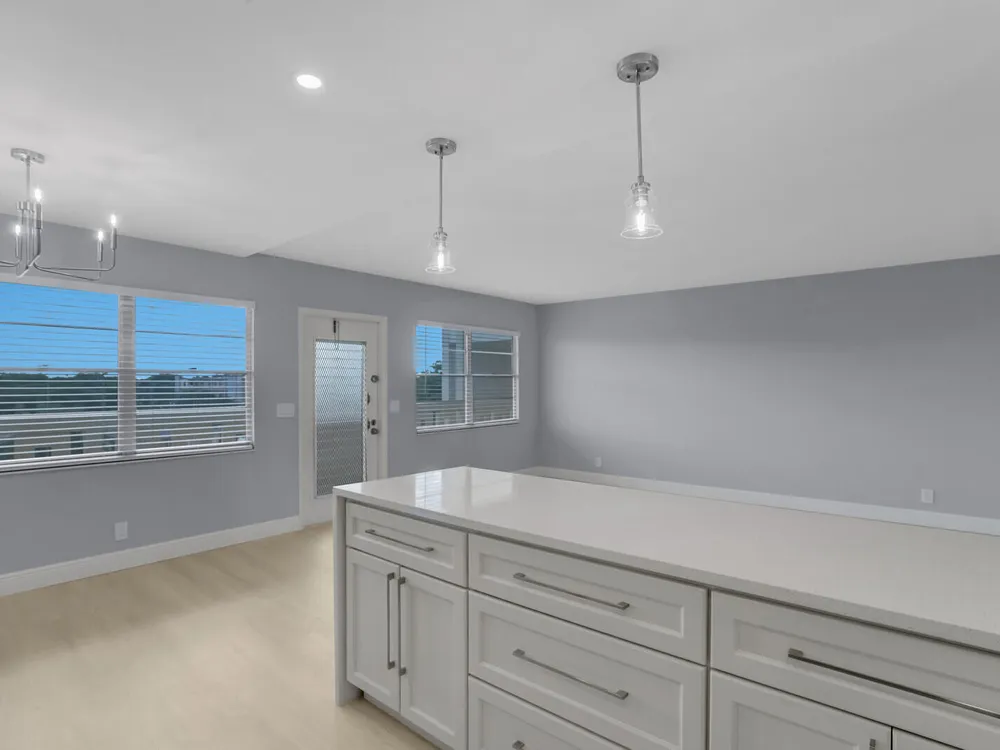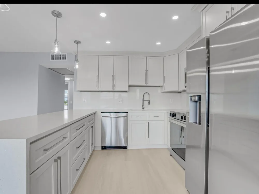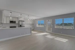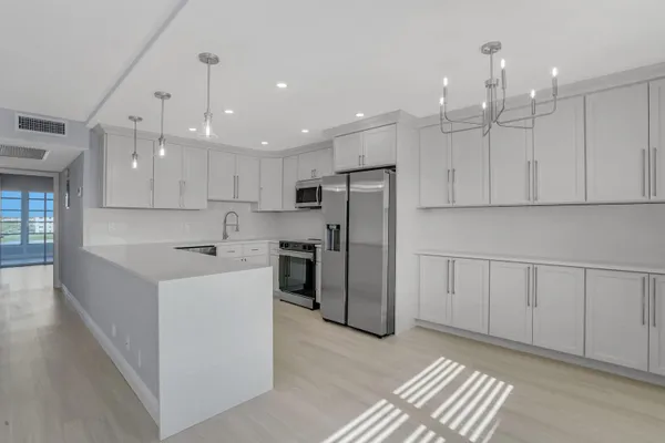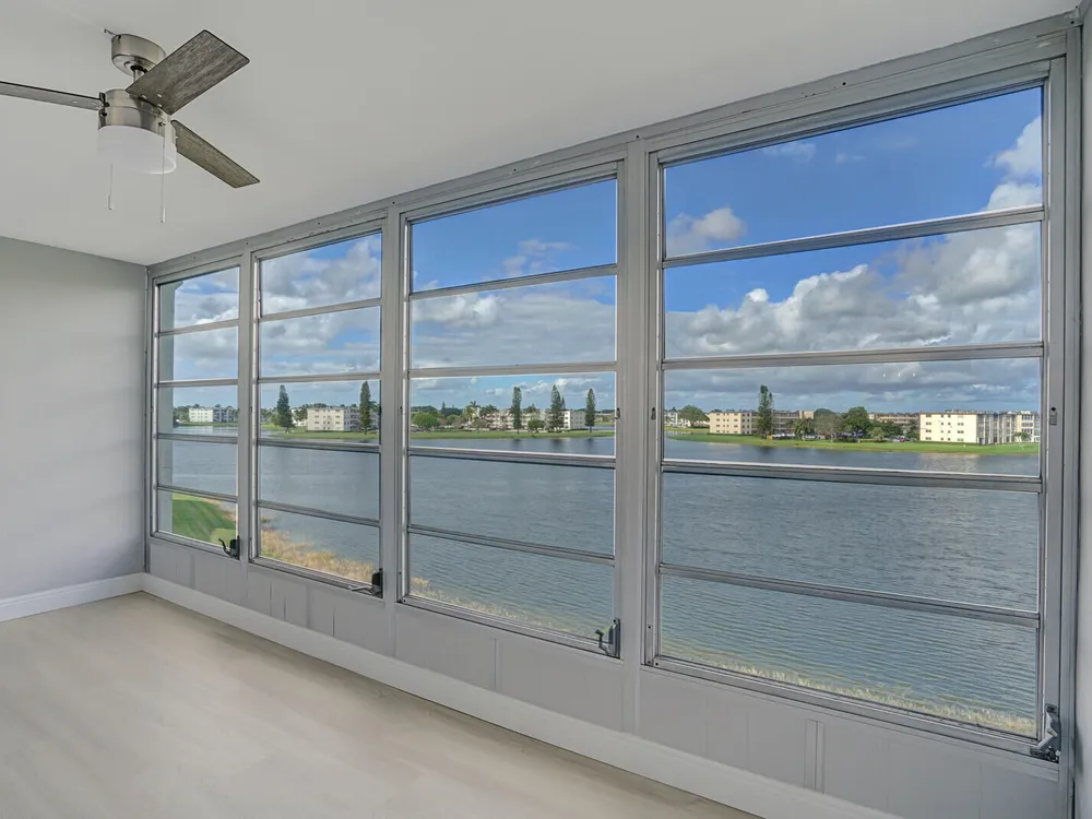 Enjoy incredible lake views from this gorgeously remodeled penthouse unit in Ainslie. Upgrades include, Luxury Vinyl flooring, expanded open concept kitchen w/ soft close cabinets, Quartz counters, Samsung appliances, double compartment SS sink, LED high hats, new fans & light fixtures. Baths have been renovated top to bottom w/ new vanities, quartz counters, new plumbing fixtures, porcelain tile walls & frameless glass shower doors. Custom shelving system installed in master closet. Amenities include internet, cable, fitness center, multiple swimming pools, movies, shows, bingo, classes, tennis, card rooms, bus transportation and close to shops and restaurant. Superb workmanship with breathtaking view. Must see!
