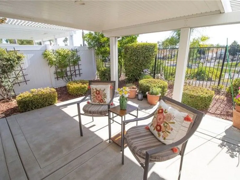 This lovely, well maintained home is one of The Colony's most desirable, sought-after floor plans, featuring a large master ensuite that opens up onto a spacious patio with lovely, private greenbelt views with custom alumawood patio cover. This spacious 2 bedroom, 2 bath home has both a formal living room, as well as a large family room with a cozy fireplace and open to the kitchen with an inviting breakfast area as well as a breakfast bar. The upgraded kitchen features stainless steel appliances, quartz countertops and custom cabinetry and adjacent laundry room. With upgraded ceramic wood plank flooring and more than ample window space, lending to a light, bright and spacious feel throughout the home. With a relaxing, resort style setting, The Colony is one of Southern California's premiere gated senior communities for ages 55 plus, featuring a beautiful, well appointed clubhouse with year-round pool, 2 spas, lighted pickleball, paddle and tennis courts. There's also a gym, a library, ping pong, and activities galore! The wine club, being one of the most popular, features wine tours and opportunities to meet your neighbors while relaxing in Temucula's world class wineries that dot the hillside throughout Temecula's picturesque landscape. This home won't last! It's one of the best available in The Colony right now. Your next adventure awaits you, and you're sure to find a friendly and welcoming atmosphere here in The Colony.