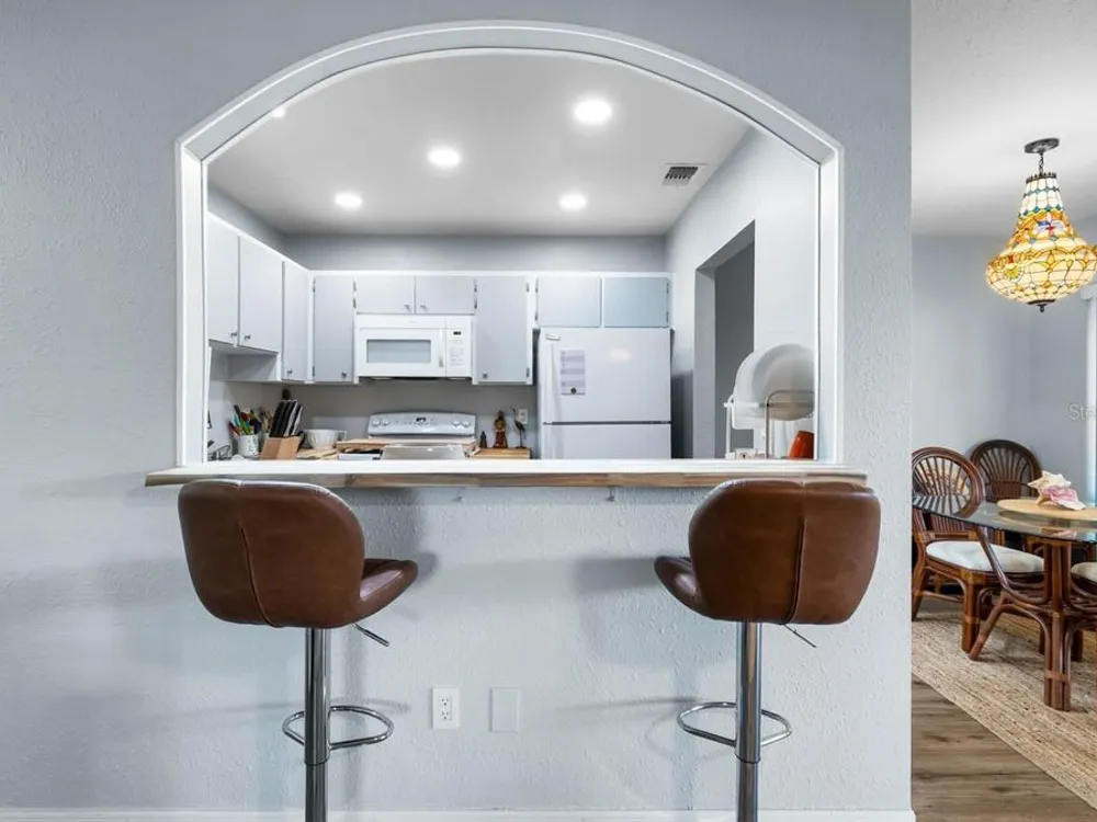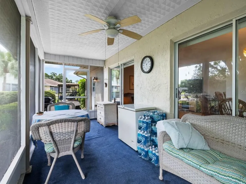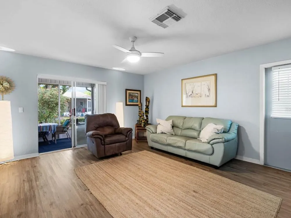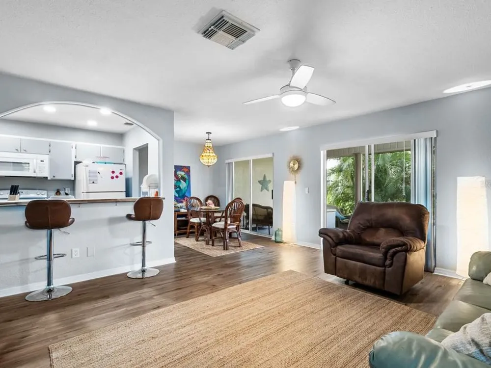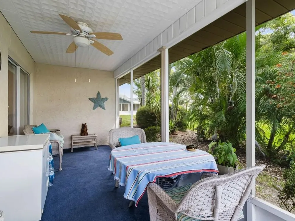 ****MOTIVATED SELLER, PRICE IMPROVEMENT**** Bring your buyers to this turnkey 2-Bedroom, 2-Bathroom Home in Kings Point. Nestled in a quiet cul-de-sac within the sought-after Kings Point community, this beautifully updated 2-bedroom, 2-bathroom home offers a perfect blend of modern comforts and low-maintenance living. Surrounded by privacy landscaping in the backyard, you'll enjoy the serenity and security of this active 55+ community. Step inside through a welcoming covered patio into a bright and airy great room, where natural light pours in from two sets of sliding glass doors. The open-concept space features modern coastal colors, waterproof luxury vinyl plank flooring, and ceiling fans for added comfort. The kitchen is a true highlight, offering a breakfast bar with an arched pass-through to the living area, creating a seamless flow throughout the home. Wood counters, recessed lighting, and plenty of cabinetry make this space both functional and stylish. The spacious primary suite is a true retreat, complete with a walk-in closet and an en suite bath featuring extended height cabinets and sleek quartz countertops for a touch of luxury. Enjoy the outdoors on the covered and screened-in patio overlooking lush conservation vegetation, providing a peaceful and private backdrop. Additionally, there's a covered carport just steps from the front door and convenient golf cart parking behind the home—ideal for exploring the vibrant Kings Point community, where everything is just a short ride away. Home is sold furnished and golf cart can be included. The all-inclusive condo fee covers use of amenities, security, exterior maintenance, grounds maintenance, cable, internet and water. Located in the gated community of King's Point, a maintenance free community, with several state of the art facilities including swimming pools, tennis and pickleball courts, art and multipurpose rooms, fitness centers, library, cafes, sports pub, demonstration kitchen, and over 200 community clubs and activities including arts and technology. Kings Point has it all and is in Sun City Center where you can access shopping, restaurants, banks, churches and more with your golf cart. Located just off I-75, it's a convenient drive to famous gulf beaches in Sarasota or St Pete, 3 different airports, downtown Tampa and the port for cruises, concert venues and 3 major league sports teams. This turnkey home is ready for you to move in and start enjoying the active lifestyle that Kings Point and Sun City Center offers