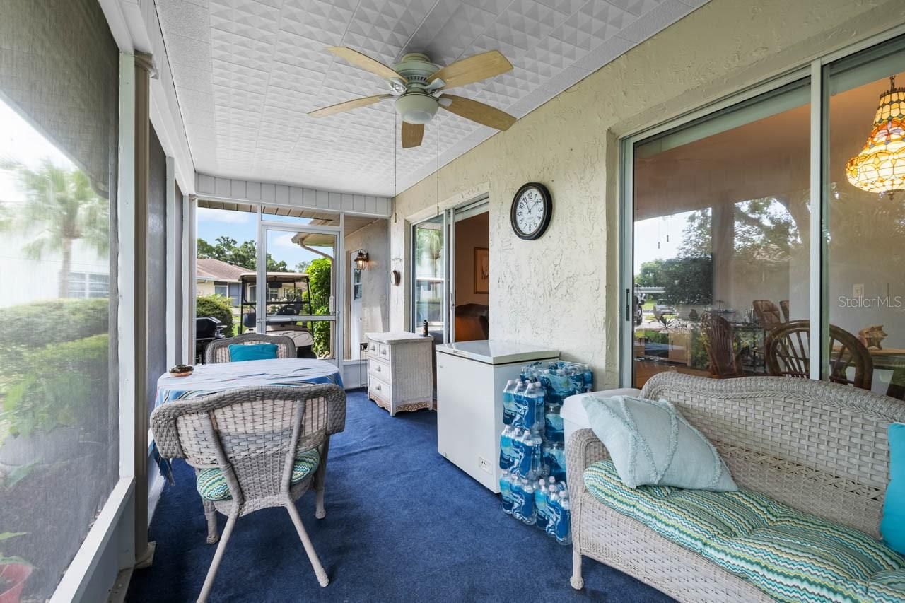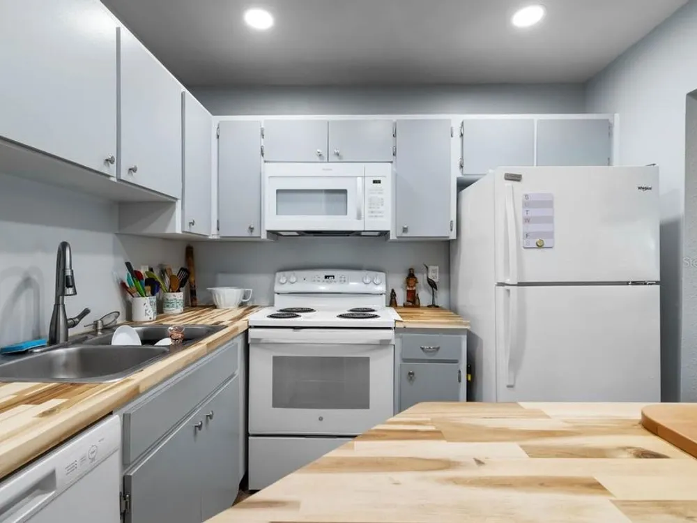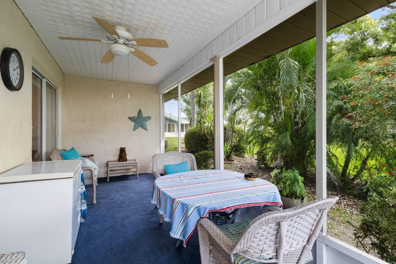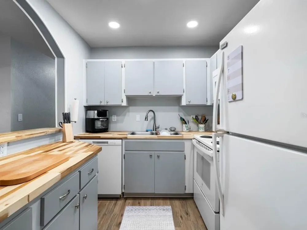 ****MOTIVATED SELLER, PRICE IMPROVEMENT**** Bring your buyers to this turnkey 2-Bedroom, 2-Bathroom Home in Kings Point. Nestled in a quiet cul-de-sac within the sought-after Kings Point community, this beautifully updated 2-bedroom, 2-bathroom home offers a perfect blend of modern comforts and low-maintenance living. Surrounded by privacy landscaping in the backyard, you'll enjoy the serenity and security of this active 55+ community. Step inside through a welcoming covered patio into a bright and airy great room, where natural light pours in from two sets of sliding glass doors. The open-concept space features modern coastal colors, waterproof luxury vinyl plank flooring, and ceiling fans for added comfort. The kitchen is a true highlight, offering a breakfast bar with an arched pass-through to the living area, creating a seamless flow throughout the home. Wood counters, recessed lighting, and plenty of cabinetry make this space both functional and stylish. The spacious primary suite is a true retreat, complete with a walk-in closet and an en suite bath featuring extended height cabinets and sleek quartz countertops for a touch of luxury. Enjoy the outdoors on the covered and screened-in patio overlooking lush conservation vegetation, providing a peaceful and private backdrop. Additionally, there's a covered carport just steps from the front door and convenient golf cart parking behind the home—ideal for exploring the vibrant Kings Point community, where everything is just a short ride away. Home is sold furnished and golf cart can be included. The all-inclusive condo fee covers use of amenities, security, exterior maintenance, grounds maintenance, cable, internet and water. Located in the gated community of King's Point, a maintenance free community, with several state of the art facilities including swimming pools, tennis and pickleball courts, art and multipurpose rooms, fitness centers, library, cafes, sports pub, demonstration kitchen, and over 200 community clubs and activities including arts and technology. Kings Point has it all and is in Sun City Center where you can access shopping, restaurants, banks, churches and more with your golf cart. Located just off I-75, it's a convenient drive to famous gulf beaches in Sarasota or St Pete, 3 different airports, downtown Tampa and the port for cruises, concert venues and 3 major league sports teams. This turnkey home is ready for you to move in and start enjoying the active lifestyle that Kings Point and Sun City Center offers