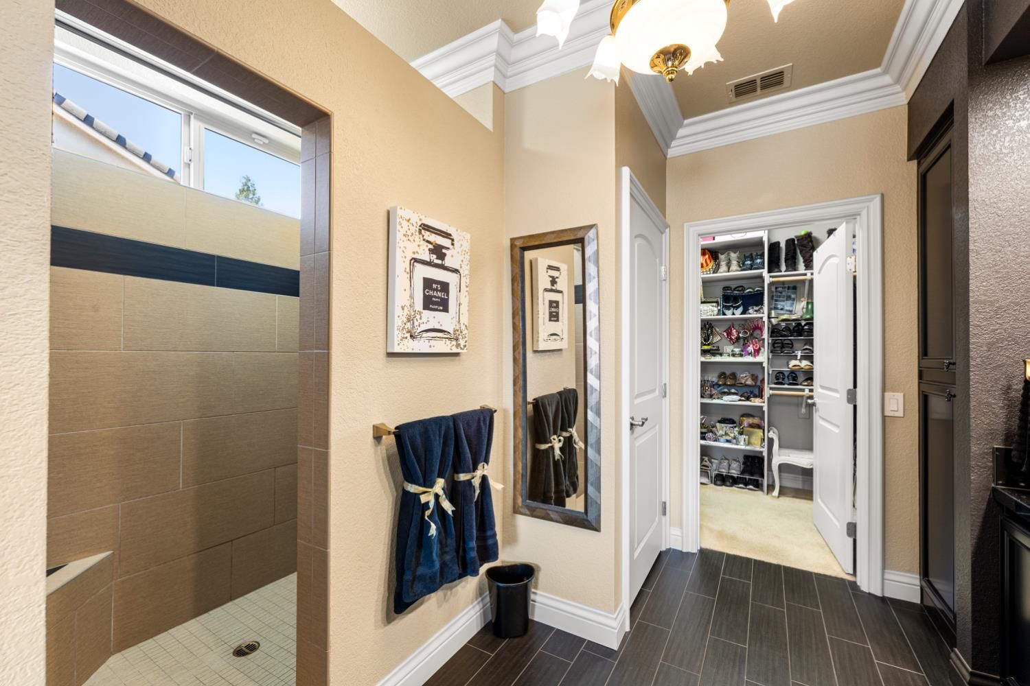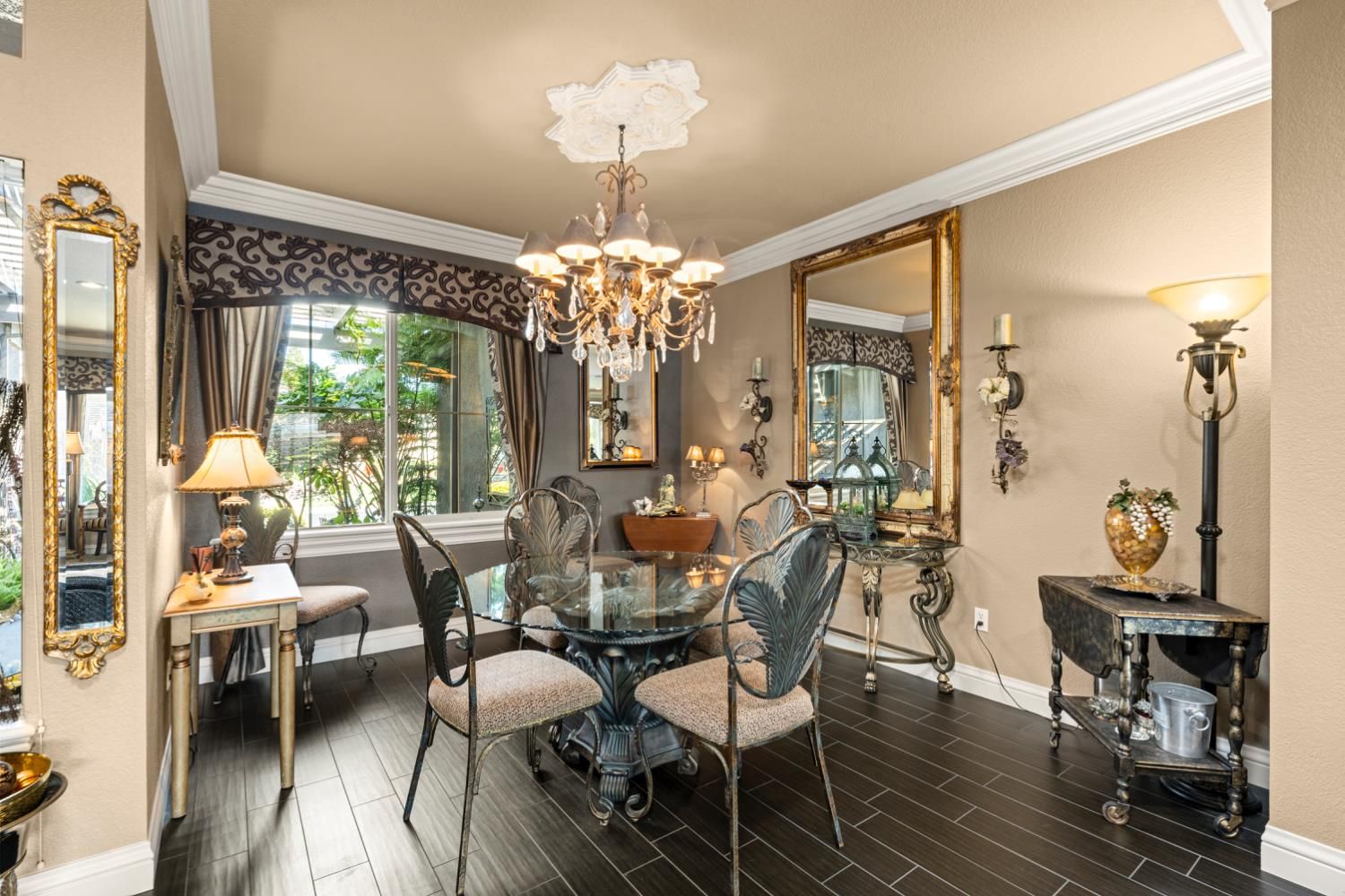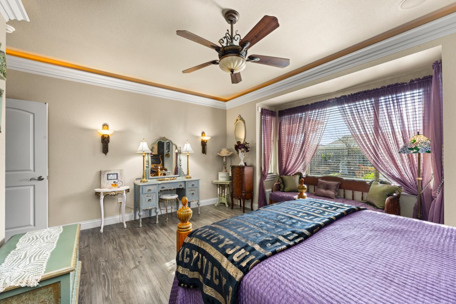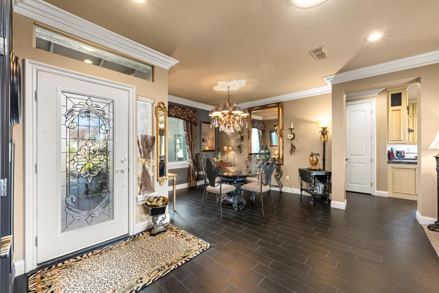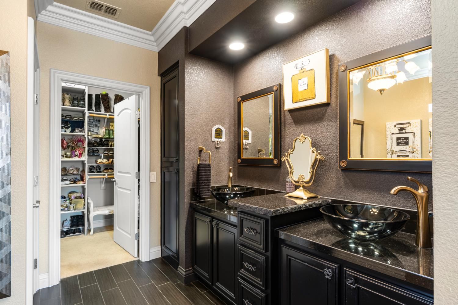 Located in a small cul-de-sac, this unique home is full of custom designed upgrades and features. From the custom cabinetry throughout the entire home, to light fixtures, to window coverings, tile plank flooring, triple crown molding, triple granite counter tops and custom designer paint in each room, this home stands out as one-of-a-kind making it a true dream home. Surround sound is featured indoors as well as the back patio area. The front, back & side gardens have been professionally landscaped with specimen trees, shrubs and flowering plants which add to the rare beauty of this very special home. An extended awning over the back patio gives shade and comfort for great outdoor entertaining. A short stroll via the walking/golfcart path to Safeway, CVS,Starbucks, eateries, and many more shops and services.