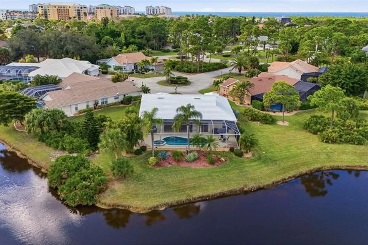 Located on a quiet cul-de-sac with stunning lake & golf course views, this beautifully maintained Bayfront model offers the true feeling of Florida living. Filled with natural light & soaring ceilings, this 3-bedroom, 2-bath pool home features 1,979 square feet of thoughtfully designed living space.The chef’s kitchen boasts stainless steel appliances, granite countertops, custom all-wood cabinetry, and a spacious pantry, making both everyday living and entertaining a pleasure. The dining area includes built-in custom cabinetry and a wine rack, adding both style and functionality. Sliding glass doors create a seamless connection between indoor and outdoor living. Enjoy your morning coffee from the pool deck while taking in serene lake and golf course views. The expansive pool & spa deck offers ample space for sunbathing, dining, and relaxing. The primary suite features vaulted ceilings, a walk-in closet, an ensuite bath with a garden tub and separate shower, and access to an attached office room. The guest bedroom offers large windows and abundant natural light, while the third bedroom can easily function as a den and includes a built-in closet. Additional highlights include a new roof (2025), newer A/C, motorized storm shutters on the lanai, painted & sealed pool deck, hurricane screens, & front-door shutter protection for added peace of mind. Turnkey and/or furnished options are negotiable. Conveniently located in Burnt Store Marina, this home is within walking or biking distance to the marina, Cass Cay Waterfront Restaurant, fitness center, and golf course. Downtown Punta Gorda, and Punta Gorda & Fort Myers airports are just a short drive away. Offering privacy, comfort, and spectacular views, this exceptional home is not to be missed. Schedule your private showing today.