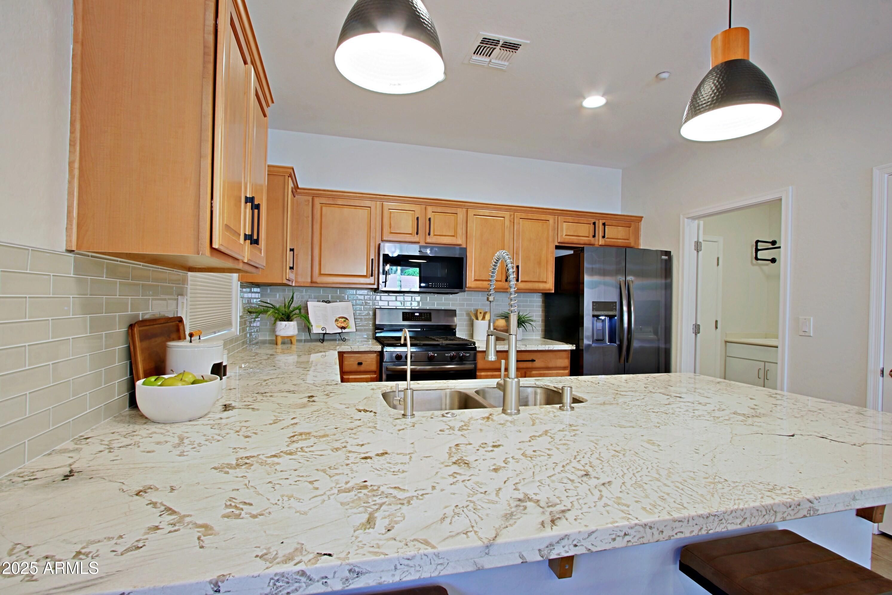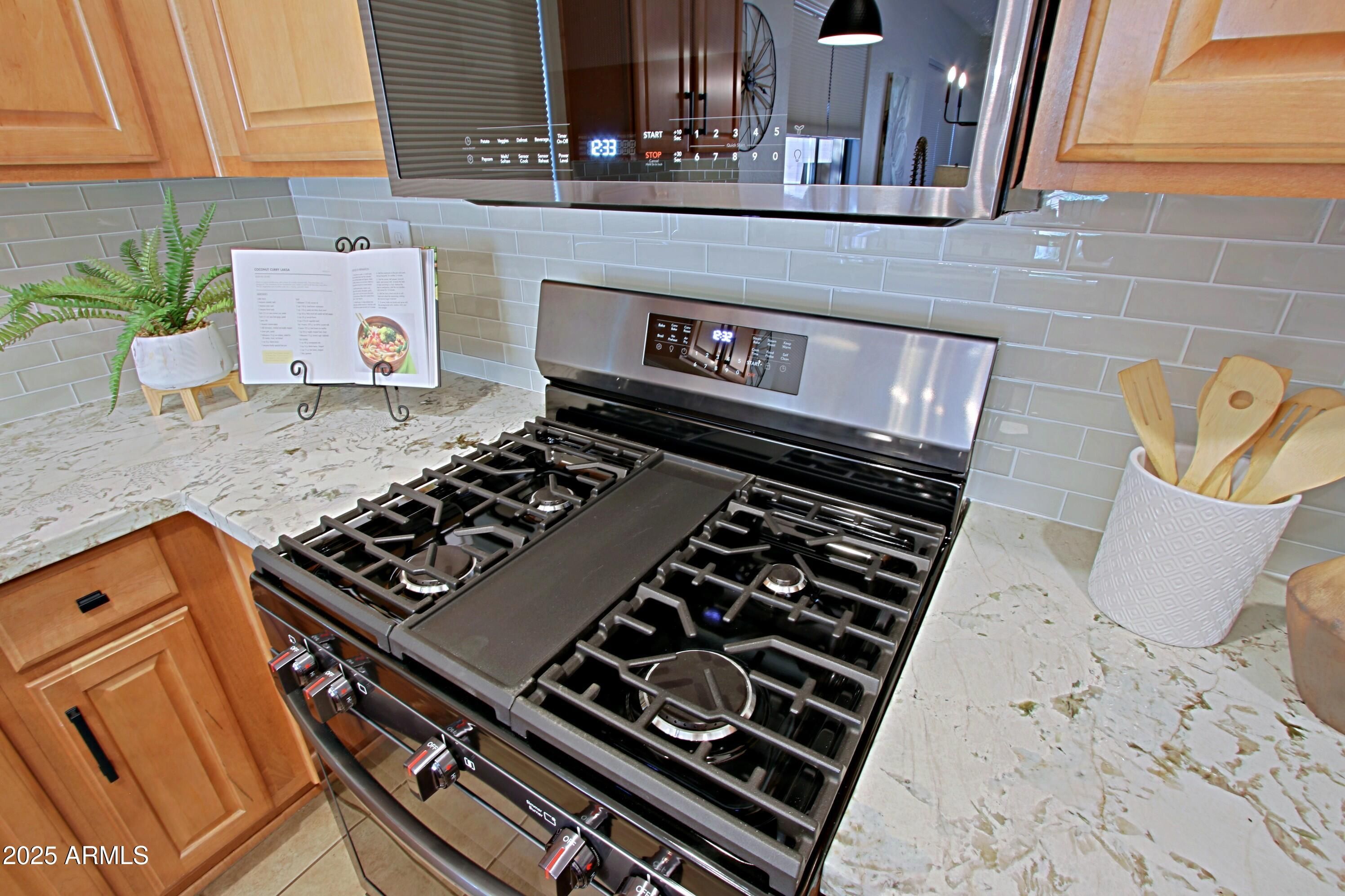 Desirable Anthem Country Club, guarded gated golf course community. Lifestyle you will enjoy at the best. Two championship golf courses Persimmons & Ironwood, fitness/pool/spa/restaurants, tennis, pickleball... Parkside amenities duck pond, waterfalls, Veterans memorial... This home pride of ownership, renovated and move-in ready, great second home with low maintenance. Single story 2 bedrooms plus den, kitchen open to great room, 2 car garage, private cull-de-sac lot. Home feature following upgraded: maple cabinets, granite and Quartz counter tops, new black stainless steel appliances including fridge. Washer and dryer conveys. New exterior and interior paint, HVAC replaced in 2024 Trane, water heater 2021, Nest thermostat, ceiling fans, windows blinds, recessed lighting, garage epoxy.. New carpet in bedrooms, new plumbing fixtures and light fixtures. Private cull-de-sac lot with extended pavers patio. Home warranty included!