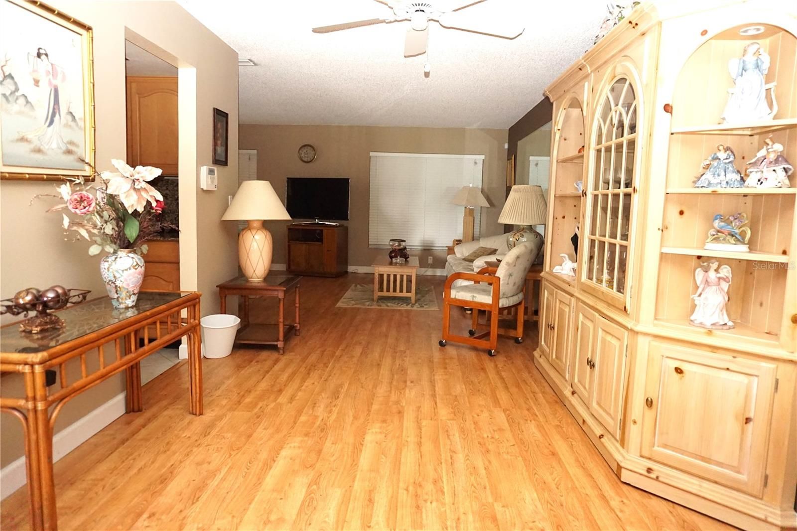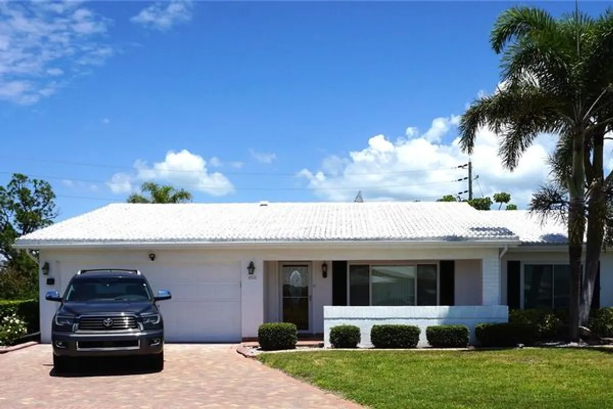 Welcome to this highly sought-after 2-car garage home offering stunning water and golf course views in a vibrant 55+ community. This beautifully maintained Gormay model (1776 sf) is truly move-in ready, showcasing pride of ownership throughout. The home features 2 spacious bedrooms, 2 full bathrooms, and a desirable open layout designed for comfortable living. Enjoy your morning coffee on the partially covered front porch, or unwind in the covered rear patio overlooking serene water views and local wildlife—perfect for relaxing or entertaining. Residents benefit from a nearly maintenance-free lifestyle, with a comprehensive monthly HOA that includes water, sewer, trash removal, exterior painting, internet, cable with DVR, lawn care, and reclaimed water irrigation. This pet-friendly neighborhood allows up to two pets, making it an ideal choice for animal lovers. The community is centered around an 18-hole public golf course and offers an array of amenities, including a heated pool, shuffleboard courts, and an active clubhouse filled with social events and activities. Nearby is Freedom Lake that provides walking trails, a dog park, picnic areas, and more opportunities to enjoy the outdoors. Conveniently located with easy access to US-19, this home is just minutes from Gulf beaches, airports, shopping, dining, medical facilities, and major Bay Area bridges. Best of all, no flood insurance is required. Experience the perfect blend of comfort, convenience, and community living in this exceptional home.