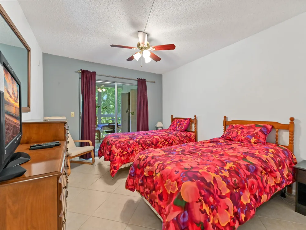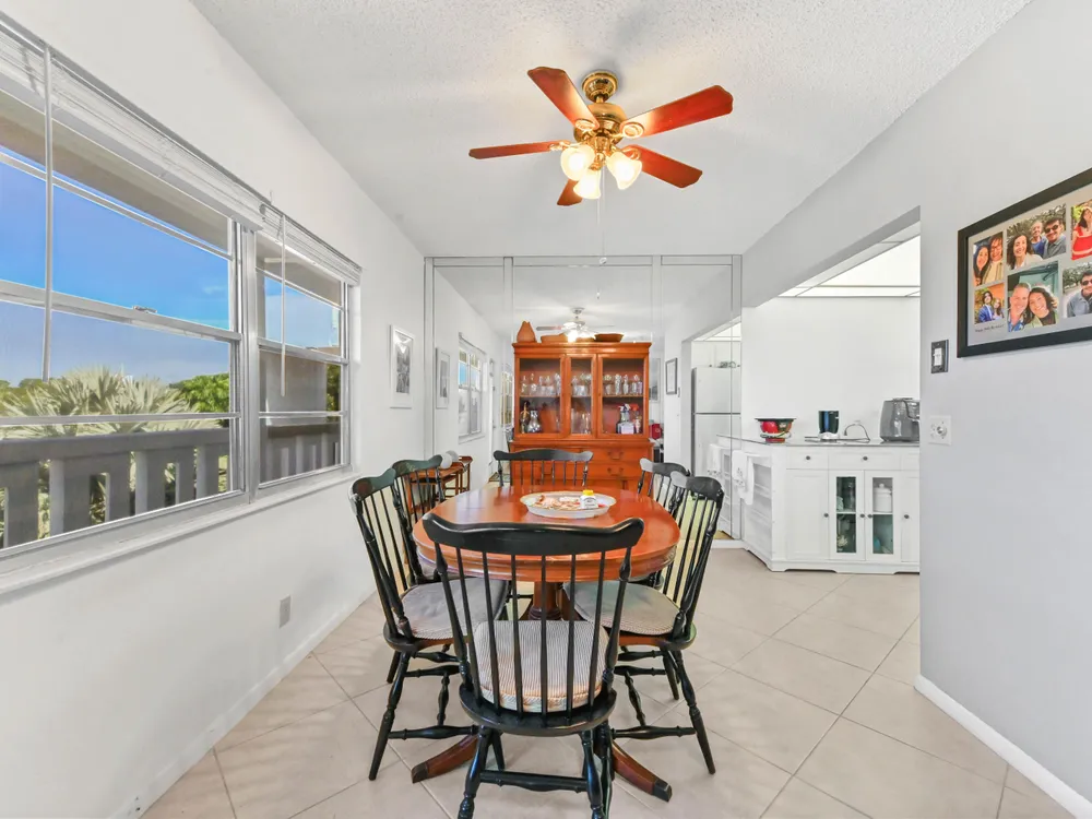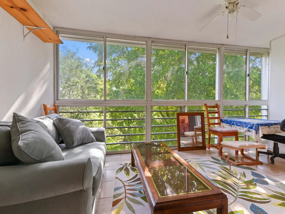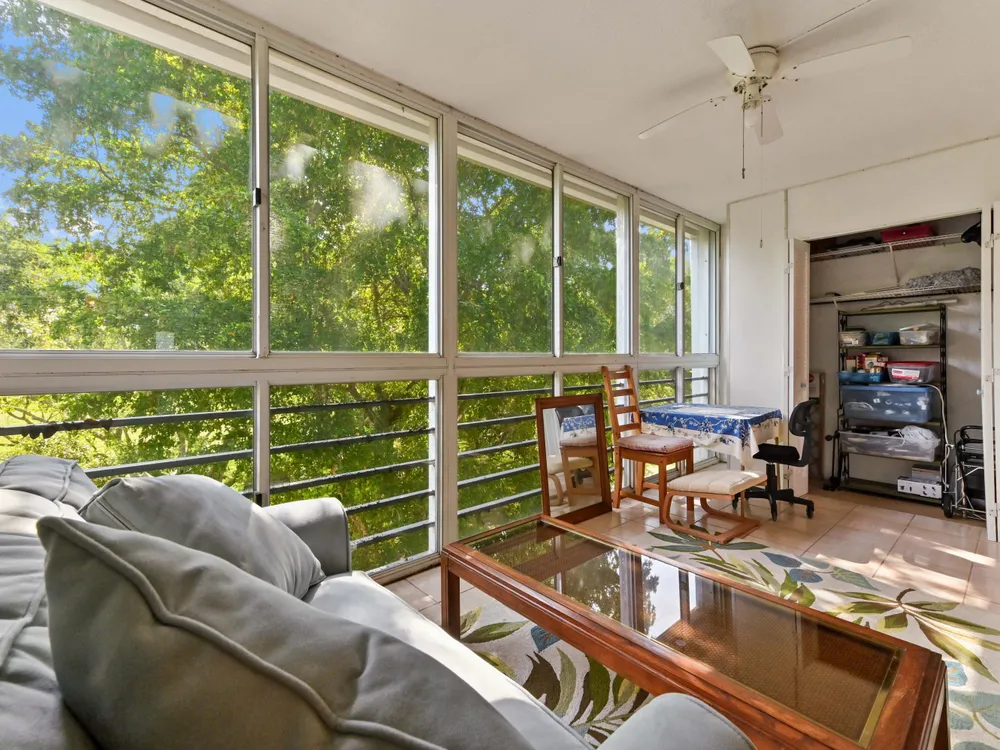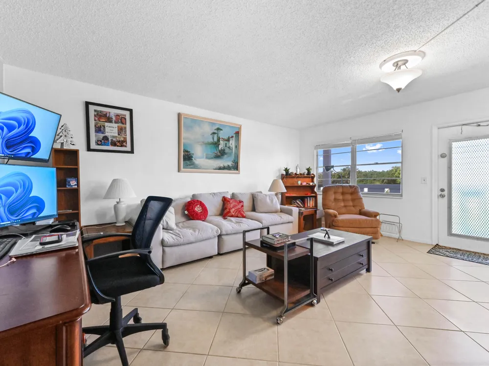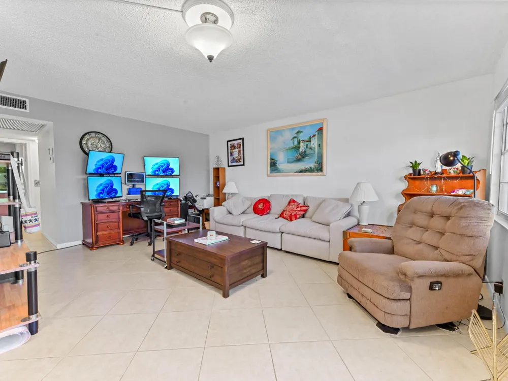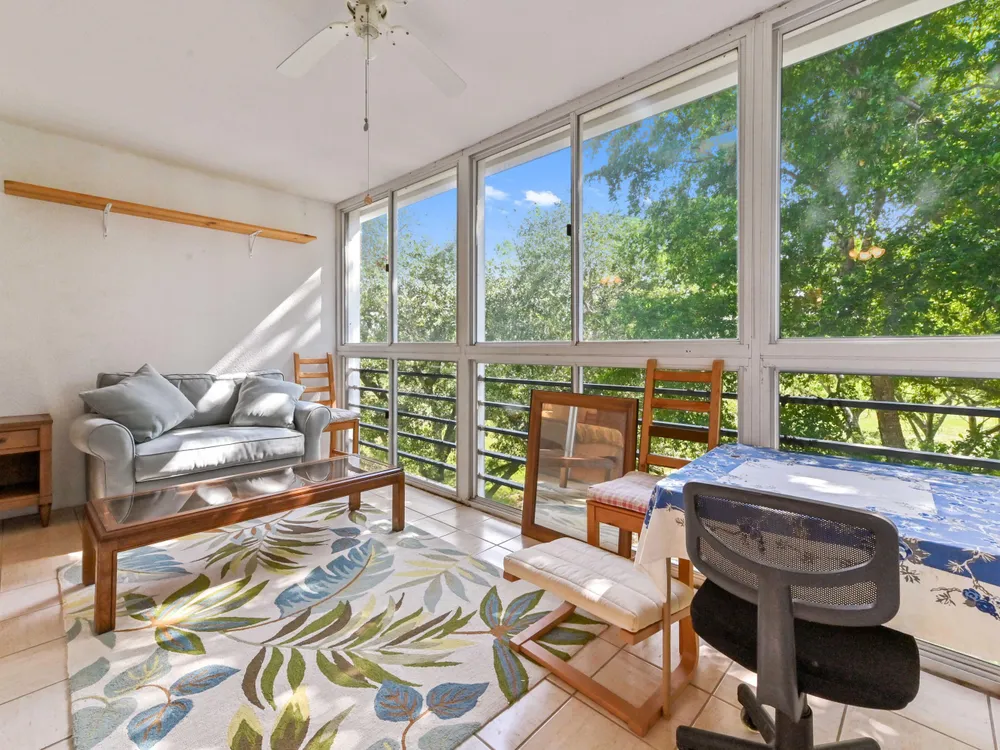 Beautiful 4th-Floor 2 Bedroom, 2 Bath Condo in Prime Location!Nestled in the heart of the Century Village East, this spacious condo offers peace and quiet, set away from road noise and just a short walk to the pool and clubhouse. The unit features large diagonal-set ceramic tile throughout, creating a bright and open feel from front to back.Offered fully furnished and move-in ready, the home includes a guest bathroom with a walk-in shower and glass doors. Step onto the enclosed patio with sliding glass windows and enjoy your morning coffee while taking in the tranquil garden views. A convenient community picnic area is located just outside, perfect for relaxing or entertaining guests.