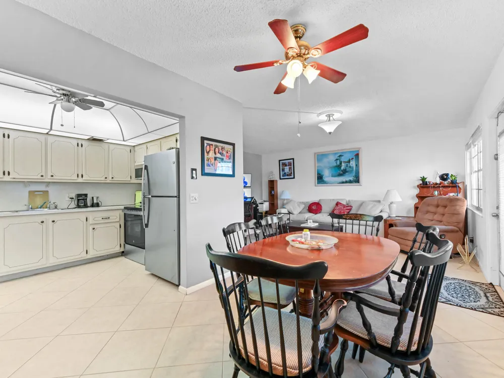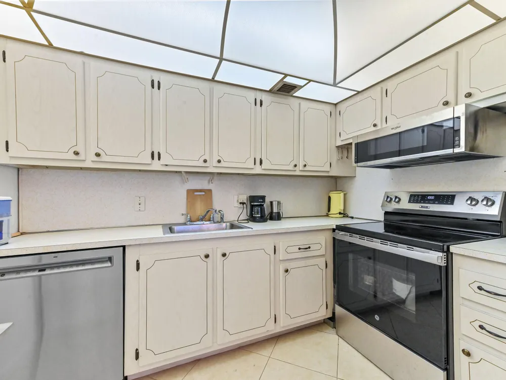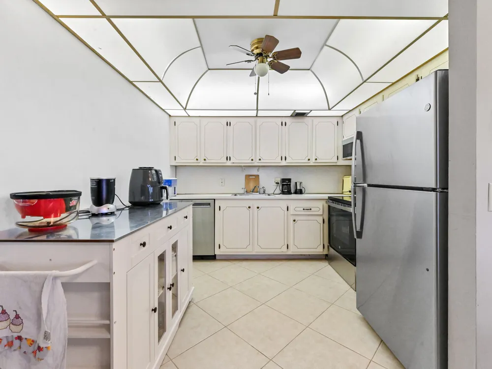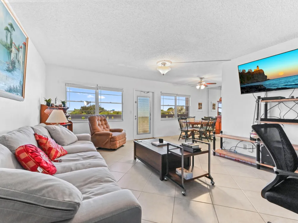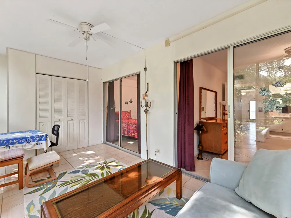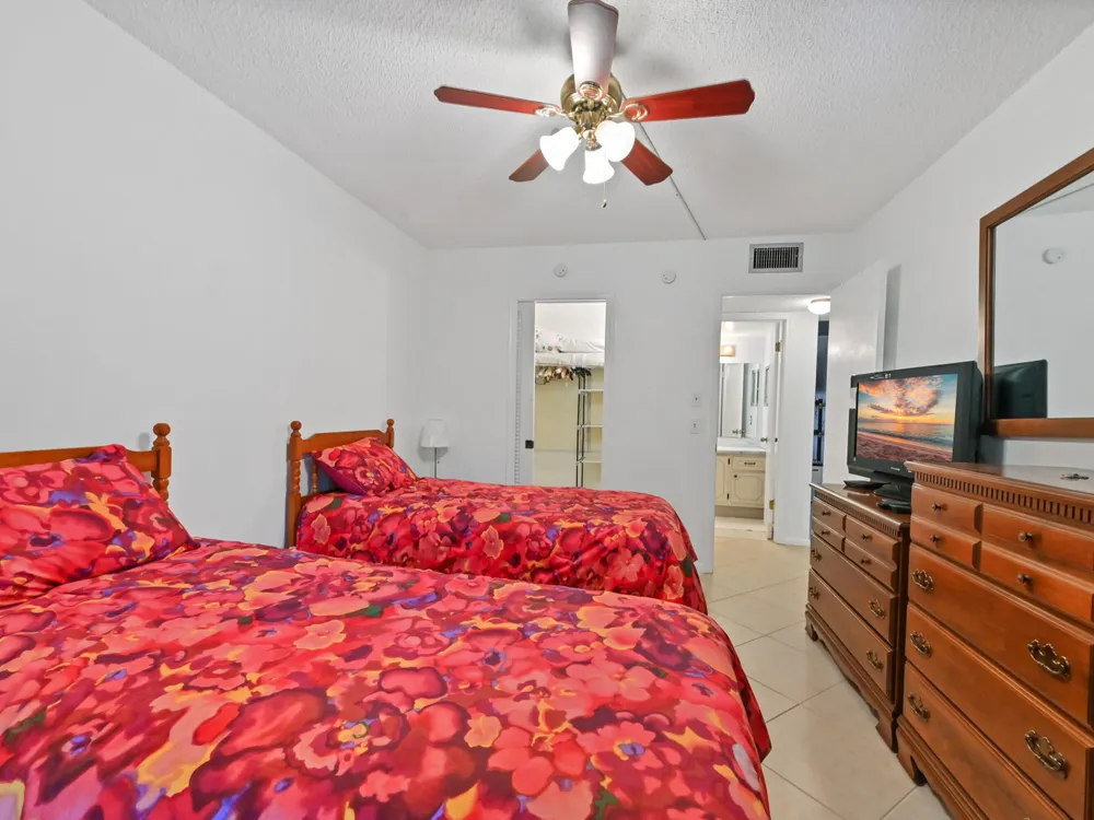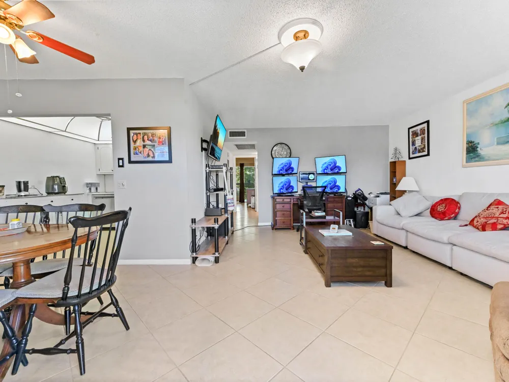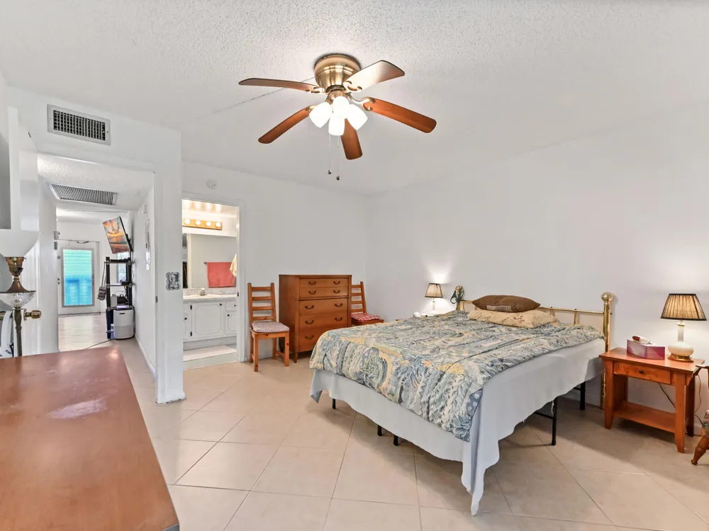 Beautiful 4th-Floor 2 Bedroom, 2 Bath Condo in Prime Location!Nestled in the heart of the Century Village East, this spacious condo offers peace and quiet, set away from road noise and just a short walk to the pool and clubhouse. The unit features large diagonal-set ceramic tile throughout, creating a bright and open feel from front to back.Offered fully furnished and move-in ready, the home includes a guest bathroom with a walk-in shower and glass doors. Step onto the enclosed patio with sliding glass windows and enjoy your morning coffee while taking in the tranquil garden views. A convenient community picnic area is located just outside, perfect for relaxing or entertaining guests.