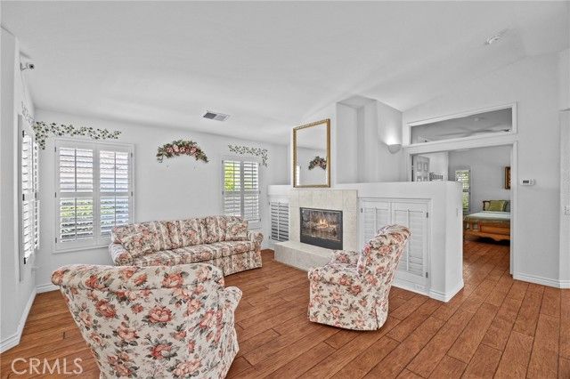 Welcome to this 3-bedroom, 2-bath home with optional office area, offering 1263 square feet of comfortable living space, ideally situated on a corner lot that backs to a peaceful greenbelt in the highly desirable Colony 55+gated community in Murrieta. This single story floor plan offers an inviting open-concept layout featuring a cozy living room fireplace, shutters and durable laminate flooring throughout. The kitchen provides generous cabinetry and counter space, perfect for both everyday meals and entertaining. The primary suite includes a walk in closet and private bath, while the additional bedrooms offer versatility for guests, and office or hobbies. Step outside to a private backyard retreat with no rear neighbors-enjoy serene greenbelt views and privacy, and premium corner lot. Residents of The Colony enjoy vibrant, resort-style amenities such as a championship 18-hole golf course, clubhouse, swimming pool and spa, tennis and pickleball courts, fitness center, and a wide range of social activities. The HOA maintains front yard landscaping and provides 24-hour guarded gate security for worry-free living. This home offers the perfect blend of comfort, privacy, and active adult living in one of Murrieta's most sought-after 55+ communities.