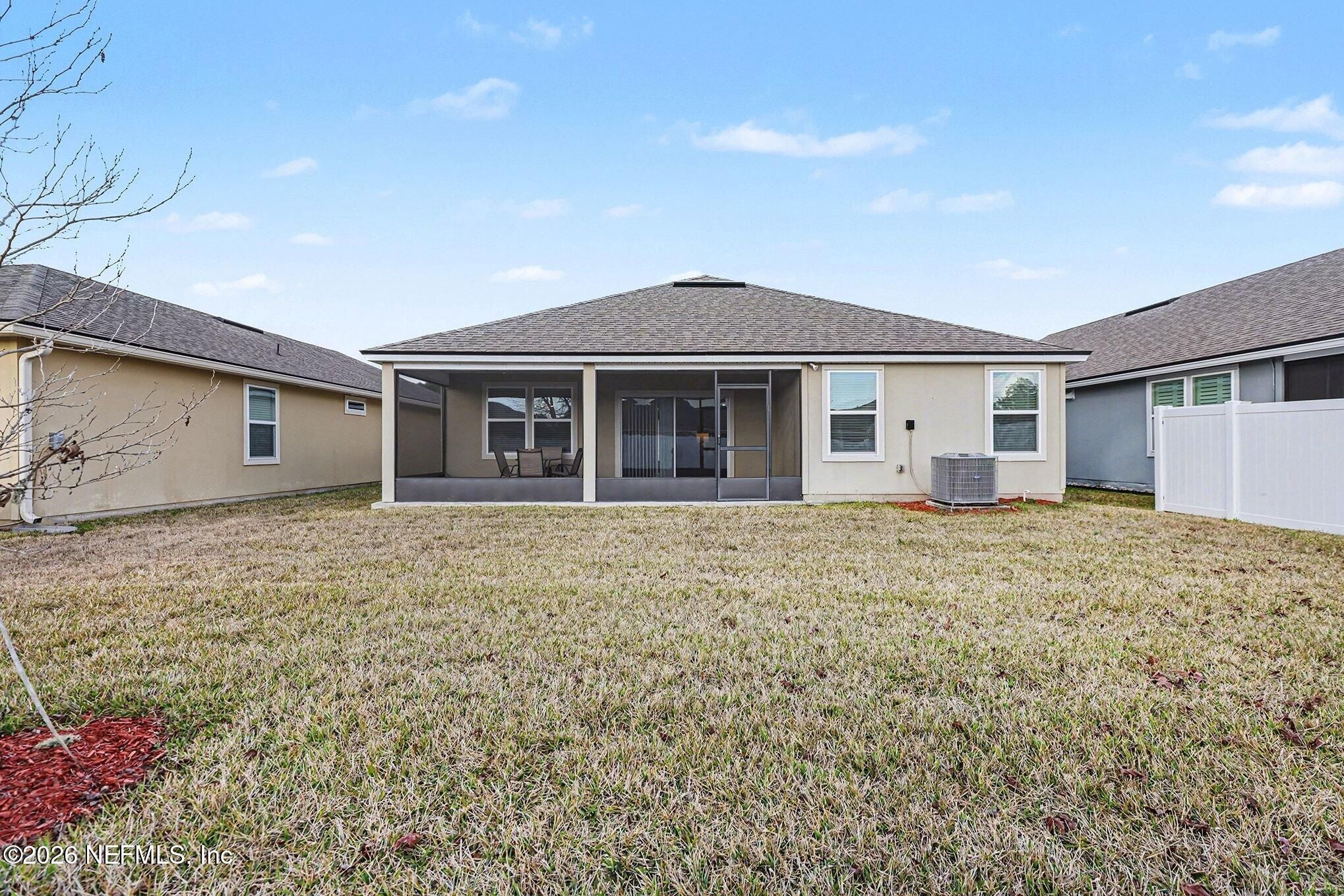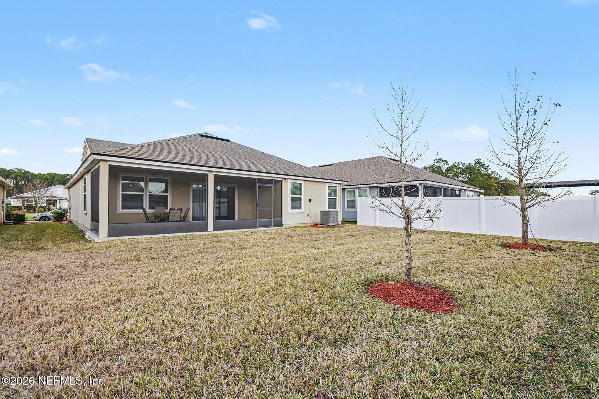 This beautifully designed 3-bed, 2-bath home in the gated 55+ community of Azalea Ridge features an open-concept layout that's perfect for modern living. Enjoy a welcoming covered front porch and a screened lanai ideal for relaxing or entertaining. The kitchen boasts a large island with breakfast bar seating, stainless steel appliances, abundant cabinetry, and generous storage. A split bedroom plan enhances privacy, with the primary suite offering a walk-in closet, dual vanities, and a walk-in shower. Two additional bedrooms share a full bath and are great for guests, hobbies, or a home office. Additional highlights include a dedicated laundry room, fenced backyard, and a 2-car garage.