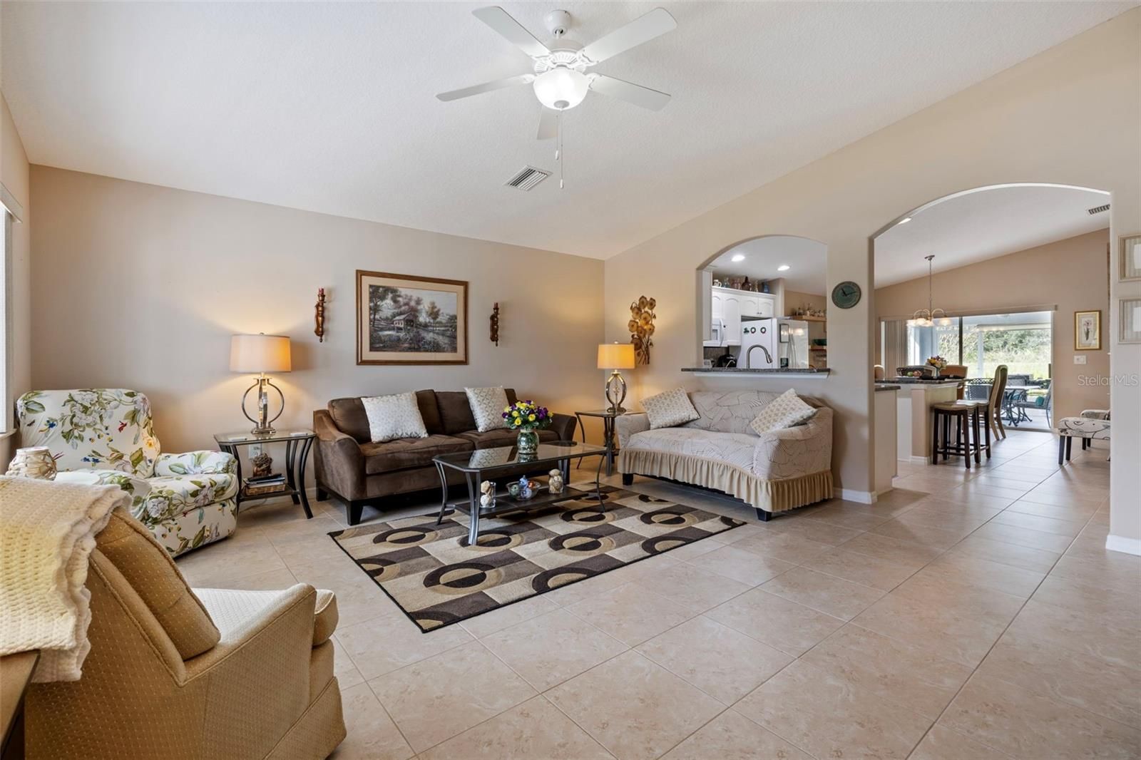 Golf Course Living in Arlington Ridge! Welcome to this well-maintained 3-bedroom, 2-bathroom home with 1,602 sq. ft. of comfortable living space, perfectly situated on the 11th green of the desirable Arlington Ridge 18-hole championship golf course. Enjoy peaceful mornings on the screened front porch and relaxing evenings on the screened lanai overlooking the green & fairway. The open floor plan offers a spacious kitchen with abundant cabinet space, making it ideal for both everyday living and entertaining. This home was designed with energy efficiency in mind—leased solar panels, R38 attic insulation, tailored foam insulation in the exterior walls, and double-glazed low-E windows all work together to drastically reduce utility costs. Many months, the electric bill is only the basic service charge. Additional features include a paver driveway, garage door screens, and low-maintenance landscaping for added convenience and curb appeal. Living in Arlington Ridge means more than just a home—it’s a lifestyle. The community offers a restaurant, pub, movie theater, coffee shop, and a wide variety of clubs and activities to enjoy year-round. Located in South Leesburg, you’ll be close to grocery stores, pharmacies, medical facilities, and restaurants. Plus, you’re less than an hour from Orlando’s world-famous attractions and international airport, with both the East and West Coast beaches under two hours away. **Don’t miss this opportunity to live in one of Central Florida’s most sought-after active adult communities!**
