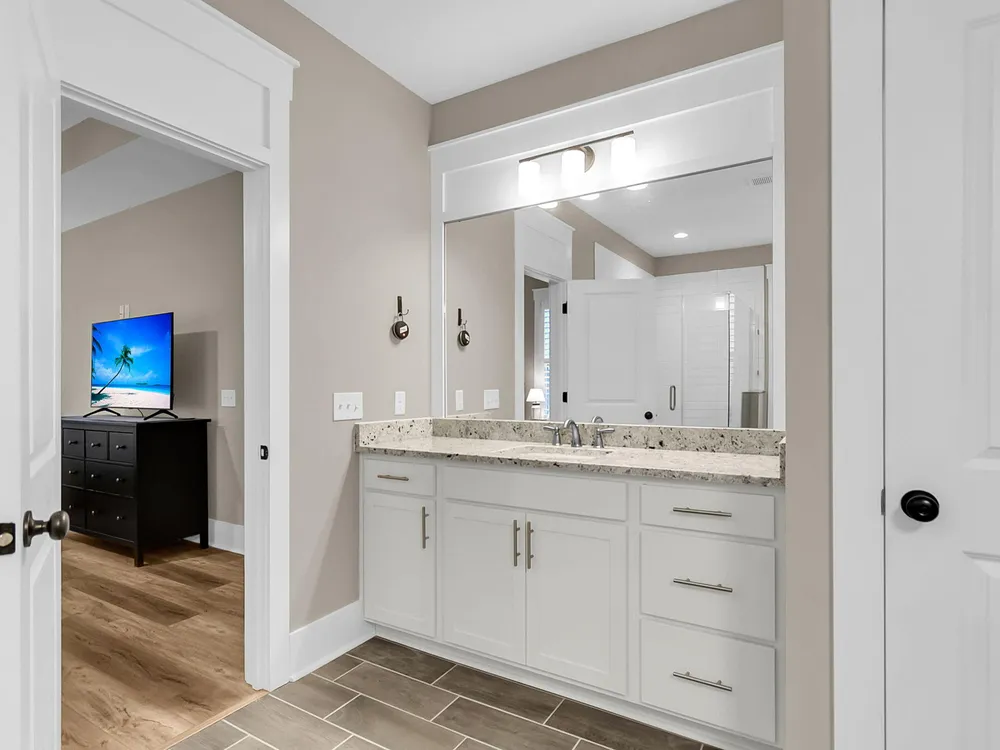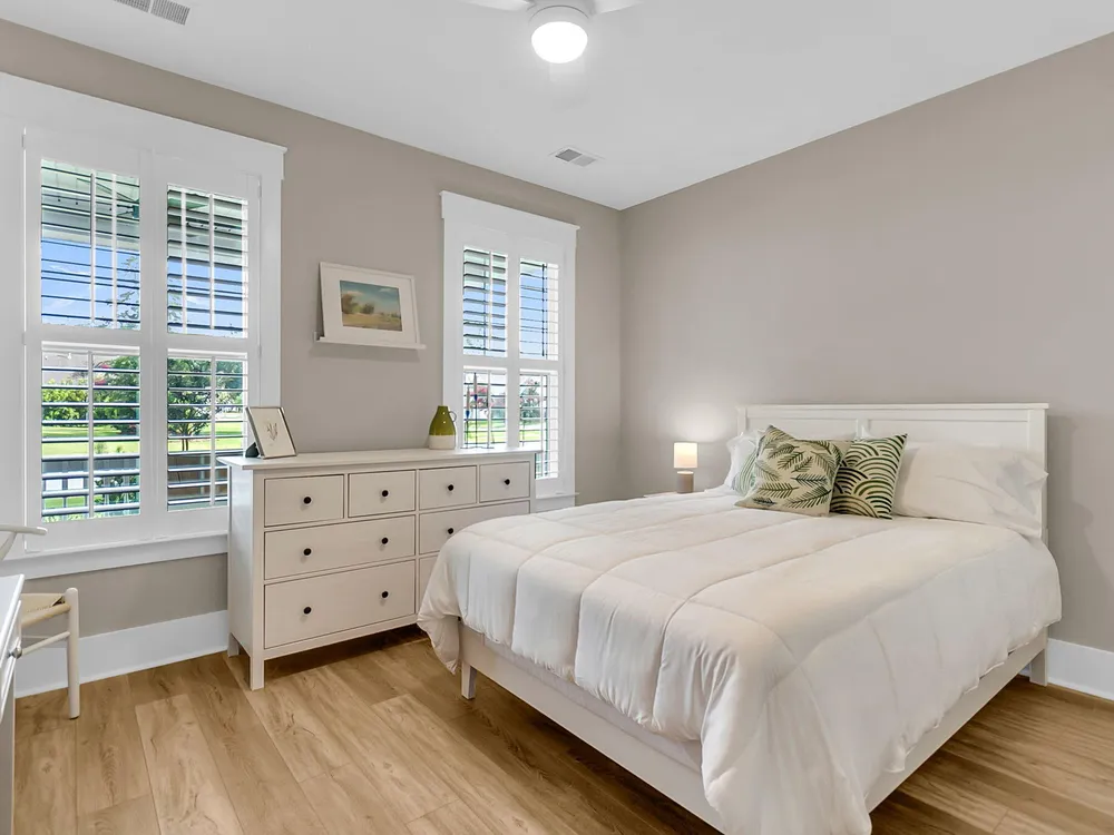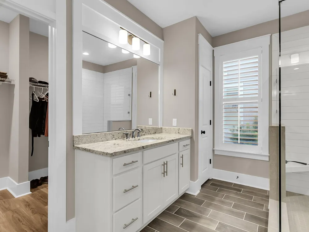 Experience the perfect combination of elegance and functionality in this stunning Cresswind home, featuring the highly desirable Fir floorplan, thoughtfully designed for effortless one-level living. Step inside to a bright, open-concept layout filled with natural light from expansive windows with plantation shutters and luxury vinyl flooring throughout the first floor living space. The chef-inspired kitchen is a true showstopper, offering granite countertops, a spacious island and an upgraded, oversized pantry which leads you right into the thoughtfully planned out laundry area. The owner's suite is a private retreat, displaying a large walk-in closet, luxurious dual vanities, and an oversized, beautifully tiled shower and ceramic tile flooring that looks like real wood. Glass Frenchdoors separate the home office providing the perfect space for remote work or quiet study. Wood tread stairs lead you to the bonus room or 3rd bedroom, with Berber carpet and complete with full bath and spacious walk in closet. Nestled on a distinctive homesite, this property backs up to the conservancy with peaceful wooded views creating a private, serene setting that feels like your own slice of nature. Owners added the 4ft extension to the front covered porch and the garage plus you can enjoy the sights and sounds from the 4ft extended screened porch and patio. This home has been barely lived in, the owners have only used the home for brief stays, making it feel like new. Located in the sought-after Cresswind 55+ community within the historic charm of The Ponds, residents enjoy exclusive access to: A private clubhouse, Resort-style pool & hot tub, A full-time lifestyle director, YMCA access, scenic walking trails, and an abundance of engaging social activities. Do not miss your chance to embrace an active, connected, and comfortable lifestyle in this exceptional home!