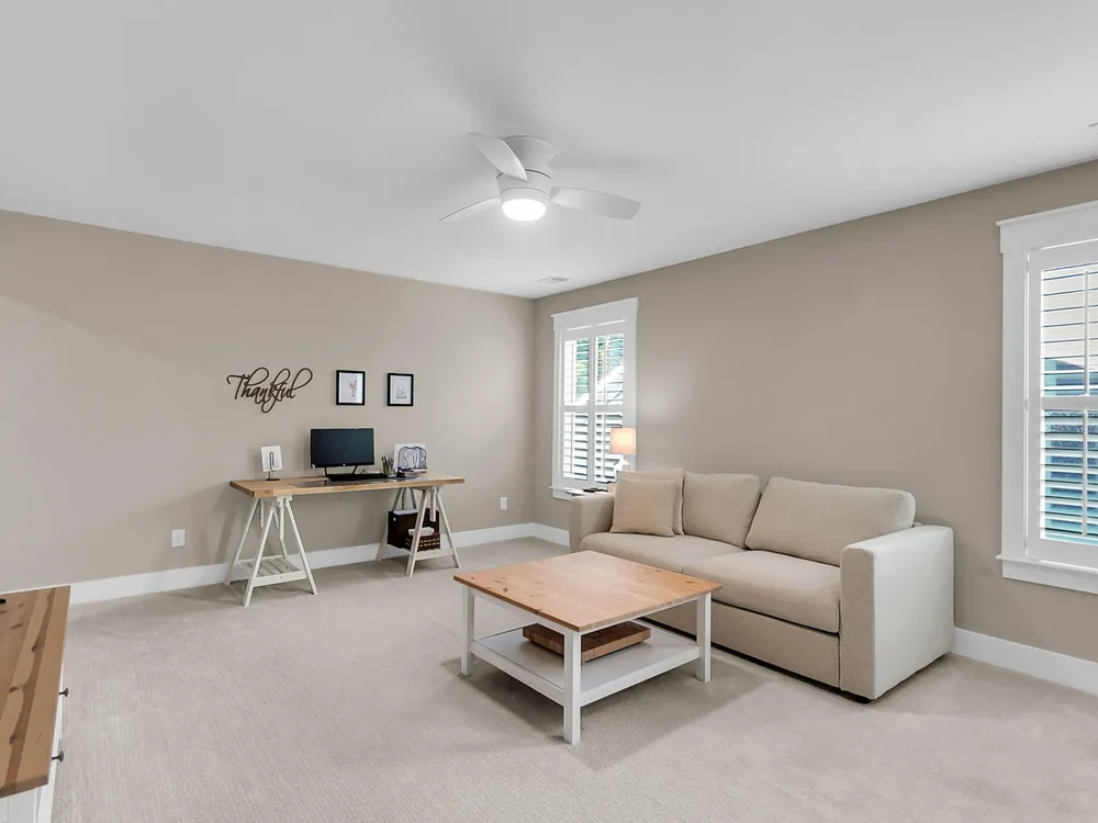 - Smooth Ceilings, Tray Ceiling(s), High Ceilings, Kitchen Island, Walk-In Closet(s), Ceiling Fan(s), Bonus Room, Family Room, Entrance Foyer, Living/Dining Room, Loft, Home Office, Pantry, Study