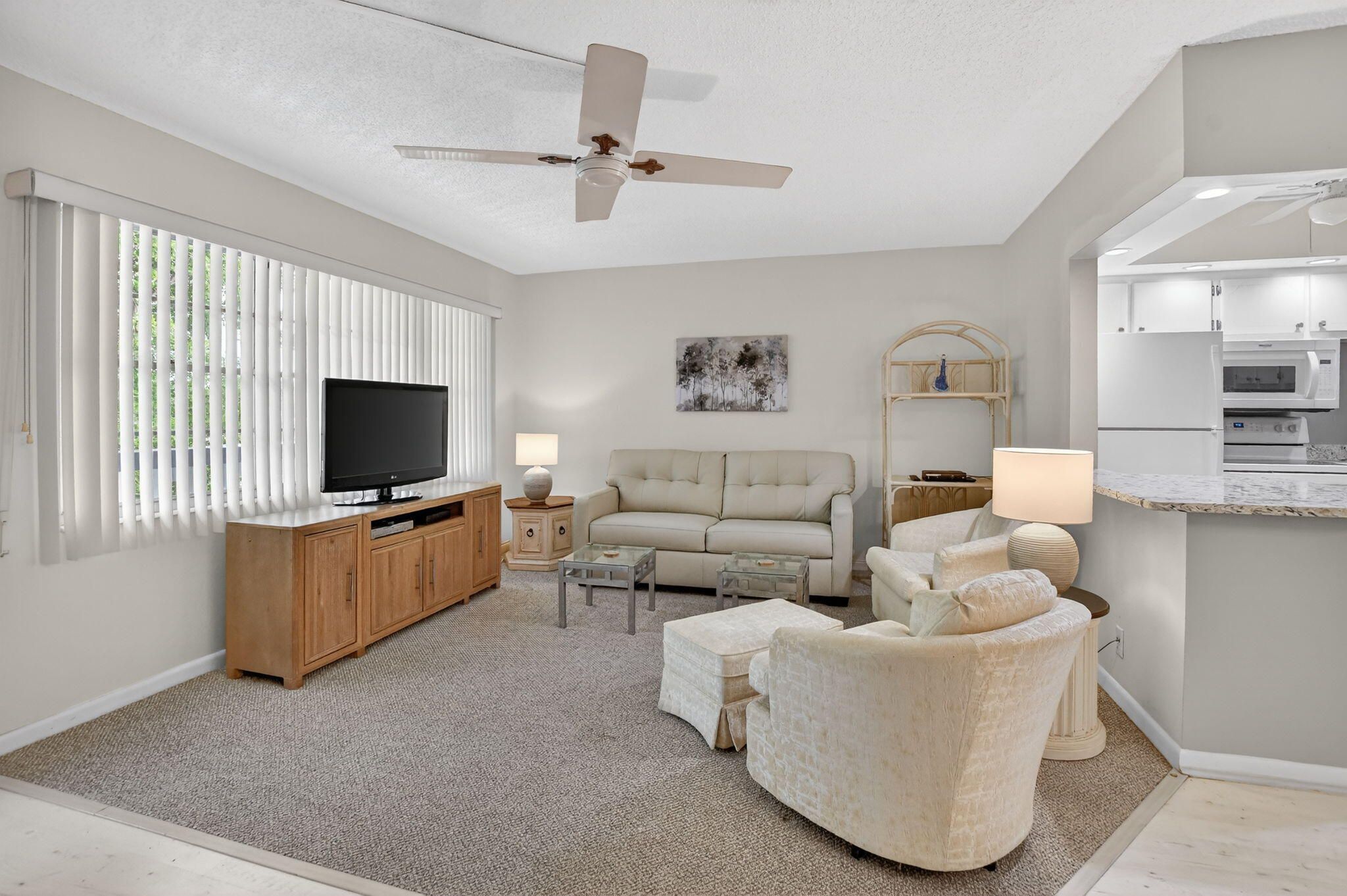 Cozy 1 bed 1.5 bath condo located in building Durham B. 4 th floor condo with amazing water views from the Florida Room. Updated kitchen. Comes fully furnished, turn key, move in ready. Recent carpet in living room, bedroom and Florida Room. Building has a Barbecue area located next to the water for residents of Durham B. Also located next to the Durham pool. Great location and close to the Century Village clubhouse with resort like amenities. 55 plus community. Enjoy all the activities and more. Located close to beach, shopping, dining and places of worship.