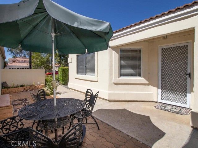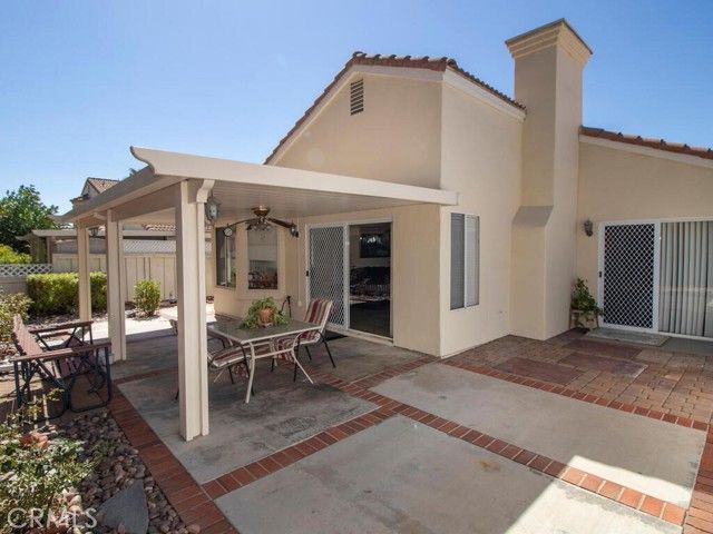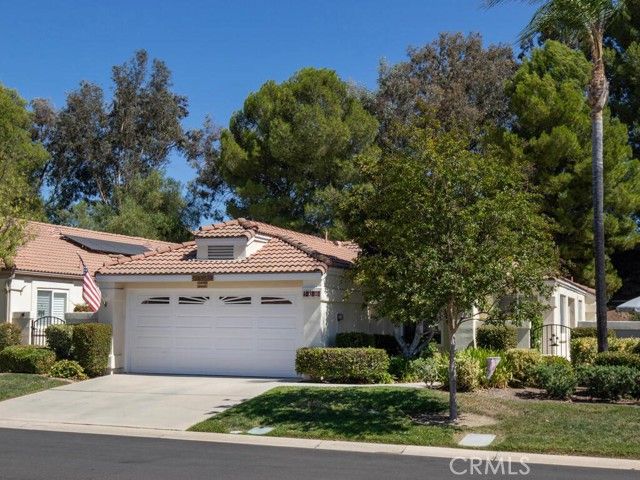 Located in the desirable Senior Community of The Colony Murrieta. The Colony is a private, gate guarded golf course community that features a renovated clubhouse, with amenities such as a library, billiard room, card rooms, fitness center, hair salon, large theater, tennis courts, pool & spa, plus a wonderful 18-hole public golf course.There are plenty of activities each week for any homeowner to participate in should they choose! This move in ready home has a gated front/side/back yard area with rockscape, pavers and patio. The interior features a well thought-out floor plan, with tall ceilings including a living room with fireplace and separate dining room. The kitchen offers tile counter tops, black and stainless steel kitchen appliances, pantry and eat in kitchen nook overlooking the back yard. Both bedrooms offer walk in closets and the primary bedroom has a sliding glass door to the backyard. The primary en suite bathroom features a separate tub, walk in shower and vanity area with dual sinks. The shaded backyard is highlighted by an alumawood patio cover. No neighbors directly behind as it backs to an HOA maintained slope with lush landscaping and plenty of privacy! The front yard water and maintenance is handled by the association. The oversized 2-car garage has built in cabinetry and even room for a golf cart! Ready for new owners to make it home!