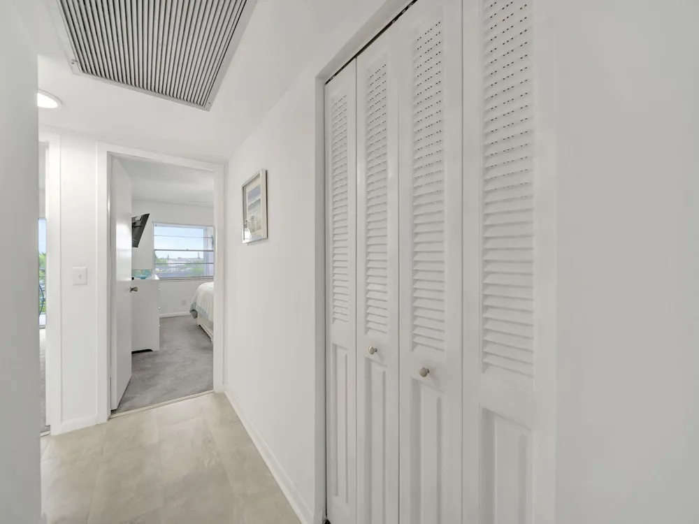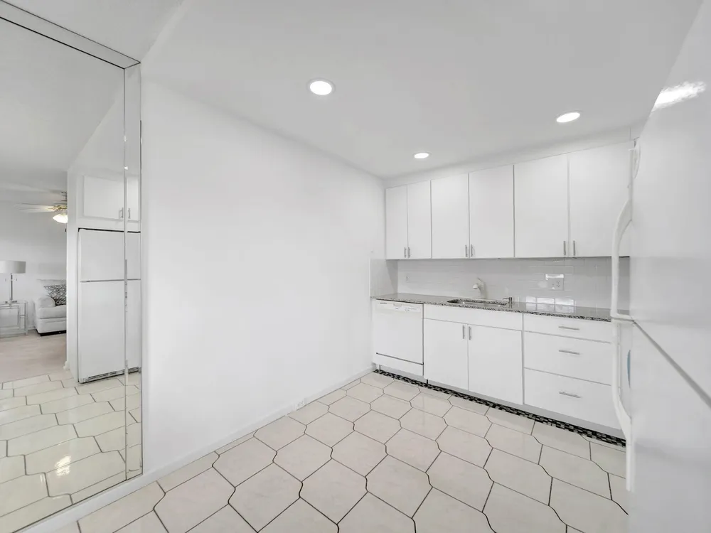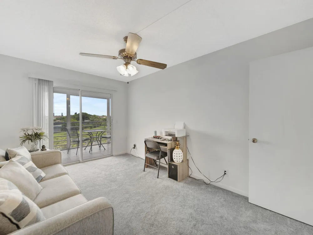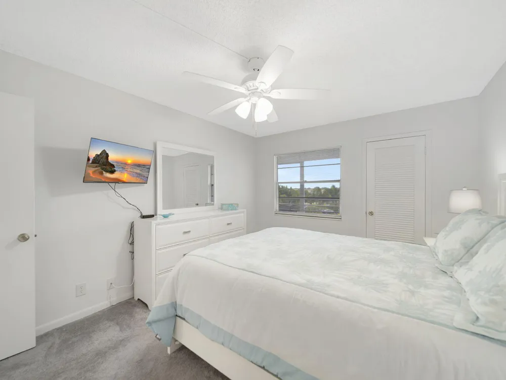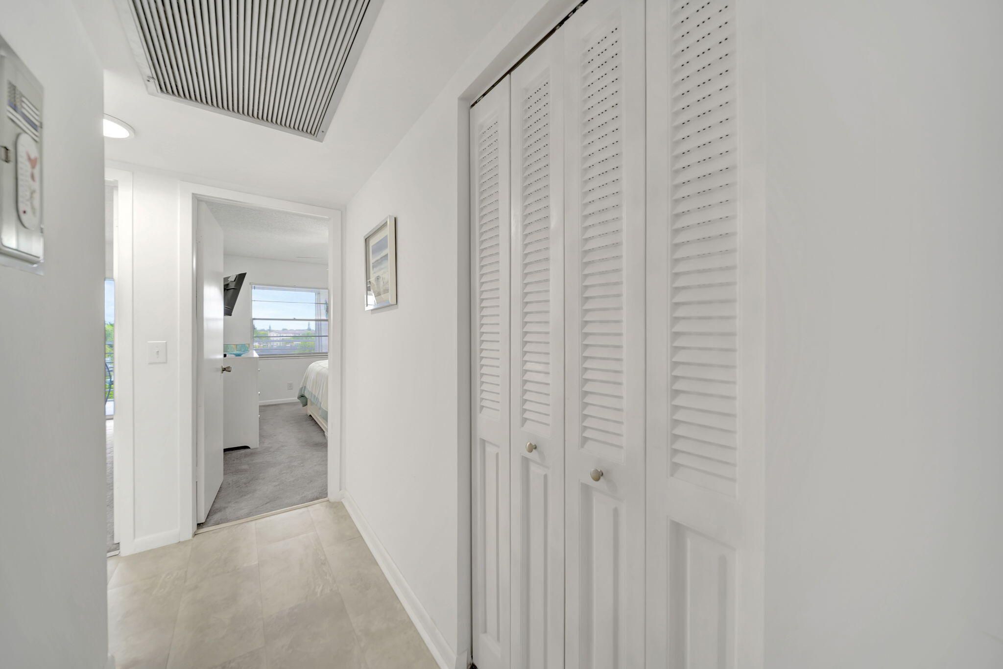Waterfront Penthouse level condo in Boca Raton. Top floor 2 bedroom, 2 bath residence designed for easy living. See stunning lake views walking up to your condo, from the rooms and patio. Fully furnished and move-in ready. Updated kitchen with smooth ceilings, tall cabinets, recessed lighting, and modern backsplash. Large mirror wall & modern chandelier add elegance and light. Newer water heater. Control the AC and lamps directly from your phone. Updated bathroom. En-suite walk-in shower in main bedroom has a separate vanity & sink, and closet. New flooring in living area, fans in both bedrooms. Main bedroom has a walk-in closet and is TV mount ready. Roll-down shutters on patio for easy storm protection. Tile in screened patio overlooking the lake perfect for morning coffee.
