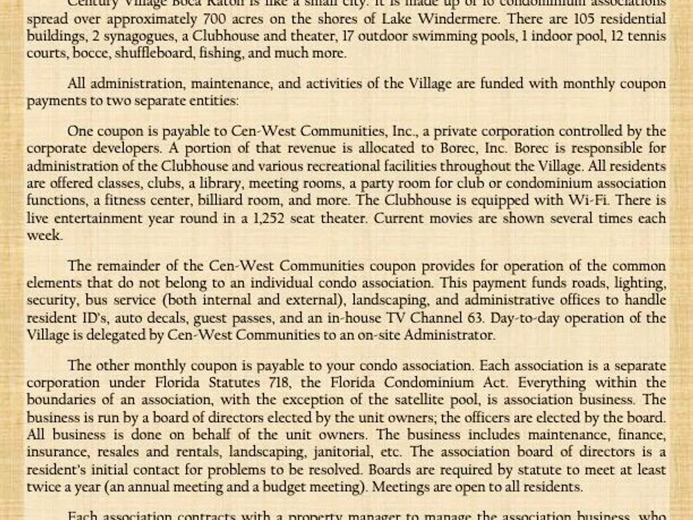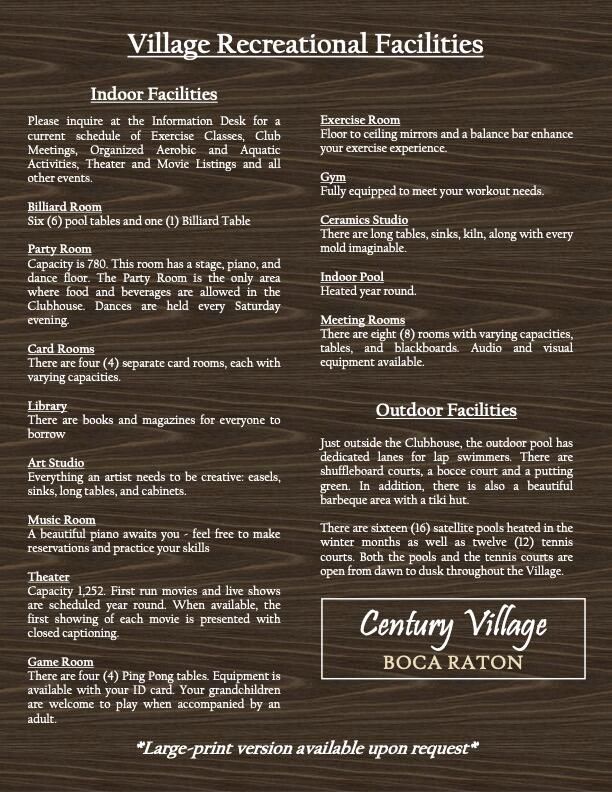 The following amenities are available to Century Village at Boca Raton - Boca Raton, FL residents: