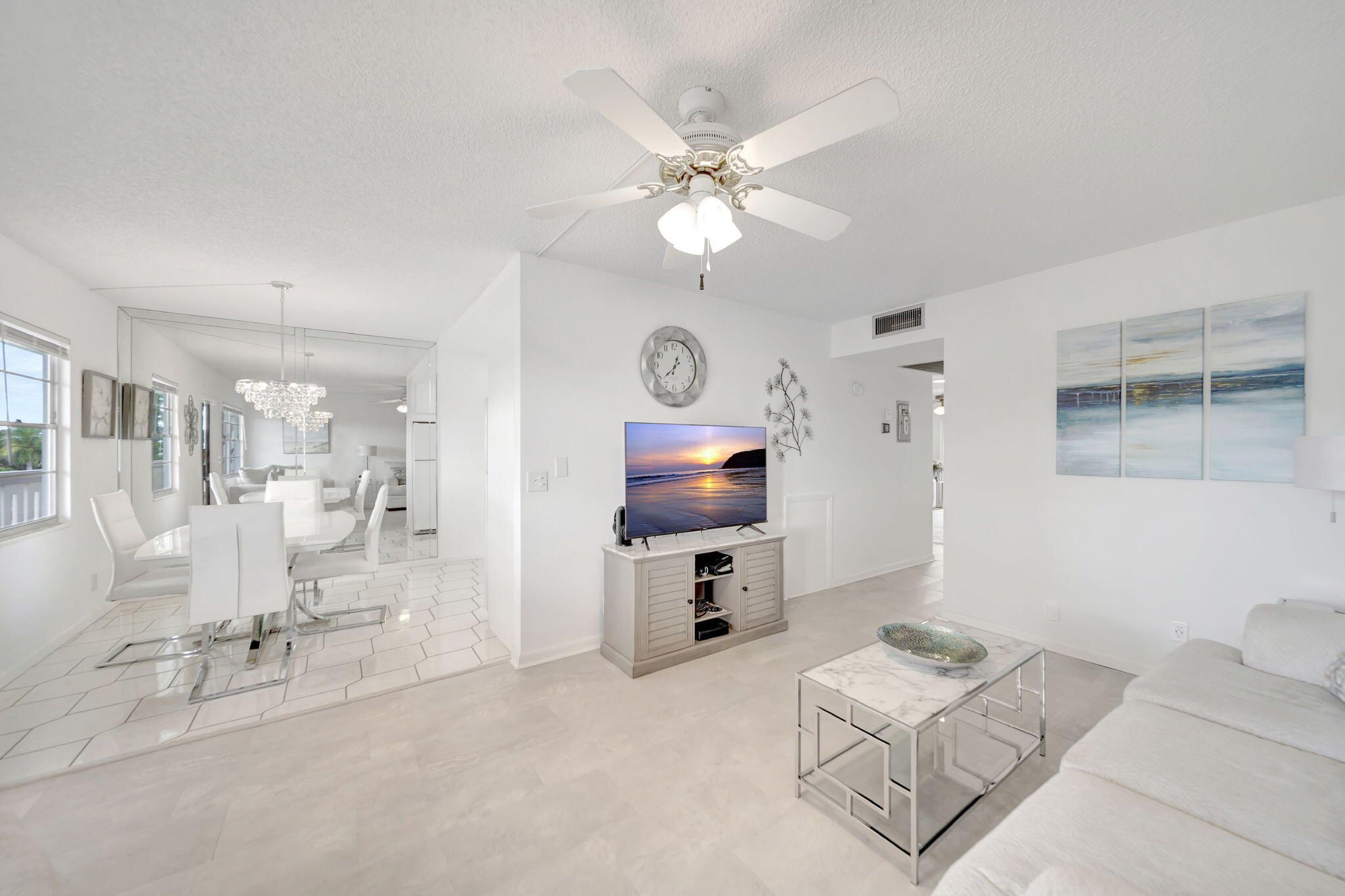 Waterfront Penthouse level condo in Boca Raton. Top floor 2 bedroom, 2 bath residence designed for easy living. See stunning lake views walking up to your condo, from the rooms and patio. Fully furnished and move-in ready. Updated kitchen with smooth ceilings, tall cabinets, recessed lighting, and modern backsplash. Large mirror wall & modern chandelier add elegance and light. Newer water heater. Control the AC directly from your phone. Updated bathroom. En-suite walk-in shower in main bedroom has a separate vanity & sink, and closet. New flooring in living area, fans in both bedrooms. Main bedroom has a walk-in closet and is TV mount ready. Roll-down shutters on patio for easy storm protection. Tile in screened patio overlooking the lake perfect for morning coffee. No upstairs neighbors, just sky and water. Optional keyless entry with keypad on front door. Steps from one of 17 community pools that has a shaded sitting area. No upstairs neighbors, assigned parking, and close to the elevator. Century Village is a 55+ gated community offering resort amenities 17 Outdoor Pools, 1 Indoor Pool (heated year-round), Fully equipped fitness center, Exercise room with mirrors & balance bar, Gym with strength and cardio equipment, 12 Tennis courts, Pickleball courts (part of tennis courts), Bocce courts, Shuffleboard courts, Putting green, Barbecue & tiki hut area, Walking paths throughout the community. 1,252-seat theater with live entertainment and movies year-round, Multiple meeting rooms and card rooms, Party room with stage, piano & dance floor, Library with books and magazines, Art studio & ceramics studio, Music room with pianos, Billiard room with multiple pool tables, Game room with ping pong tables, Wi-Fi throughout the Clubhouse, Internal shuttle buses (daily, every half hour), External shuttle routes to Publix, Home Depot, Walmart, Boca Lyons Plaza, Shadowood Plaza, Town Center Mall, Hamptons Plaza, Festival Flea Market (special trips), Transportation to medical centers & pharmacies, Wednesday night dinner buses, 24/7 Gated security, Security patrol throughout community, ID office for resident and guest credentials, On-site property management for each association, Maintenance and janitorial support, Landscaping, lighting & irrigation services, Storm protection assistance (lock changes, water shutoff when away), Red emergency phones at pools (direct to 911), Wide range of classes. Chair Yoga, Pilates, Strength Training, Aerobics, Water Aerobics, and more. Creative arts programs like ceramics, painting, music. Mahjong, bingo, poker & table games, Wednesday afternoon live music & dancing, Community clubs & committees (COBRUA & resident delegate system), Resident newspaper "The Reporter". On-site customer service desk (9am-11pm), Daily and weekly passes available for visitors. Comcast bulk contract for TV/Internet, Blood pressure checks & blood donation bus visits, Shuttle to local houses of worship, In-house Channel 63 for community updates, Automated gates at all entrances, 24/7 staffed gates North & South. You have to see this view in person.