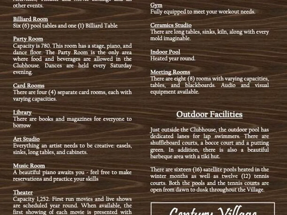There are plenty of activities available in Century Village at Boca Raton. Here is a sample of some of the clubs, activities and classes offered here.