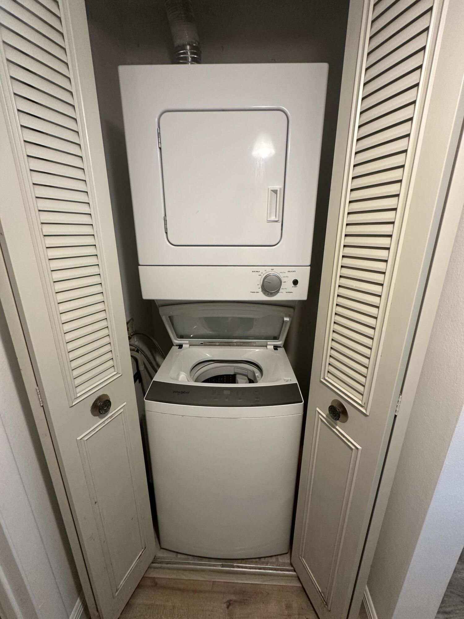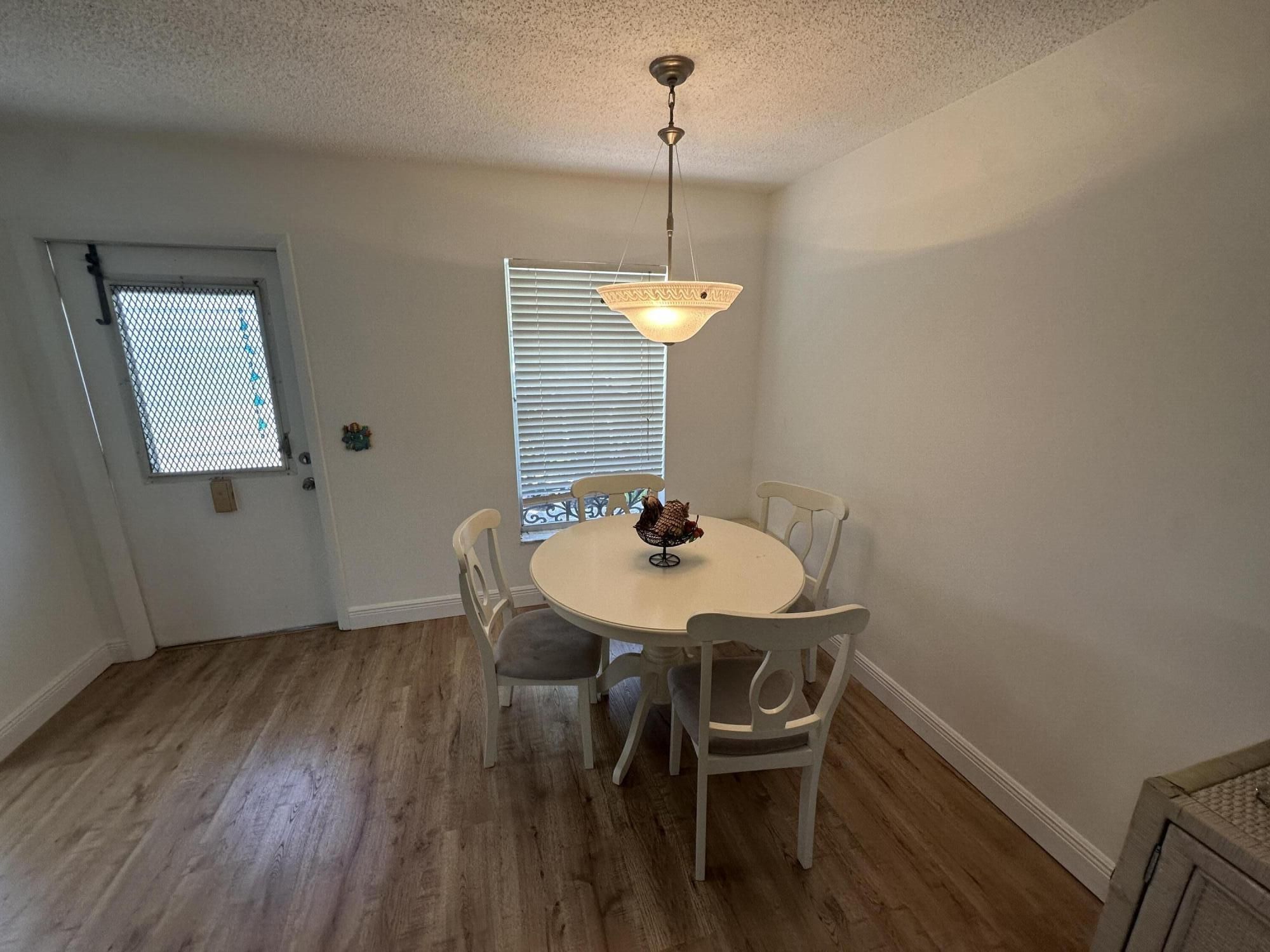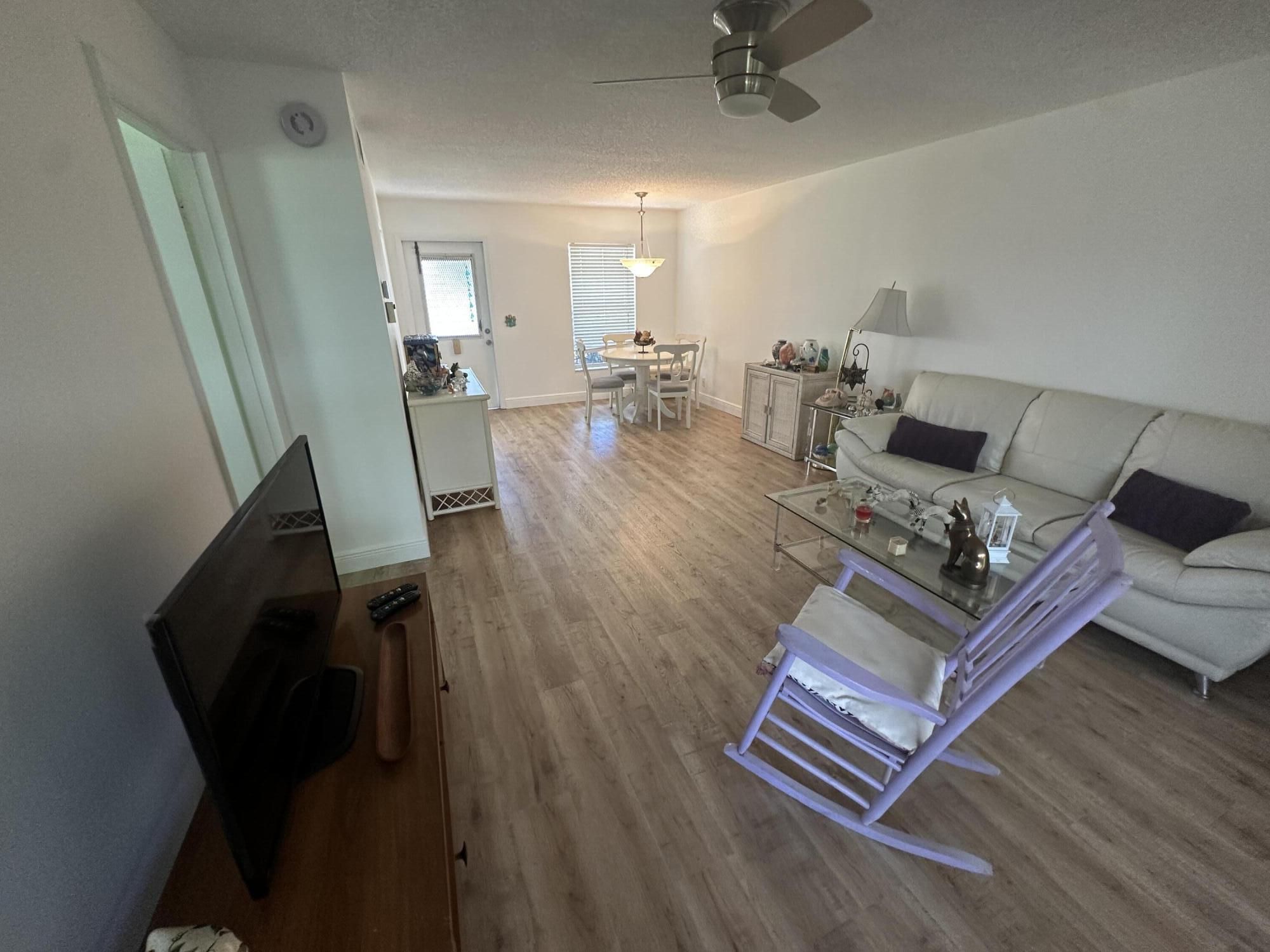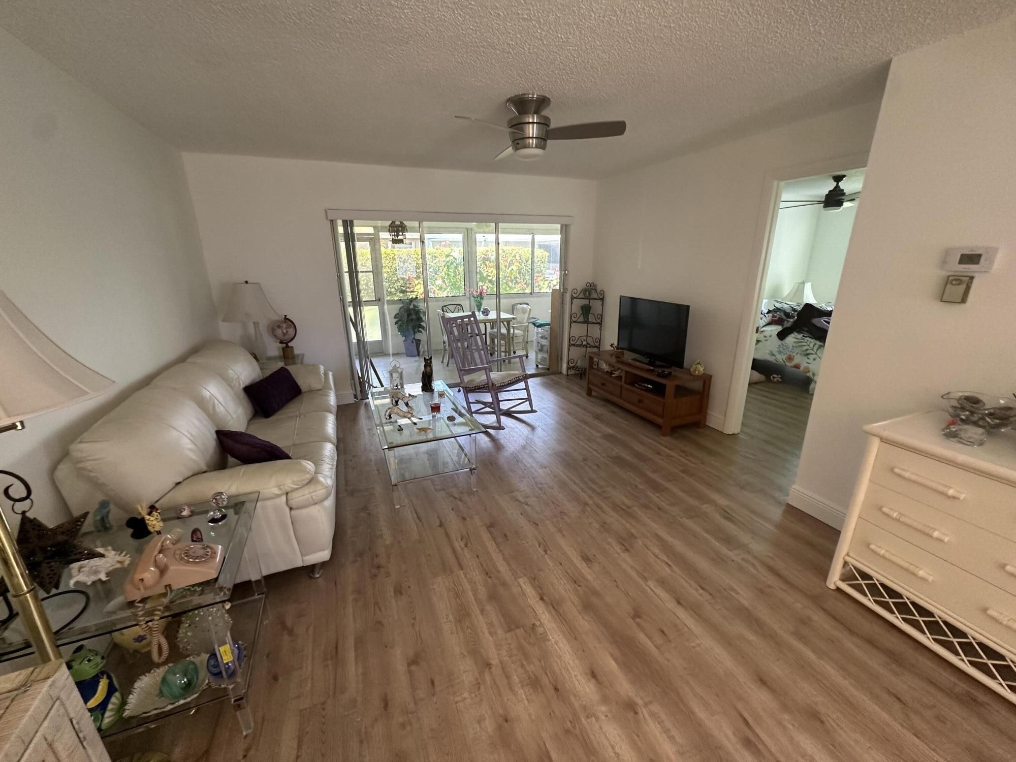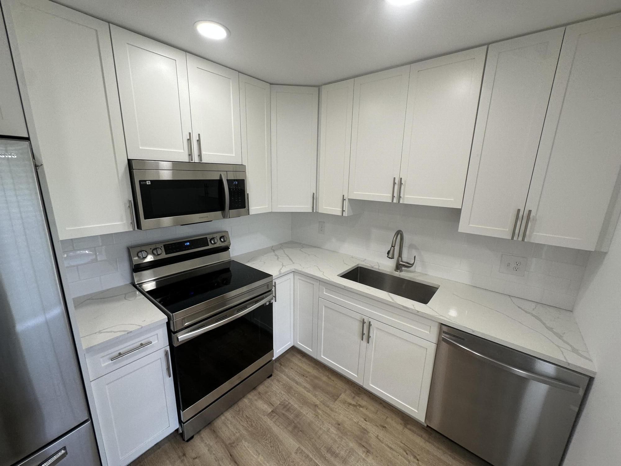 Newly updated condo with never before used kitchen. Kitchen is stainless steel appliances, quartz counters, subway tile backsplash, deep SS sink, lazy susan, and white shaker cabinets. New wood like floors throughout. Updated bathroom with new vanity with quartz countertop and nicely tiled walk-in shower. Washer / dryer in unit. Central AC. Lovely covered and screened in patio has a wall unit AC and a fan. View of lovely landscaping and sprawling tree. Also a storage closet for additional storage on the patio. AC 2016. Water heater 2020.The community features two heated pools, tennis courts, pickle ball, shuffleboard, walking paths, community room, exercise room, ping pong, billiards, library and more.