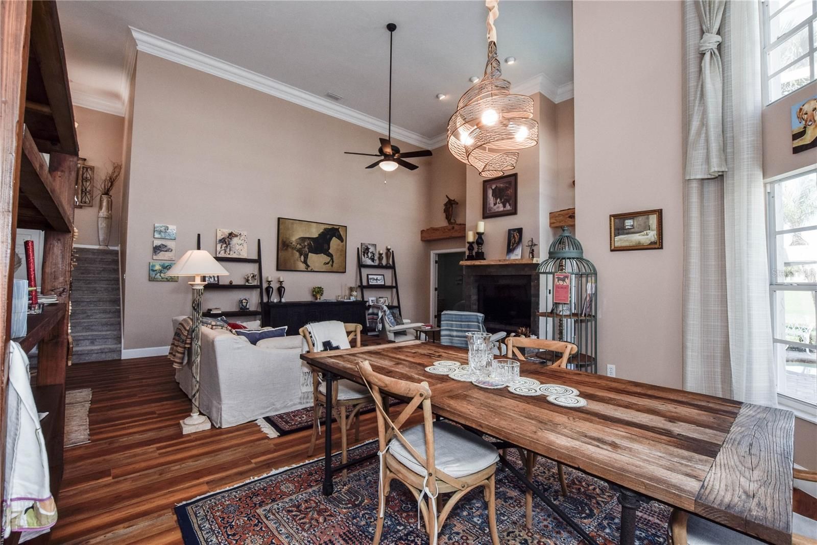 - Built-in Features, Cathedral Ceiling(s), Ceiling Fan(s), Crown Molding, High Ceilings, Main Level Primary, Solid-Wood Cabinets, Stone Counters, Window Treatments