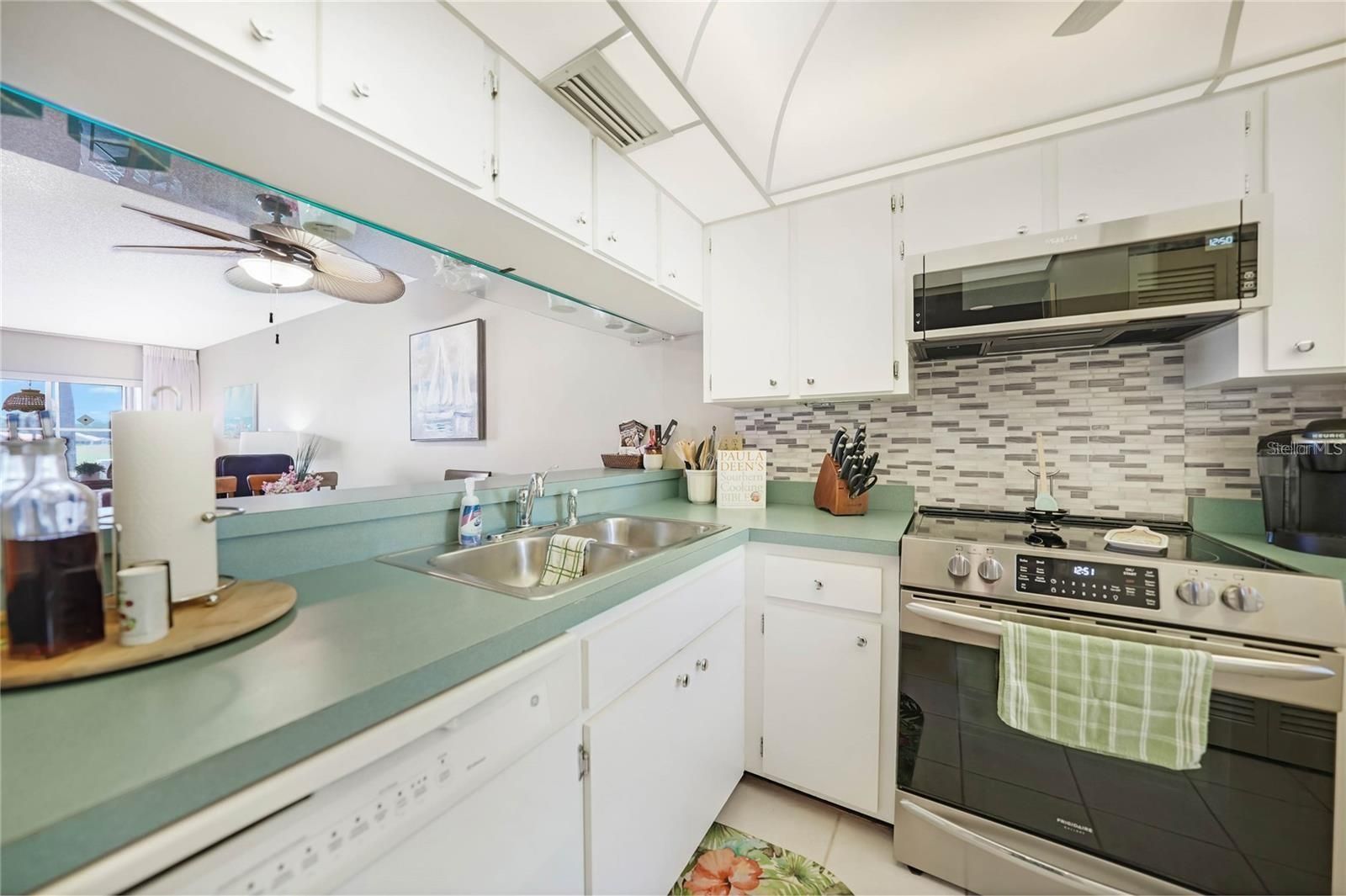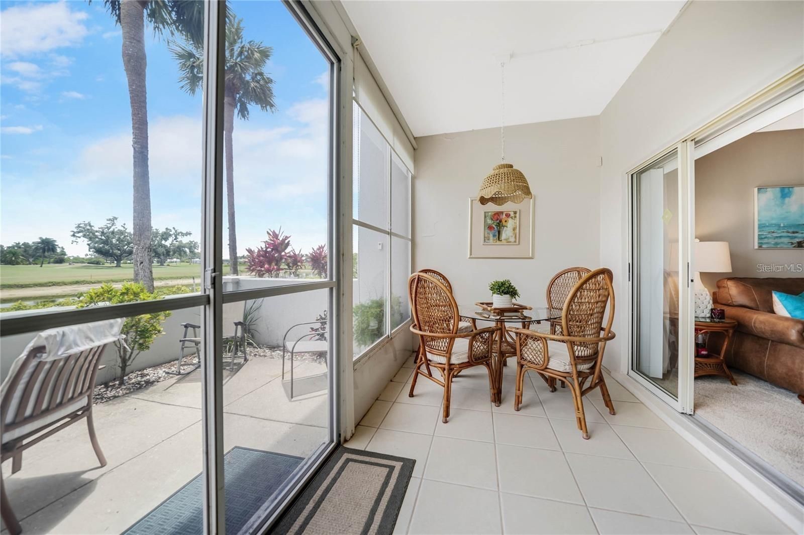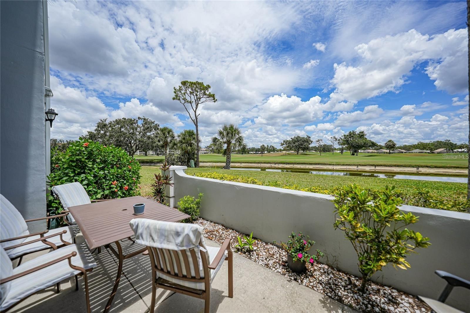 Direct view of the Bobcat Golf Course at Plantation Golf and Country Club overlooking the 9th fairway and a pond. This freshly painted furnished 2 bedroom 2 bathroom, ground floor "END" unit condo has a vinyl enclosed Lanai with new screen and vinyl. This unit would make a great seasonal rental. The kitchen includes new stainless steel oven, microwave and refrigerator with ice and water in the door. There are new blinds in the bedrooms and a stackable washer/dryer combo in Master Bedroom. This condo offers plenty of closets and storage throughout. The guest bathroom was recently updated with new tub/shower combo. Westchester Gardens has a beautiful heated community pool and a community gathering room with library. This unit includes a covered carport with a storage room. Enjoy the outdoors with a concrete porch off Lanai where you can watch the golfers or just enjoy pleasant views of the areas bird life. Residents of the Westchester Gardens have the opportunity to join the The Planation Golf and Country Club where they can enjoy the golf course, tennis courts and amenities offered at the Country Club. Call today before this opportunity is gone!
