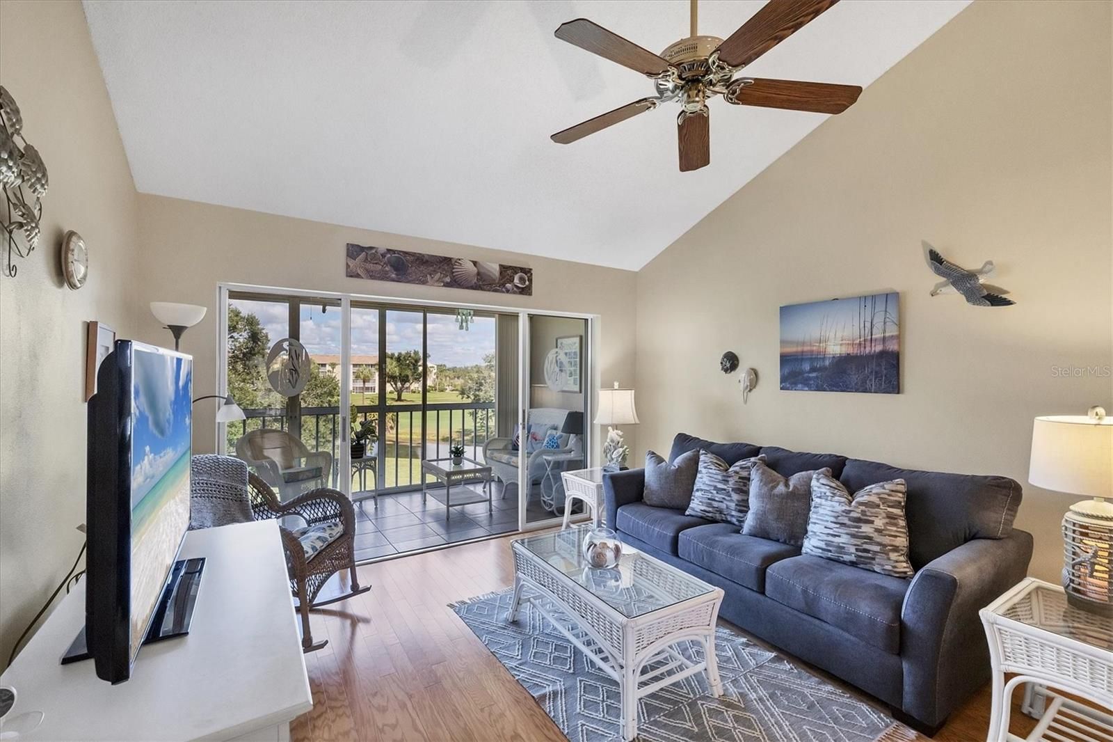 - Cathedral Ceiling(s), Ceiling Fan(s), Open Floorplan, Stone Counters, Vaulted Ceiling(s), Window Treatments