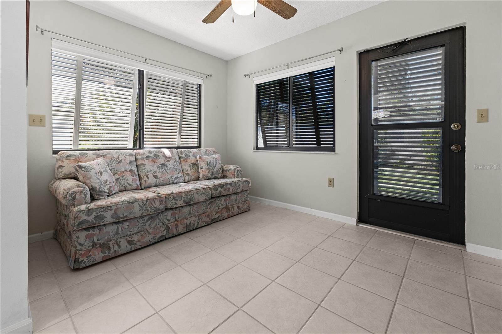 *NEW PRICE & NO FLOOD INSURNACE REQUIRED* Welcome to this charming home nestled in the vibrant 55+ gated community of Park Forest. This property offers a unique opportunity to enjoy a fulfilling lifestyle with an array of amenities in a prime location. As you enter, you’ll be greeted by a welcoming living and dining area featuring a vaulted ceiling and laminate flooring, perfect for both entertaining. The home includes a year-round Florida room that can make a nice office or den. The kitchen boasts a separate dining area, tile flooring, oak cabinetry, and a pantry for added storage. The primary bedroom is a true retreat, complete with a spacious walk-in closet and private bathroom with a large single sink vanity, shower and a linen closet. The second bedroom also includes a generous built-in closet and its own bathroom, ensuring guests enjoy their privacy. Step outside to discover a private patio, perfect for outdoor relaxation. As a resident of Park Forest, you’ll have access to a wealth of recreational amenities, including a sparkling pool, spa, tennis courts, shuffleboard, and a clubhouse hosting monthly activities. With HOA fees covering lawn maintenance, irrigation, roof replacement, and exterior painting, you can embrace hassle-free living while enjoying an active lifestyle. This community is conveniently located just a short drive to the pristine beaches of Manasota Key, Venice, and Nokomis.