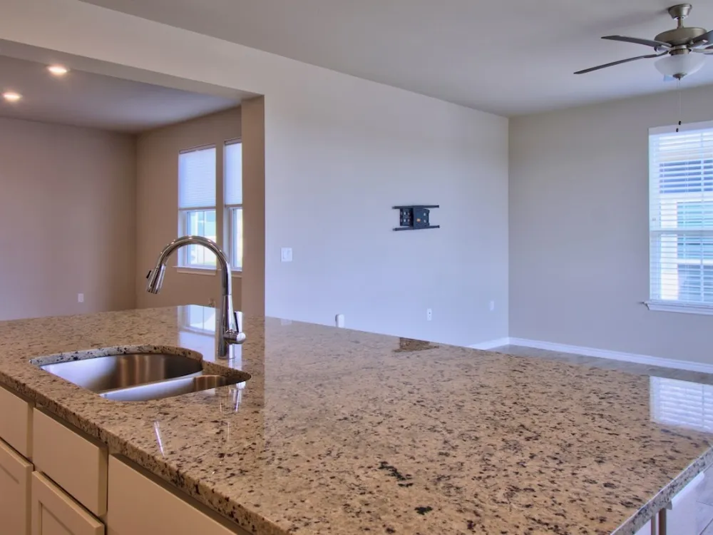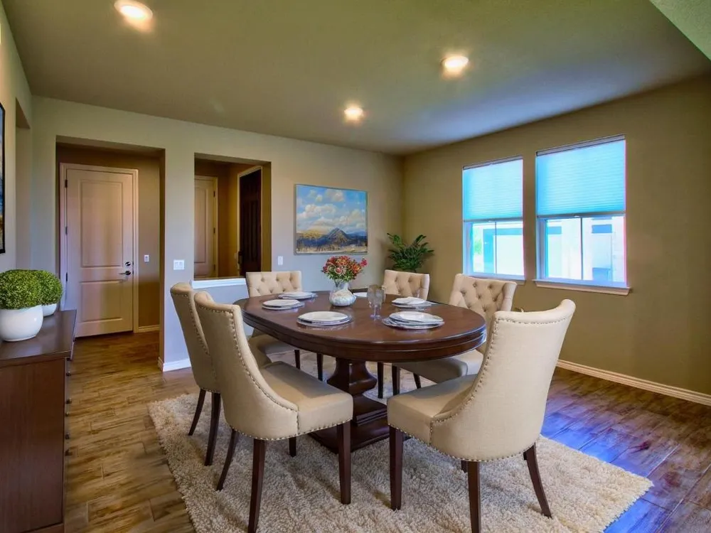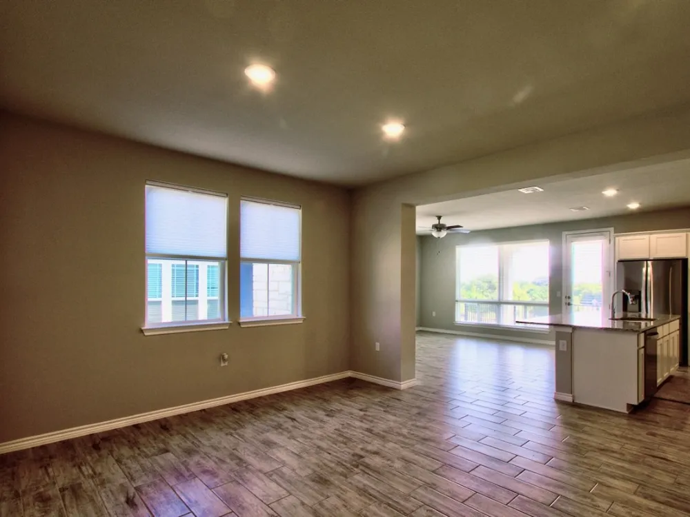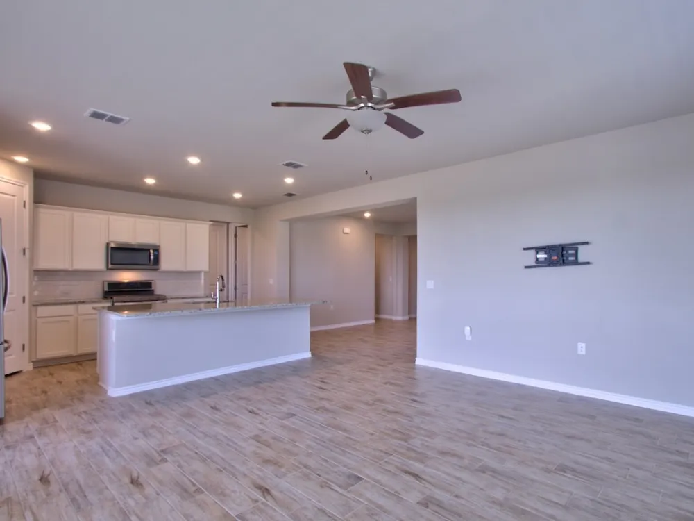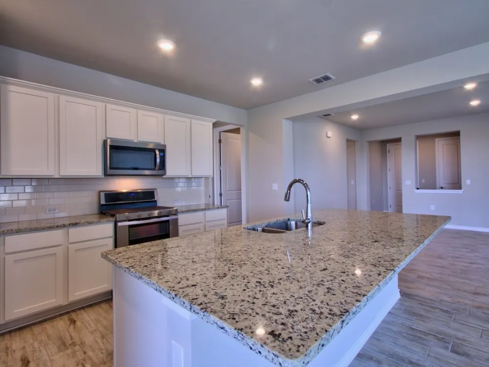 Welcome to the Trevino Plan in the vibrant 55+ community of Kissing Tree in San Marcos! This charming home blends comfort, style, and a lifestyle that’s second to none. From the moment you step inside, you’ll notice the thoughtful design—an open-concept living and dining area that flows into a stunning island kitchen. With gas cooking, a spacious walk-in pantry, and no carpet, this home was built for easy living and entertaining. The large primary suite features a roomy walk-in closet and a sleek walk-in shower, providing a retreat you’ll love coming home to. Step outside to the extended covered patio, perfect for morning coffee, evening wine, or hosting friends. With no steps and low-maintenance finishes, this home offers the “right-size” lifestyle you’ve been searching for. The oversized 2-car garage plus golf cart space is a bonus, especially since many neighbors use carts to cruise the community, meet friends, or head to activities. The real magic of Kissing Tree lies in the community itself. Life here is built around fun, friendship, and staying active. At the heart of it all is The Mix, a gathering place where residents connect. Whether it’s joining a club, attending a class, or meeting friends for coffee, you’ll always find something to do. For outdoor enthusiasts, there’s an 18-hole golf course, pickleball and bocce ball courts, a resort-style pool, and miles of trails. For those who love social time, the Biergarten, coffee bar, live entertainment, and bingo bring neighbors together in a unique way. The lifestyle is all about variety—you can be as active or as relaxed as you want. From fitness classes and workshops to happy hours and guest entertainers, there’s always something happening. With such a welcoming community, neighbors quickly become friends, making Kissing Tree one of the most rewarding places to call home. See why this Trevino Plan isn’t just a house, but the start of a new lifestyle full of energy, connection, and fun.
