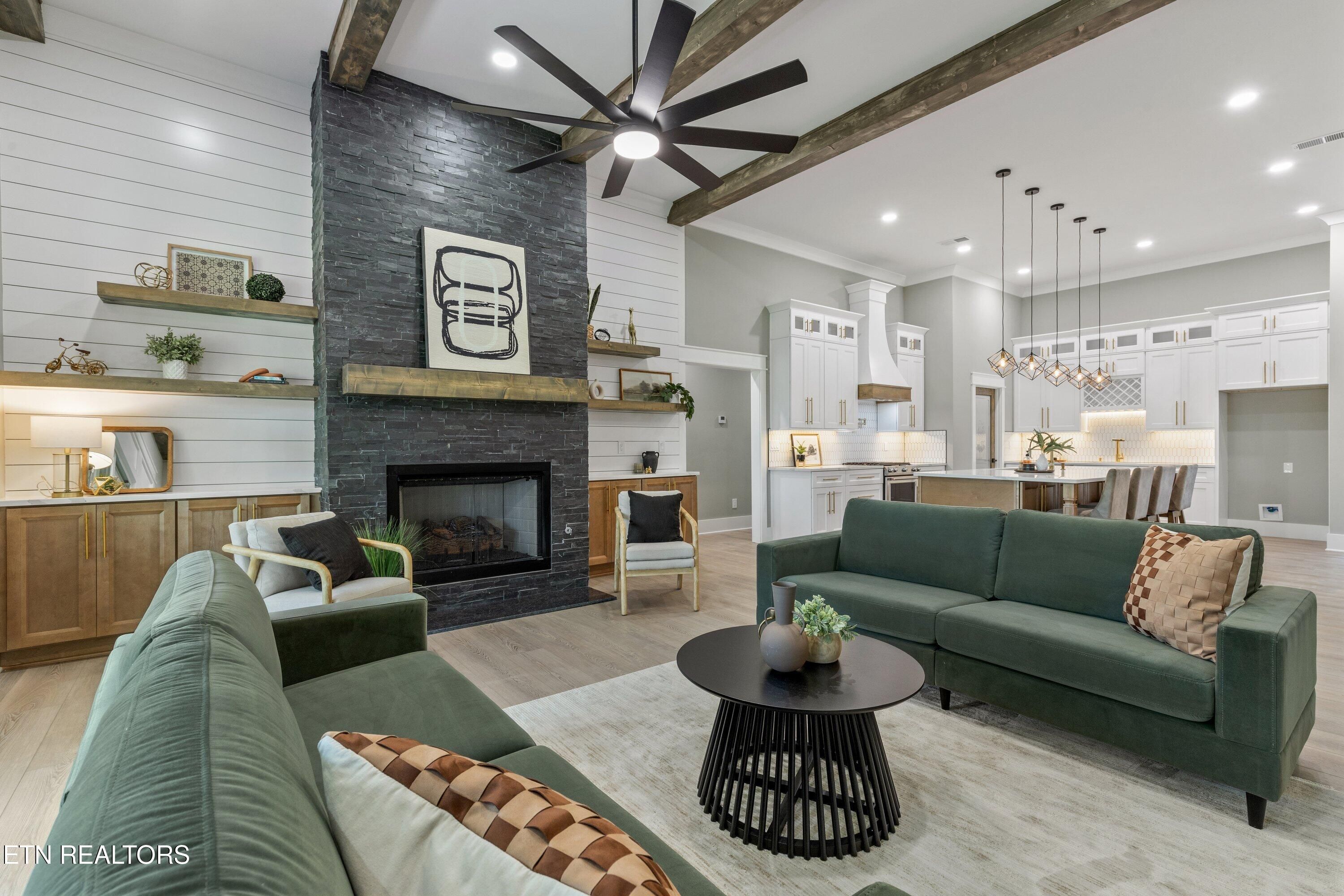 NEW Construction - PRICE REDUCTION - Experience the epitome of refined living in this exquisite all-brick, custom-built masterpiece perfectly positioned in the highly coveted Toqua Coves enclave of Tellico Village. Designed for effortless single-level living, this exceptional residence offers 3 spacious bedrooms, a private office, 2 luxurious bathrooms, and a generous 3-car garage — all within 2,350 square feet of impeccably crafted space. From the moment you arrive, the superior construction quality and high-end finishes throughout set the tone for a truly elevated lifestyle. Step inside and be captivated by soaring 12-foot ceilings, an open-concept layout, and a striking stone fireplace that anchors the main living area with warmth and sophistication. The chef-inspired kitchen is sure to impress, showcasing elegant quartz countertops, soft-close tall cabinetry with crown molding, top-of-the-line KitchenAid appliances, pot filler, beverage cooler, expansive island, and walk-in pantry — the ultimate blend of beauty and functionality. The serene primary suite presents a tranquil retreat with a beamed tray ceiling, spa-like bath featuring heated porcelain floors, and thoughtfully designed details to promote relaxation. Enjoy year-round comfort outdoors on the covered stamped-concrete porch — a perfect setting for morning coffee or evening gatherings. This move-in-ready gem is enriched with modern conveniences including EV-ready garage wiring, washer, dryer and refridgerator, dedicated pet wash area, full irrigation, window treatments and zero-step entry for accessibility and ease. Every detail has been meticulously considered to ensure comfort, elegance, and peace of mind. Residents of Tellico Village enjoy a premier waterfront lifestyle with world-class amenities: three championship golf courses, a wellness and recreation center, miles of scenic walking trails, and direct access to Tellico Lake for boating and fishing. A vibrant selection of restaurants, a yacht club, and numerous social clubs foster connection and community. A transferable Home Warranty is included and valid through May 16, 2028, and tax records currently reflect the lot only. Sellers adore this home but are relocating nearby to accommodate extended family needs. This is more than a home — it is a statement of luxury, comfort, and elevated living in one of East Tennessee's most desirable communities. Schedule your private tour today to fully appreciate extraordinary detail this residence offers. Photos are Virtual Staged - Brick & Stone Exterior - SEE FEATURE SHEET FOR LIST OF UPGRADES AND HOME FEATURES - Buyers to verify ALL Square Footage