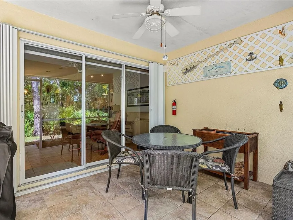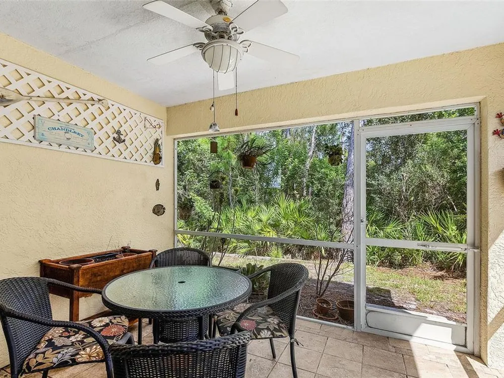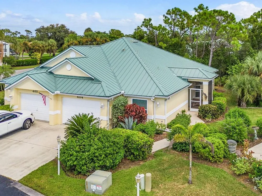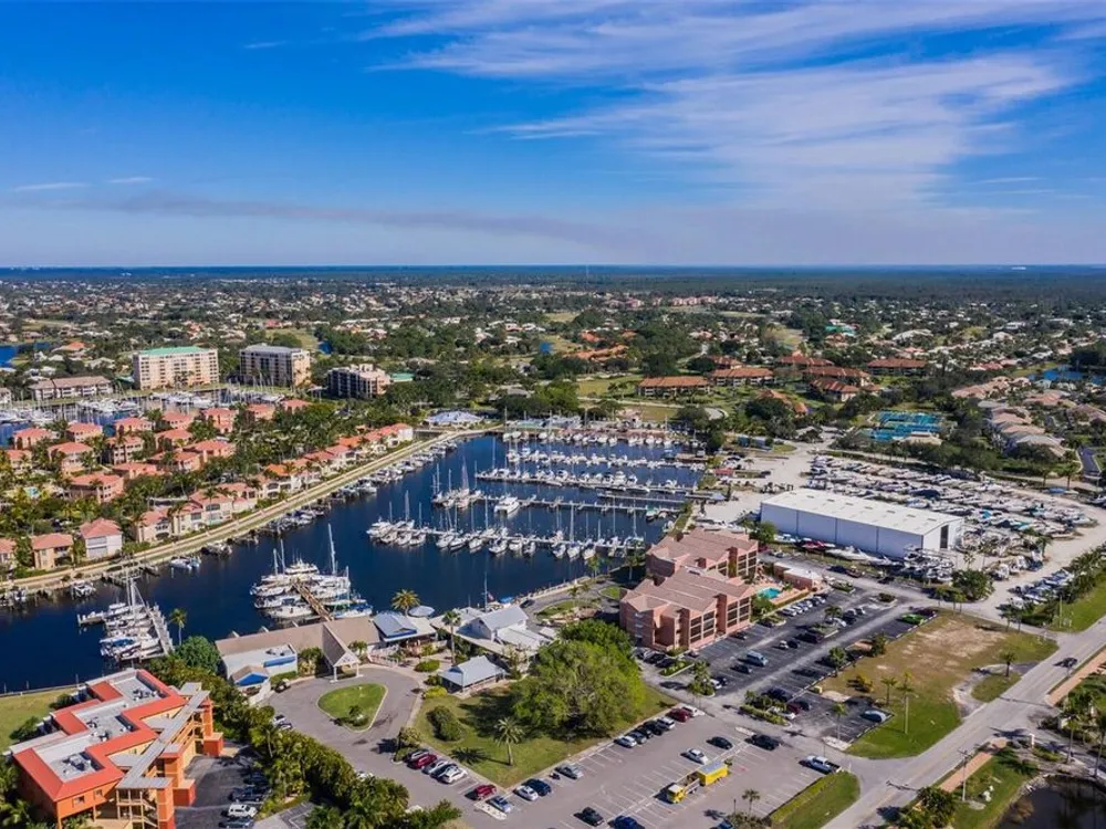 Turnkey-furnished and move-in ready, this beautifully updated 2 bed, 2 bath condo with attached private garage is nestled on a quiet street in Burnt Store Marina. Enjoy the comfort of a single-family home without the exterior maintenance! The split-bedroom layout offers privacy, while the central open kitchen flows seamlessly into a light and bright great room with volume ceilings. Sophisticated paint colors, tile and wood-look vinyl flooring, and new carpet in the guest bedroom add style to the inviting ambiance. The updated kitchen features new cabinet fronts, quartz countertops, tile backsplash, under-cabinet lighting, stainless appliances, stone front on the breakfast bar and a custom extended dining counter for added space. Bay windows in the dinette overlook a rare expansive side yard while the private screened lanai offers a peaceful tropical backdrop. The remodeled primary bath features a contemporary vanity, new fixtures, new flooring, extra linen storage, and beautifully updated walk-in shower. Additional features include a screened front entry, all new hurricane-rated windows, accordion hurricane shutters on the lanai, new washer, new water heater and an attractive front door with leaded glass for added natural light. Located in a non-flood zone, this home is perfect for seasonal retreats or full-time living in paradise!