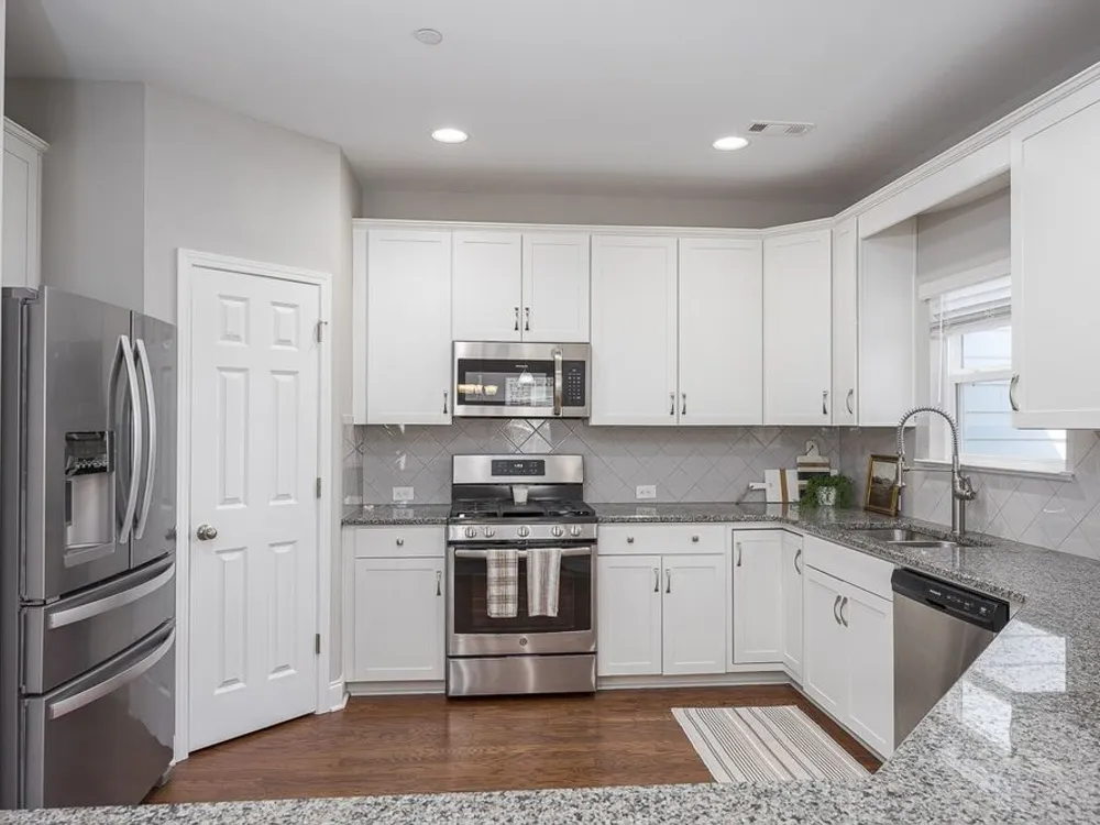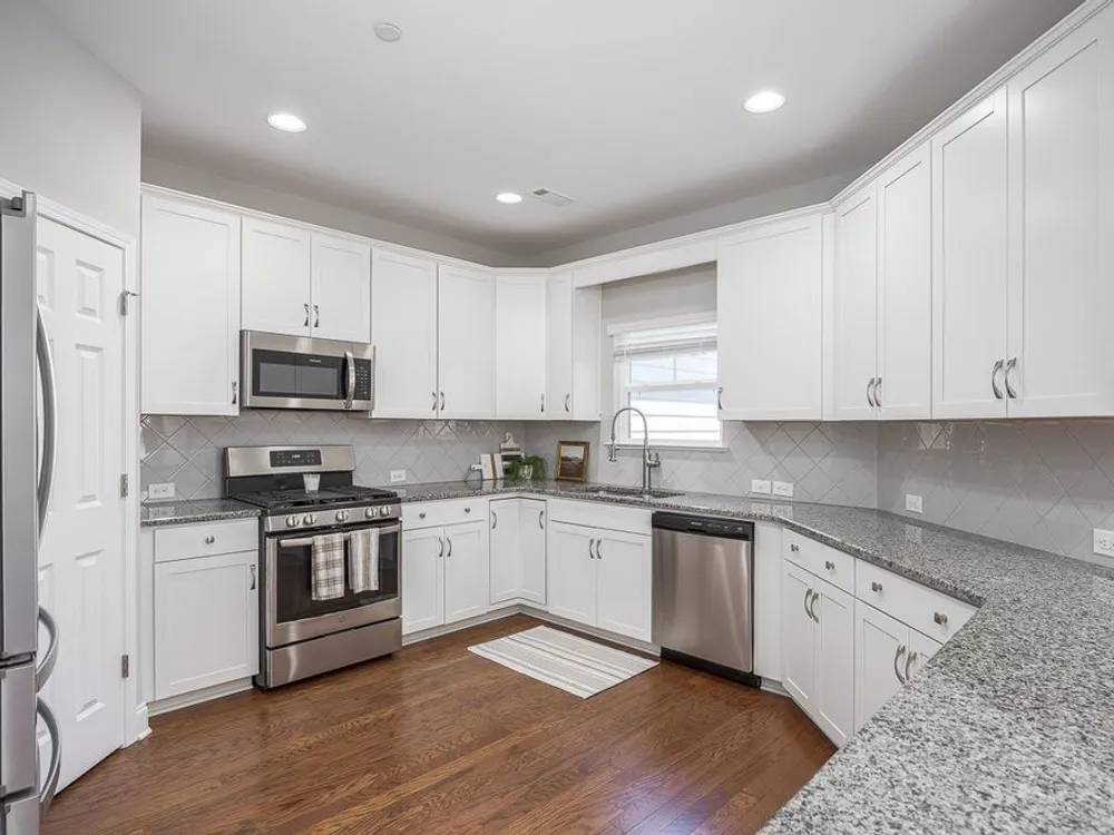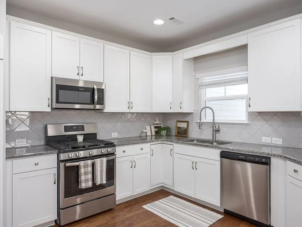 - Gas Oven, Gas Range, Dishwasher, Disposal, Microwave, Refrigerator, Stainless Steel Appliance(s)