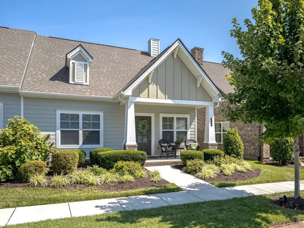 Discover refined, low-maintenance living in this end-unit cottage nestled in a welcoming 55+ community. The open-concept layout features elegant hardwood floors, a charming front porch and a private courtyard-perfect for enjoying your morning coffee. As you step inside, you are welcomed by a living area, ideal for greeting guests, home office, cozy reading nook or a more formal living room. The flow of the floor plan makes this home perfect for entertaining, with seamless transition between the main living space, dining room and chef's kitchen. The kitchen is thoughtlfully designed with abundant cabinets, a corner walk-in pantry, granite countertops, stainless steel appliances (including refrigerator), gas stove and a breakfast bar for casual dining. The main level primary suite offers an ensuite bathroom with dual sinks, a spacious shower and a huge walk-in custom closet. A second bedroom is also located on the main floor, conveniently situated near the hall bath-perfect for guests, a private office or extra storage. Upstairs, you'll find a flex space with its own full bath and walk-in closet. Great for a guest retreat when family or friends are in town, a media room or a separate hobby room. Additional features include a two-car attached garage, a laundry area, and abundant storage throughout. Easy access to the community's walking trails to enhance your relaxed and lively lifestyle. Ideal for buyers seeking a blend of comfort, convenience and community. All of Nolensville's amenities-from restaurants to local boutiques, parks, medical offices and grocery stores-are just around the corner! Call today for your tour!