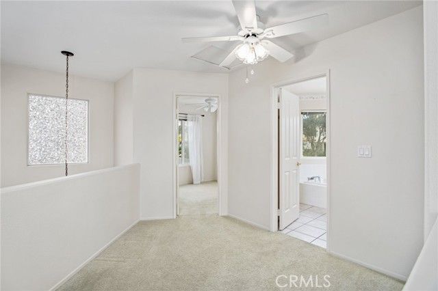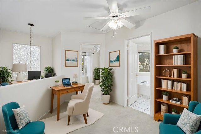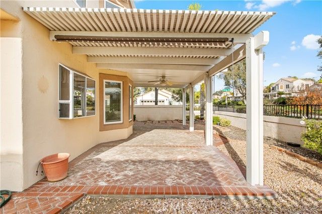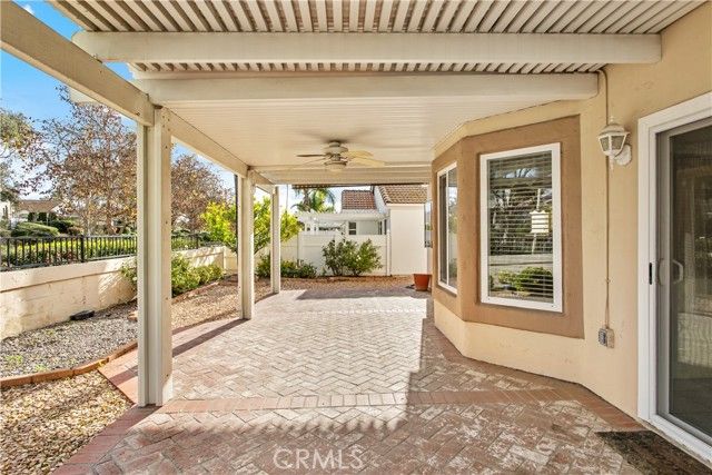 Price Improvement! Beautiful home in The Colony, a prestigious 55+ gated community in Murrieta. This 1,722 sq ft charmer features 3 beds, 2.5 baths, and a spacious 2 car garage with room for a golf cart, workshop, or extra storage. The Colony is known for its gorgeous golf course, incredible clubhouse, and top tier amenities. The HOA maintains the front yard, and the low maintenance/ low-water backyard is ready for your green thumb! Enter through double doors into a large, open foyer. To the right is the expansive family room with vaulted ceilings, abundant natural light, a cozy gas fireplace, and luxury laminate wood flooring. To the left, the dining room offers tile floors, large vinyl windows, and sliding doors leading to the covered patio and custom concrete porch with a convenient pass through to the kitchen. The upgraded kitchen includes a breakfast nook, ample storage, granite countertops and backsplash, and a boxed ceiling with recessed lighting for a modern feel. There is plenty of counter space and cabinetry for hosting family gatherings. Past the family room is the primary ensuite, featuring a spacious bedroom with vaulted ceilings, storage, and a full bathroom with a separate tub, stand up shower, dual walk-in closets, and a dual sink vanity with custom quartz countertops. Across the hall, the utility room includes cabinetry, a sink, and included washer and gas dryer. The upgraded half bath offers granite countertops and a large mirror. Upstairs are two well sized bedrooms, a shared bath with storage, tub, and vanity, plus a perfect nook for a desk or study area. Outside, enjoy a beautifully maintained fenced yard with a large, covered patio, custom brick inlay concrete, and walkways all around easy to access, maintain, and personalize! The Colony’s newly remodeled clubhouse offers a pool, spas, fitness center, billiards, lighted tennis and paddle tennis, hair salon, library, cards, shows, events, and of course, the stunning golf course! Close to shopping, groceries, Reading Cinemas, Kaiser, the 1-15 and I-215, this ideal location paired with a low tax rate of around 1.2% makes this GEM a must see!
