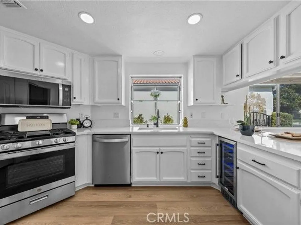 Welcome to 40415 Via Francisco, a beautifully renovated single-story home in the highly sought-after 55+ guard-gated community of The Colony. This move-in ready home has been thoughtfully updated from top to bottom so you can simply unpack and enjoy. Inside, you’ll find brand-new LVP floors, crisp baseboards, recessed lighting, and stylish fixtures throughout. The kitchen shines with quartz countertops that carry through to every bathroom, all-new appliances, and a brand-new wine fridge that’s perfect for entertaining. Both bathrooms have been refreshed to match the same modern feel. Step into the backyard and take in the breathtaking views of the mountains framed by swaying palm trees, a true picture of California living. The yard has fresh, low-maintenance landscaping and a full-length patio cover that spans the entire back of the home, creating the perfect outdoor living space for relaxing or entertaining. The oversized two-car garage offers excellent storage and a workbench, while a whole house fan helps keep the home cool and the electric bill down. The AC has just been tuned up and is running great. All appliances, including washer and dryer, are included. The Colony is one of the most desirable 55+ golf course communities in the area, offering residents a beautiful clubhouse, pool, spa, tennis and pickleball courts, and a full calendar of events. With low property taxes, full front-yard maintenance by the HOA, and exceptional amenities, this home is the perfect blend of comfort, convenience, and community.