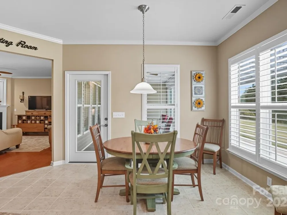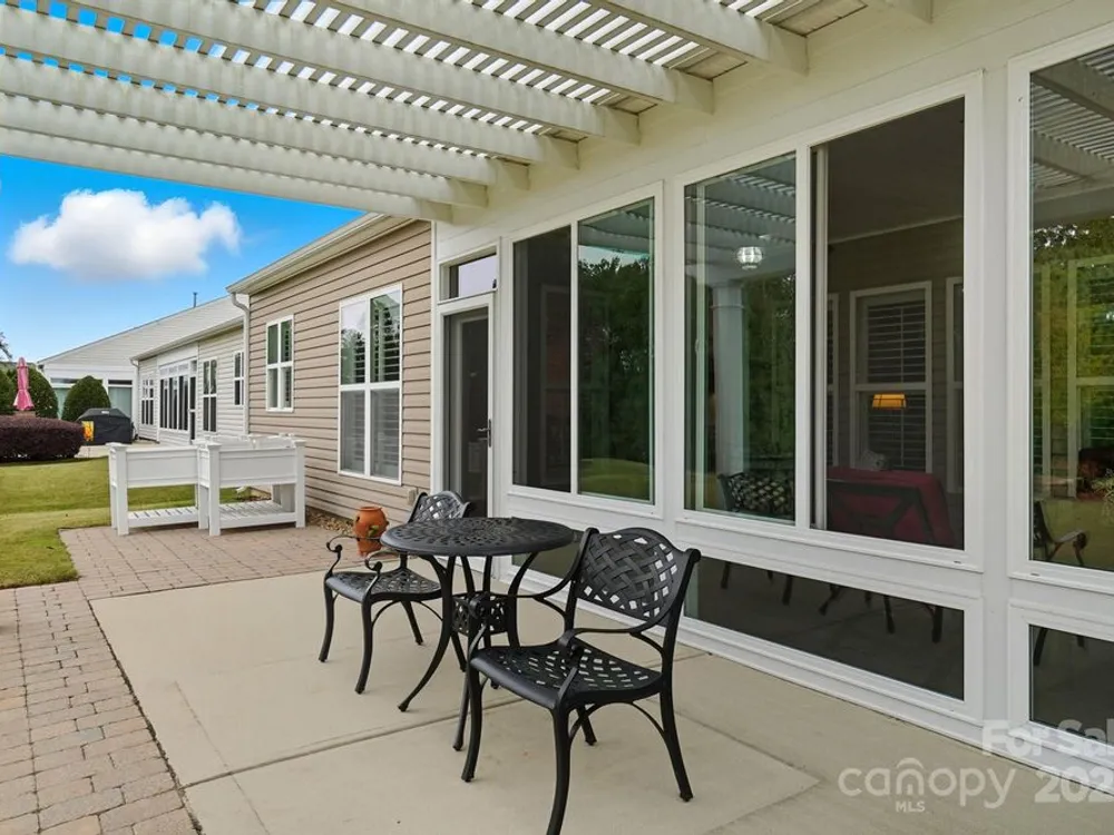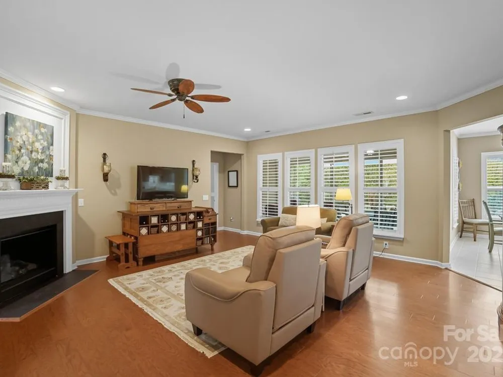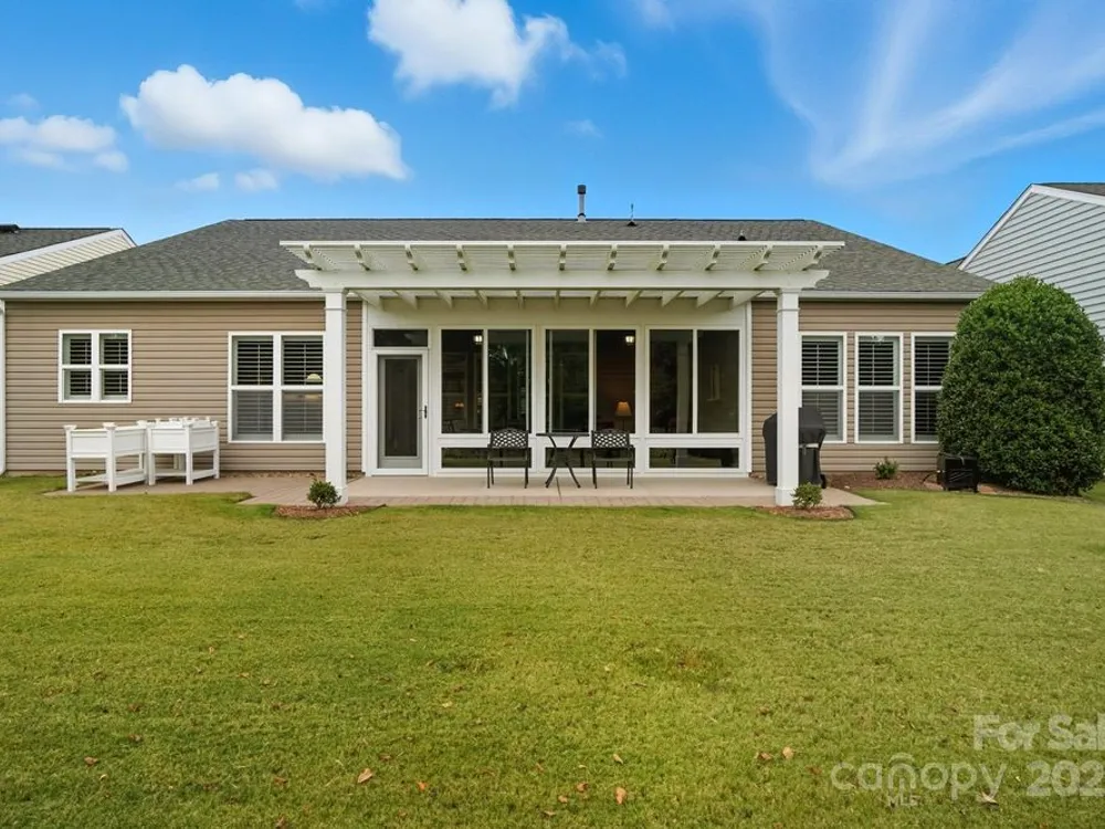 Welcome home to Sun City and relax in the bounty of the Crestwood Meadow w/ a 3 season room! This home has many upgrades: crown molding throughout, upgraded lighting, gas fireplace, wood flooring in the living areas, garage w/ a 4ft bump out and much more! Cook in the gourmet kitchen with granite counters, spacious island w/ bar seating, SS appliance including wall oven, built-in microwave and gas cooktop w/ overhead vent, tile backsplash and flooring, pantry and breakfast nook. Host dinner parties for your guests in the large, adjacent formal dining room featuring wainscotting accents and tray ceiling. The primary bedroom rests in the rear of the home for serene relaxation, with large windows, tray ceiling (w/ fan), and an en suite boasting dual sink vanity, tile flooring, custom tile shower, soaking tub, and large walk-in closet. Two additional guest bedrooms and an office have access to a full hall bathroom. The spacious 3-season room has tile floors, ceiling fan, and insulated glass windows looking out to the extended paver patio with a pergola and wooded views.
