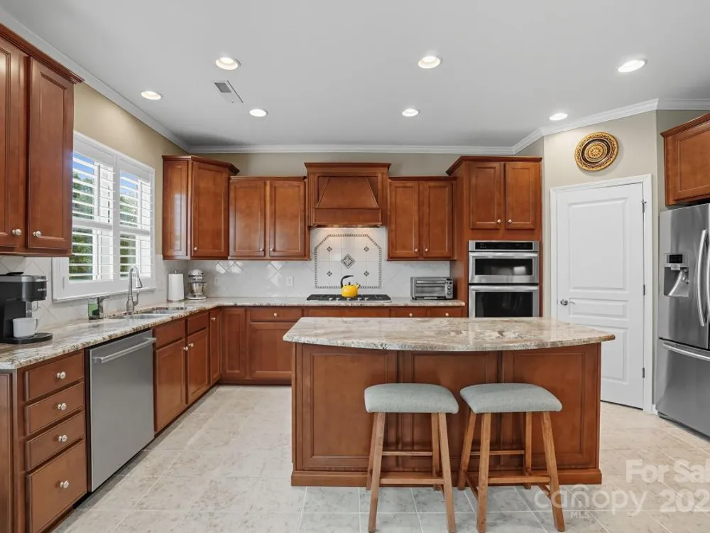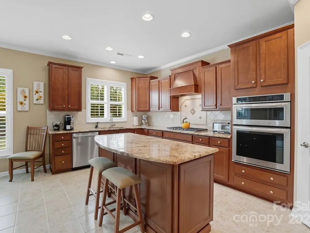 - Dishwasher, Disposal, Exhaust Hood, Gas Cooktop, Microwave, Wall Oven